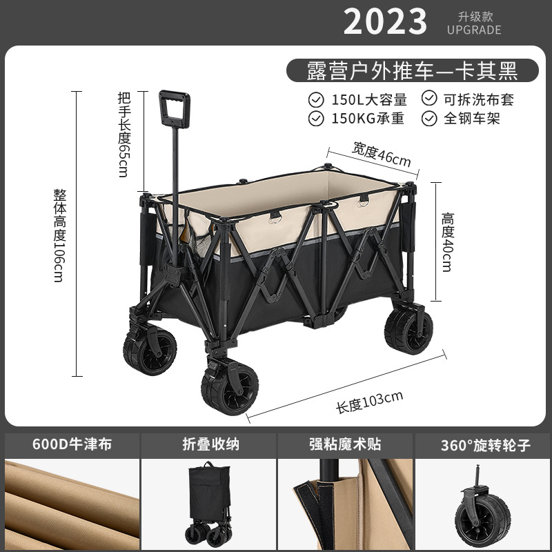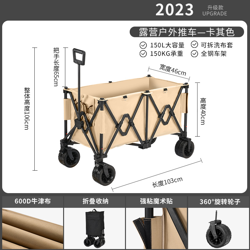 • [푸시 업] 카키-8 인치 150L 용량/더블 브레이크 유니버설 휠