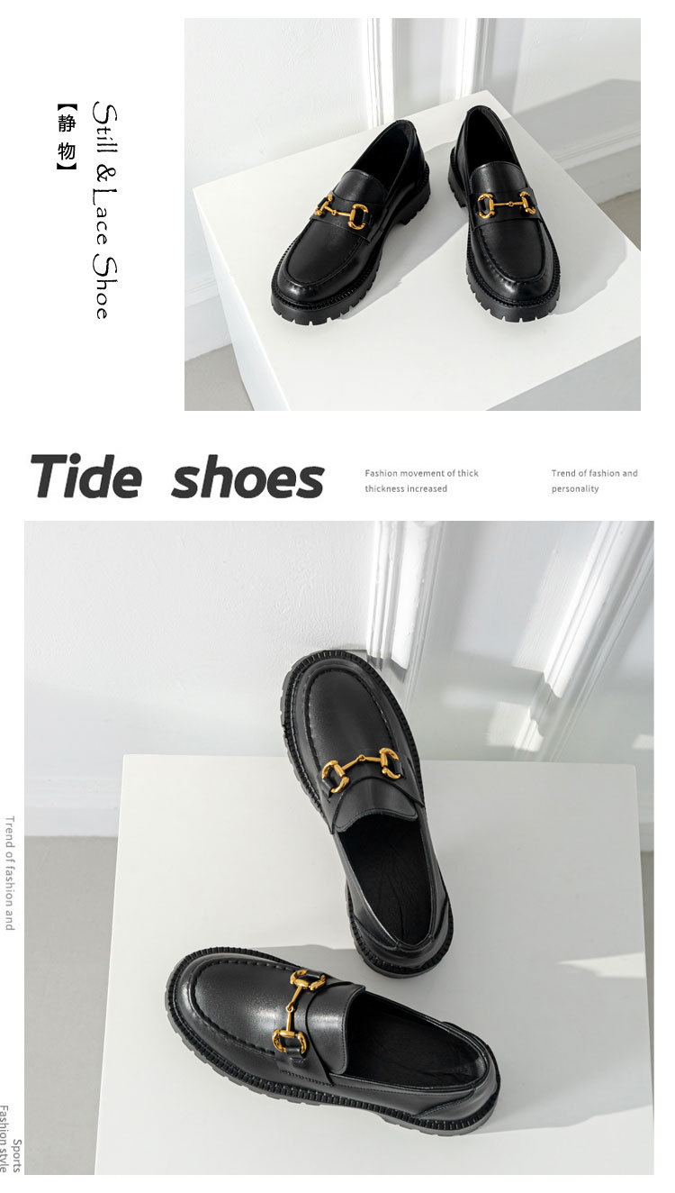 전체 소가죽 ~ 가죽 두꺼운 바닥 로퍼 여성용 2023 봄 새로운 작은 금 단추 복고풍 영국 스타일 작은 가죽 신발 여성