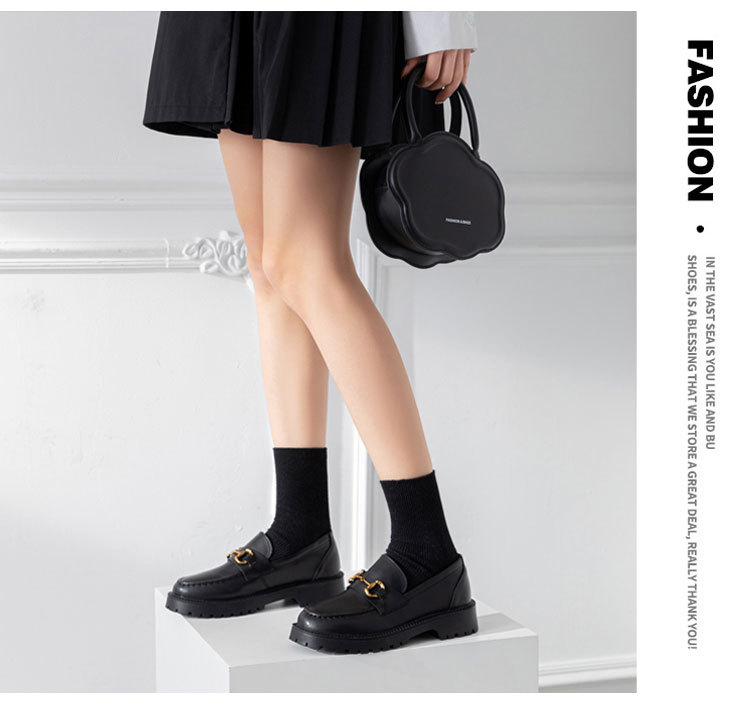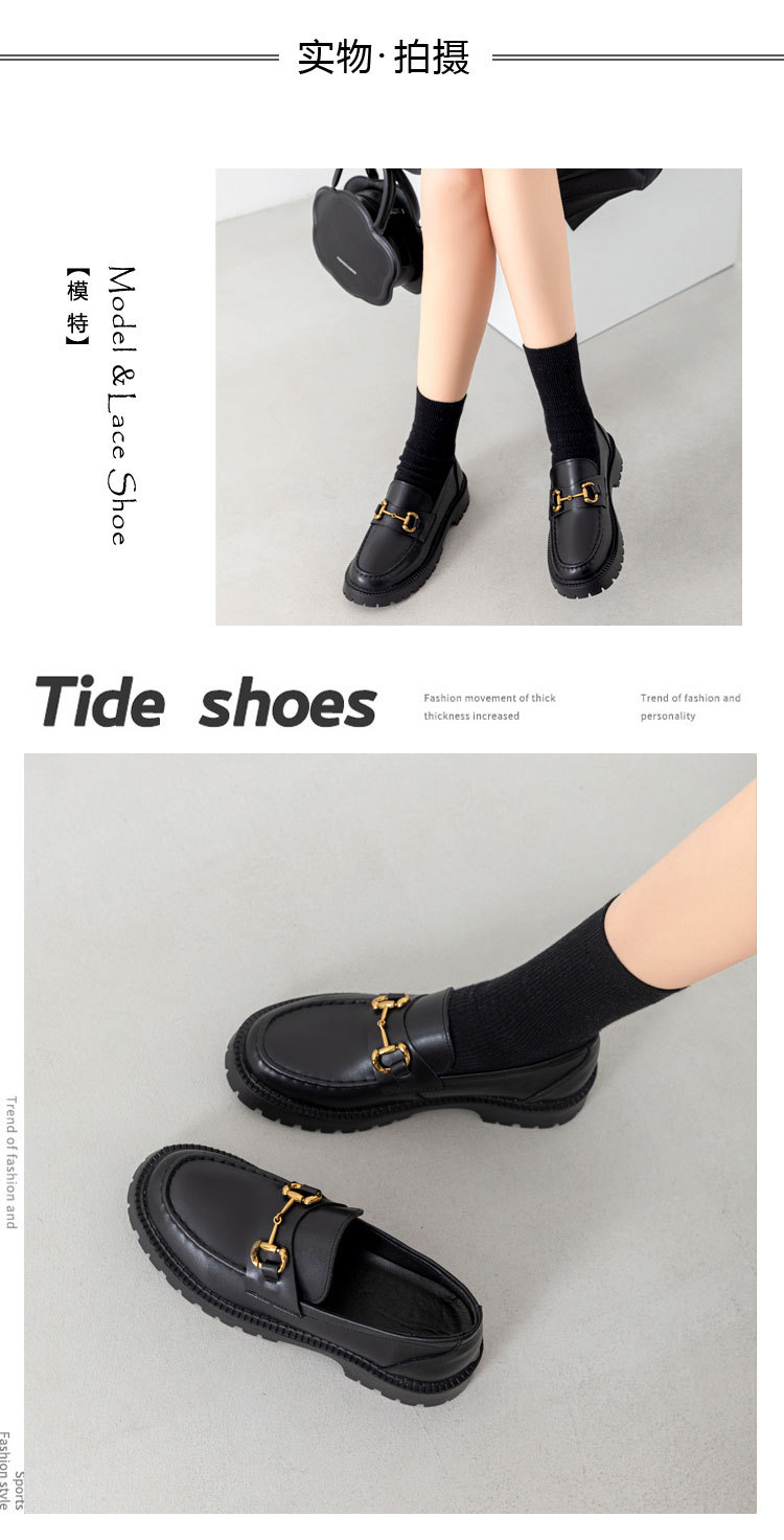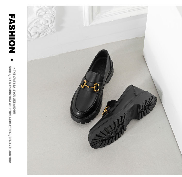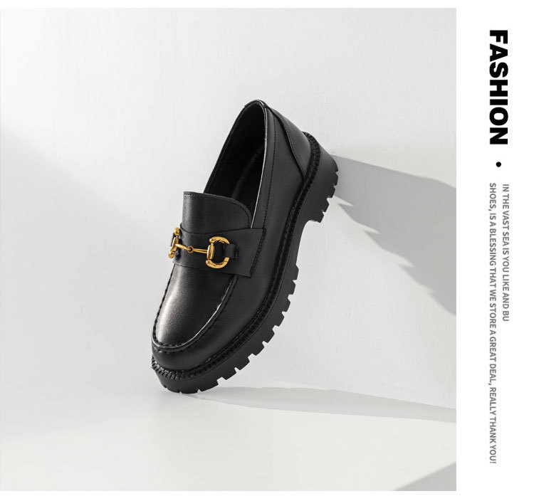 전체 소가죽 ~ 가죽 두꺼운 바닥 로퍼 여성용 2023 봄 새로운 작은 금 단추 복고풍 영국 스타일 작은 가죽 신발 여성스토어 가기