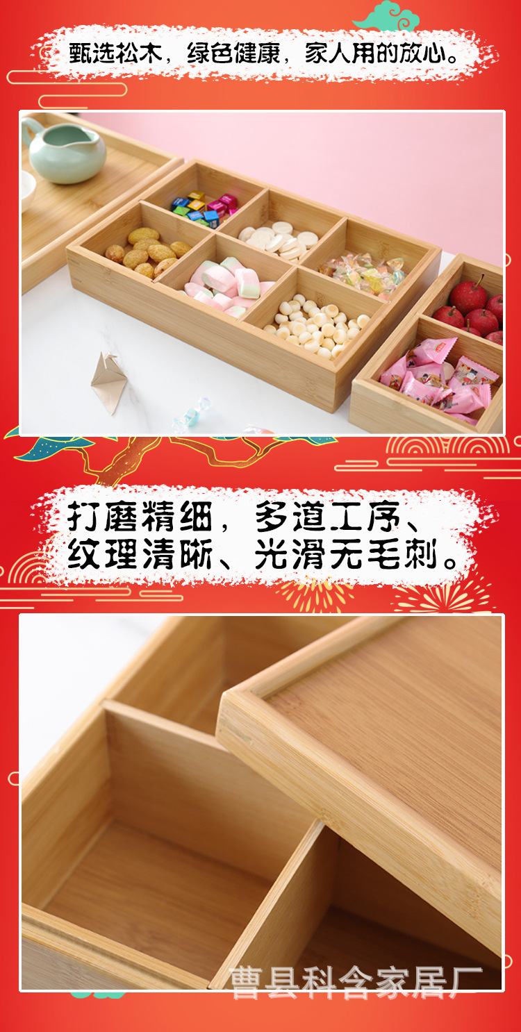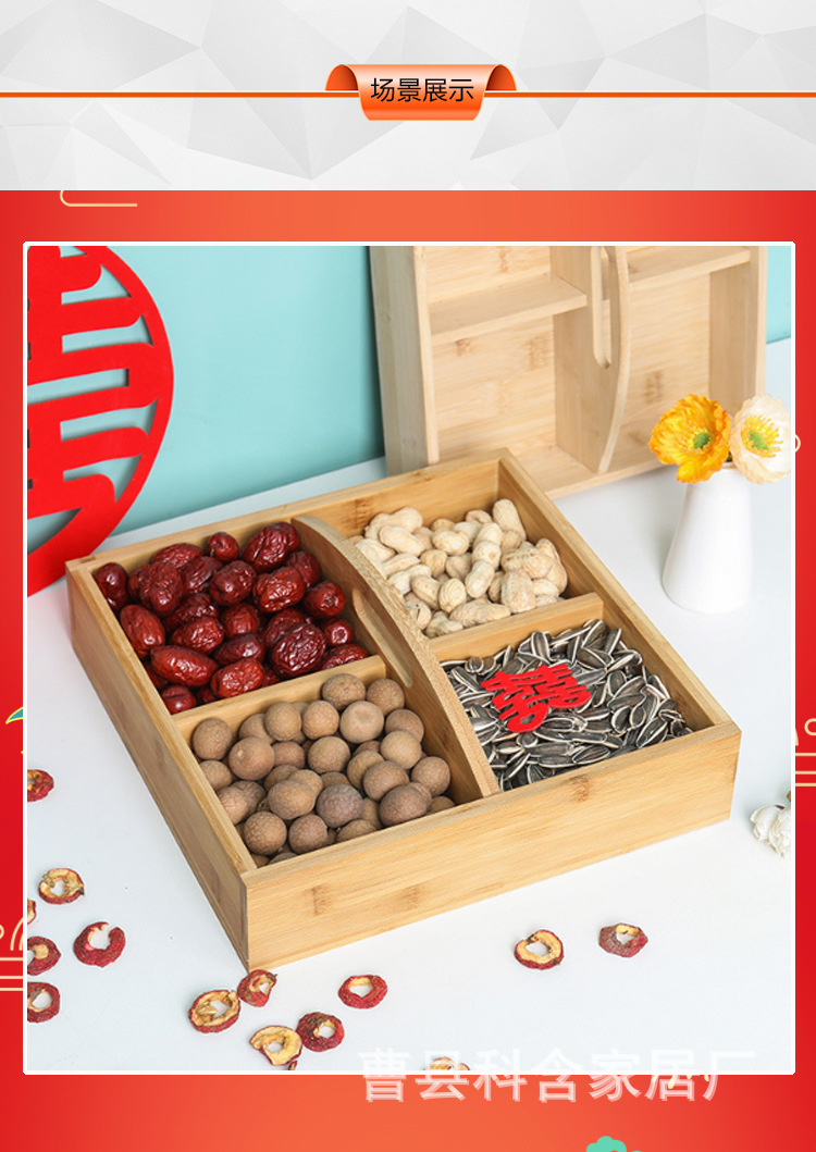 단단한 나무 말린 과일 상자 약혼 4 그리드 접시 분할 격자 Xi 상자 Jiugongge 접시 원형 스토브 요리 차 간식 멜론 씨앗 말린 과일 접시스토어 가기