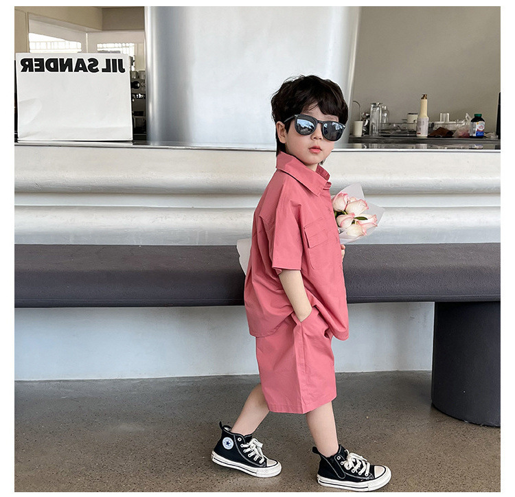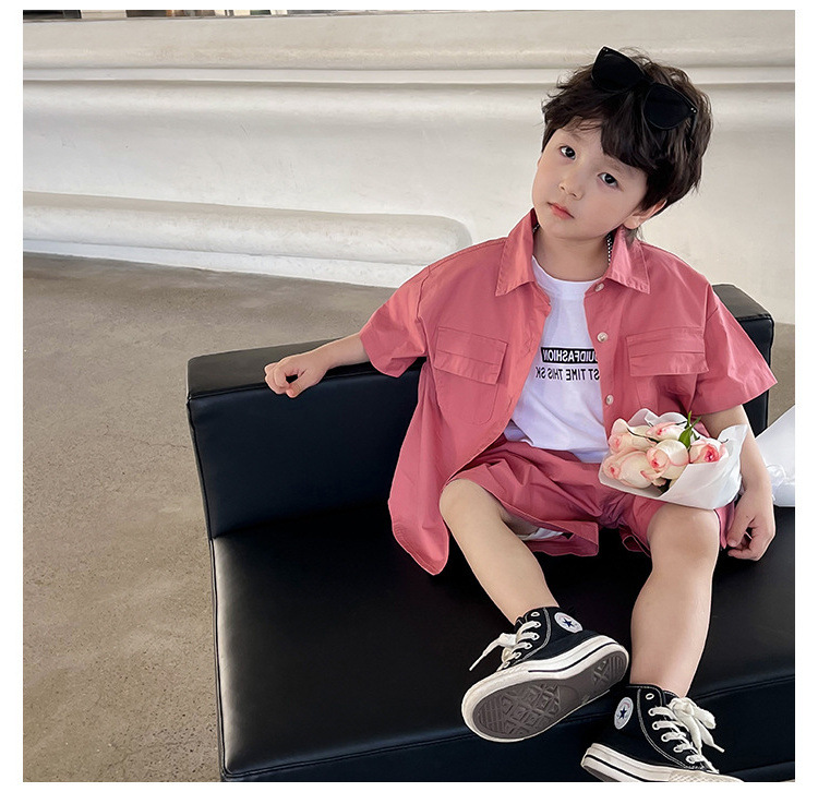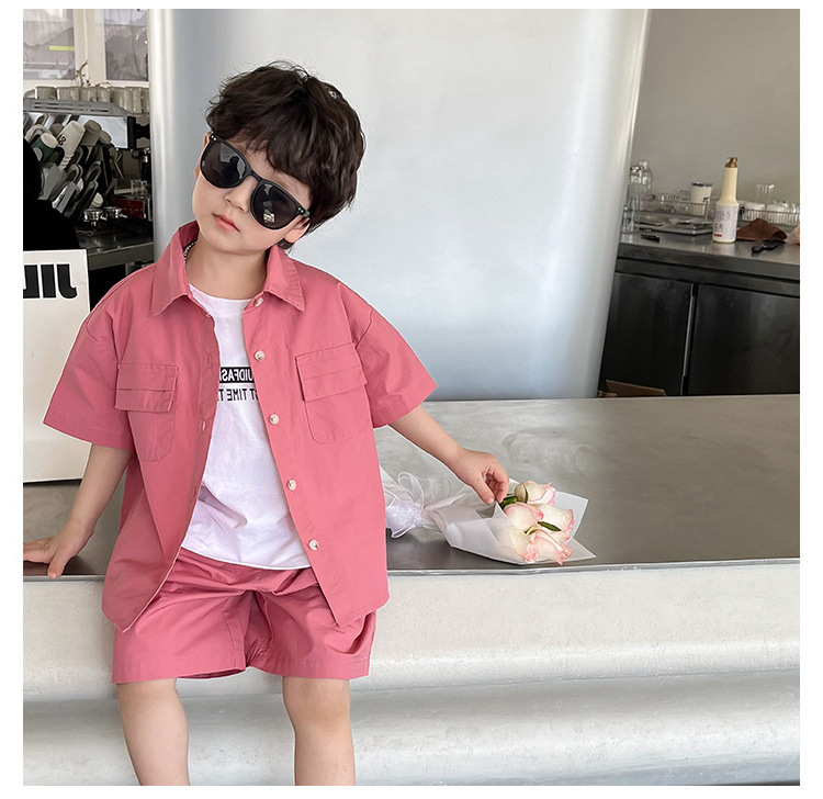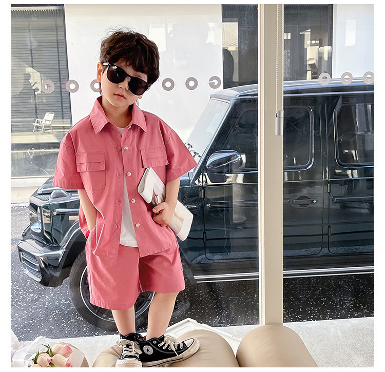 남아 정장 더블 포켓 셔츠와 반바지 투피스 세트 25 여름 신작 대외 무역 아동복 3-8세스토어 가기