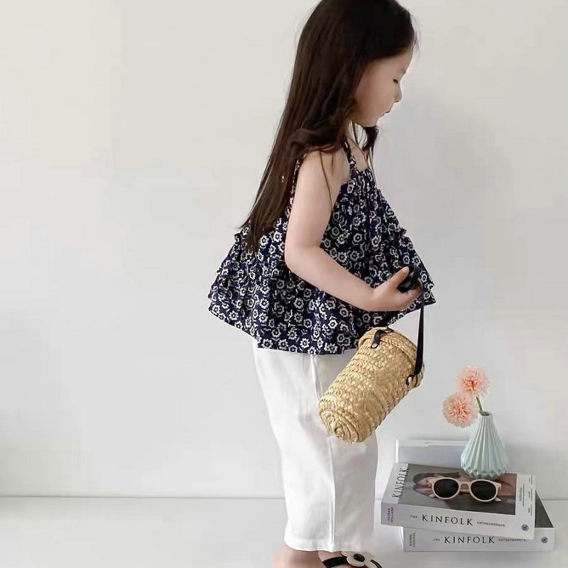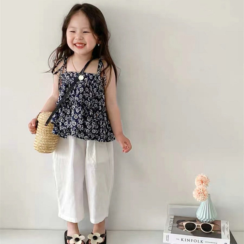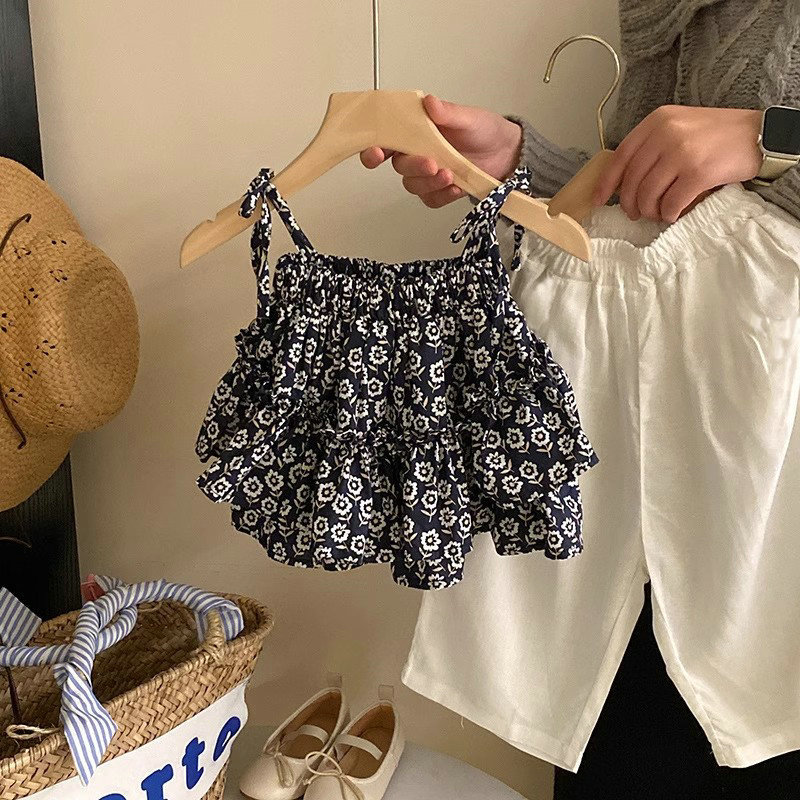 여아용 꽃무늬 멜빵 멀티 레이어 탑과 루즈핏 7부 바지 25 여름 신상품 수출용 아동복 도매