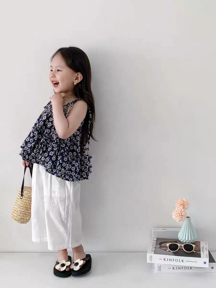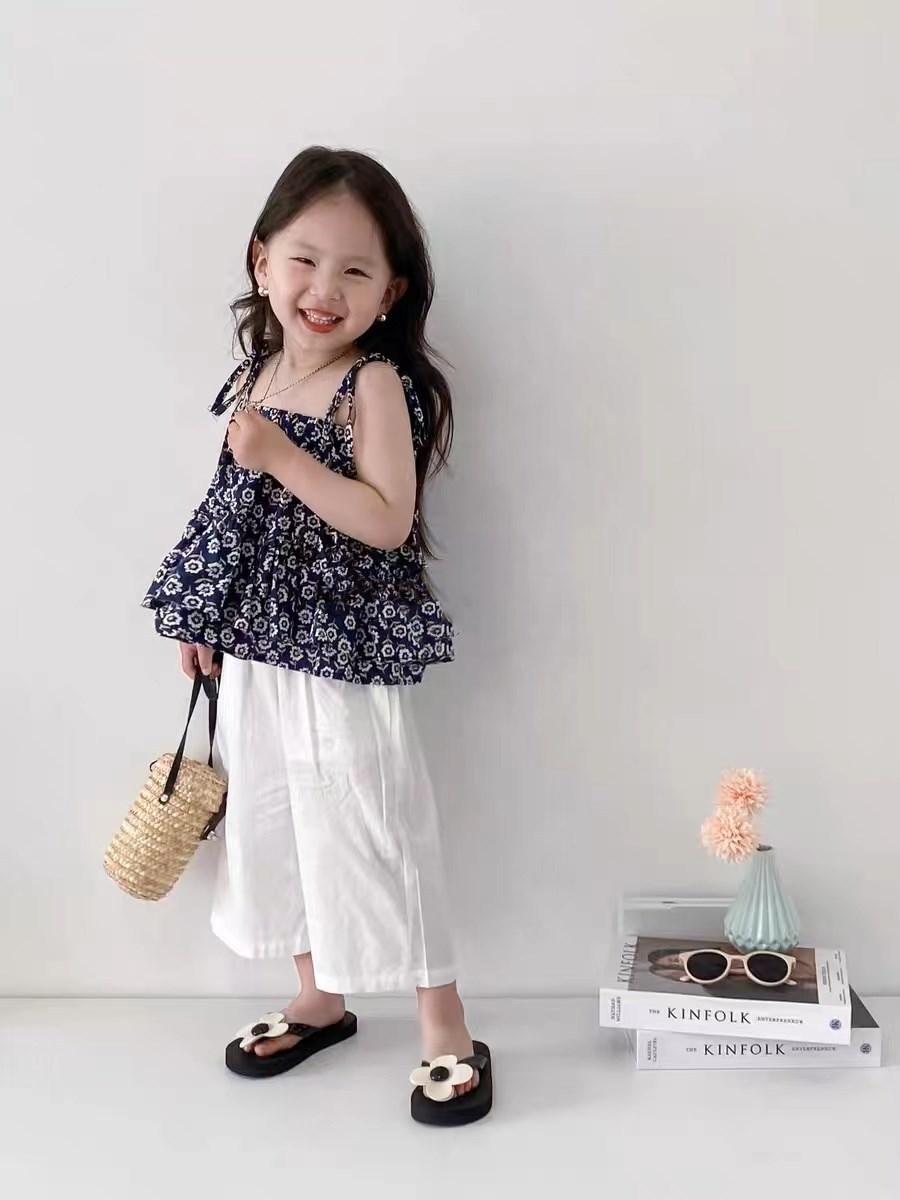 여아용 꽃무늬 멜빵 멀티 레이어 탑과 루즈핏 7부 바지 25 여름 신상품 수출용 아동복 도매스토어 가기