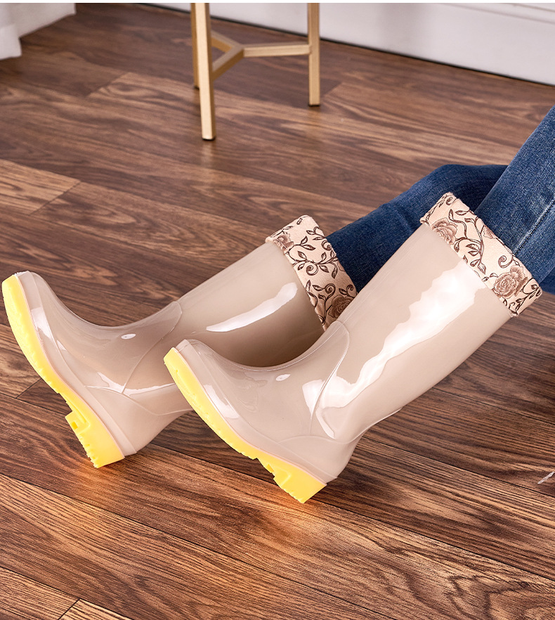 무료 배송 여성용 하이탑 미끄럼 방지 장화 도매 노동 보호 신발 따뜻한 고무 신발 주방 작업 장화 여성용 워터 슈즈스토어 가기