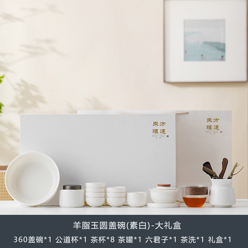 羊脂玉茶具小套装家用办公室客厅高端功夫茶具礼盒装礼品logo