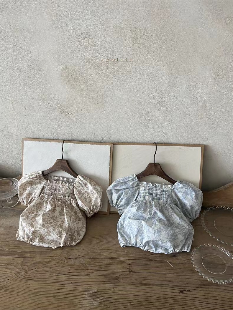 한국식 인 베이비 버프 하이 반팔 끈이없는 버블 슬리브 신선한 요정 스타일 꽃 보름달 1 세 셔츠스토어 가기