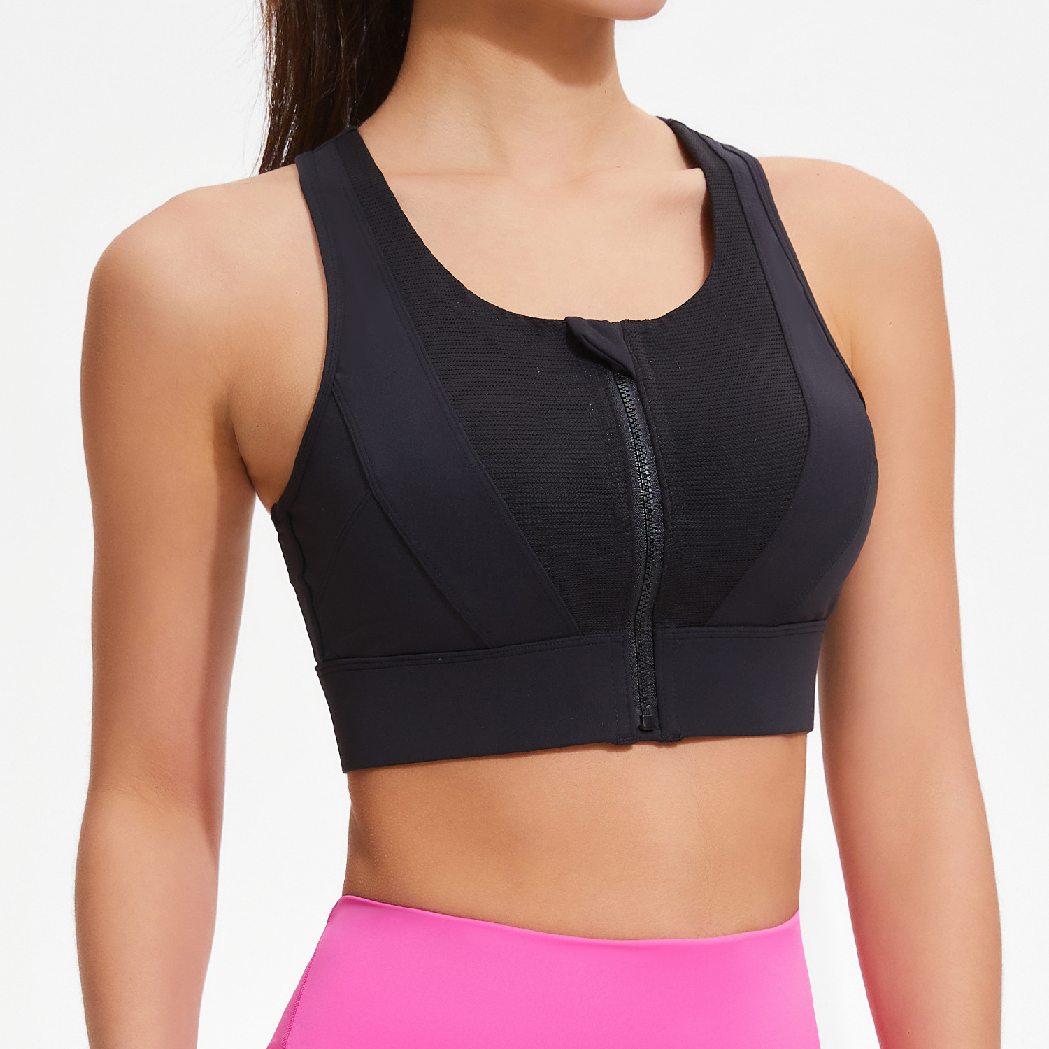 고강도 충격 방지 푸시 업 스포츠 속옷 여성 야외 달리기 피트니스 브라 프론트 지퍼 풀 랩 요가 조끼스토어 가기