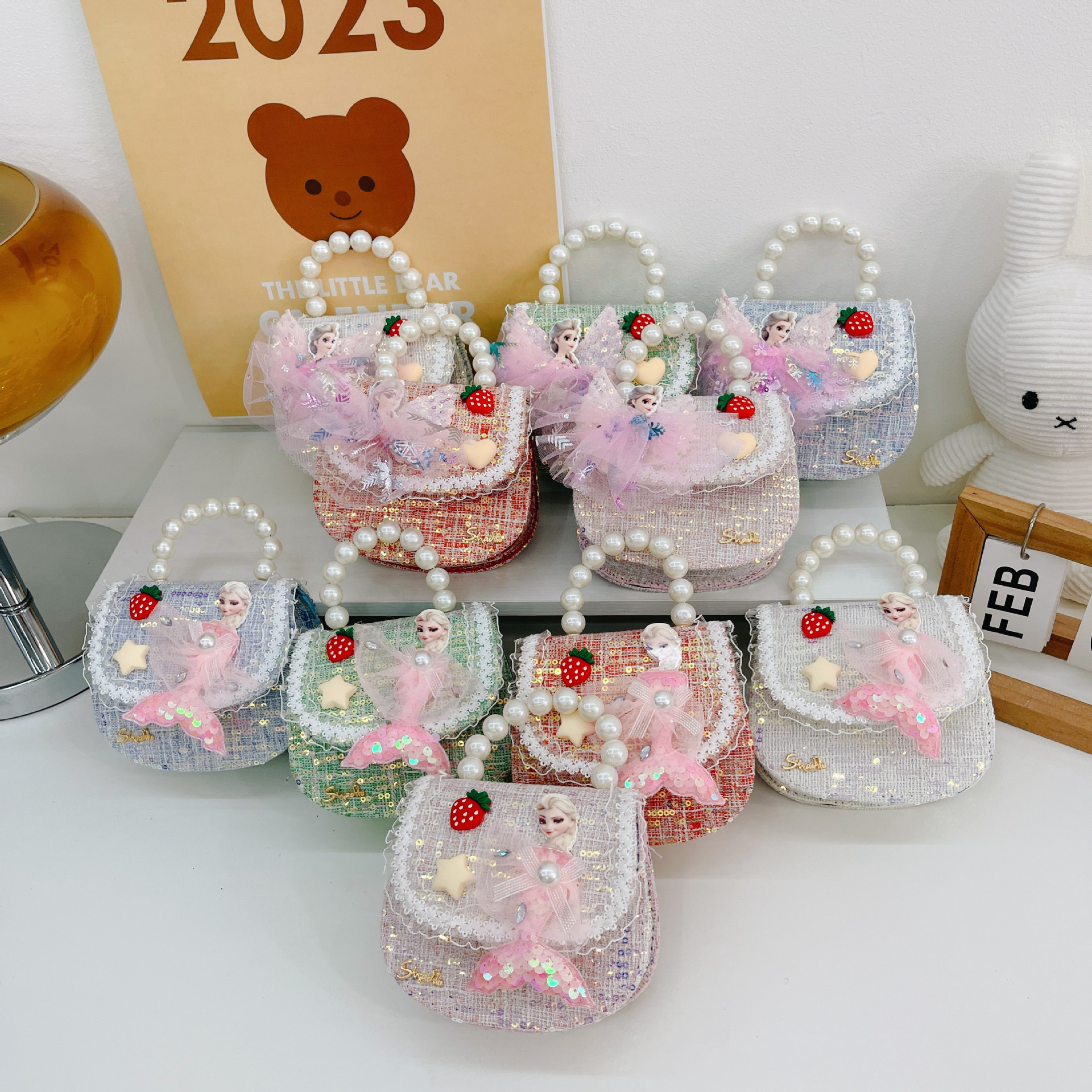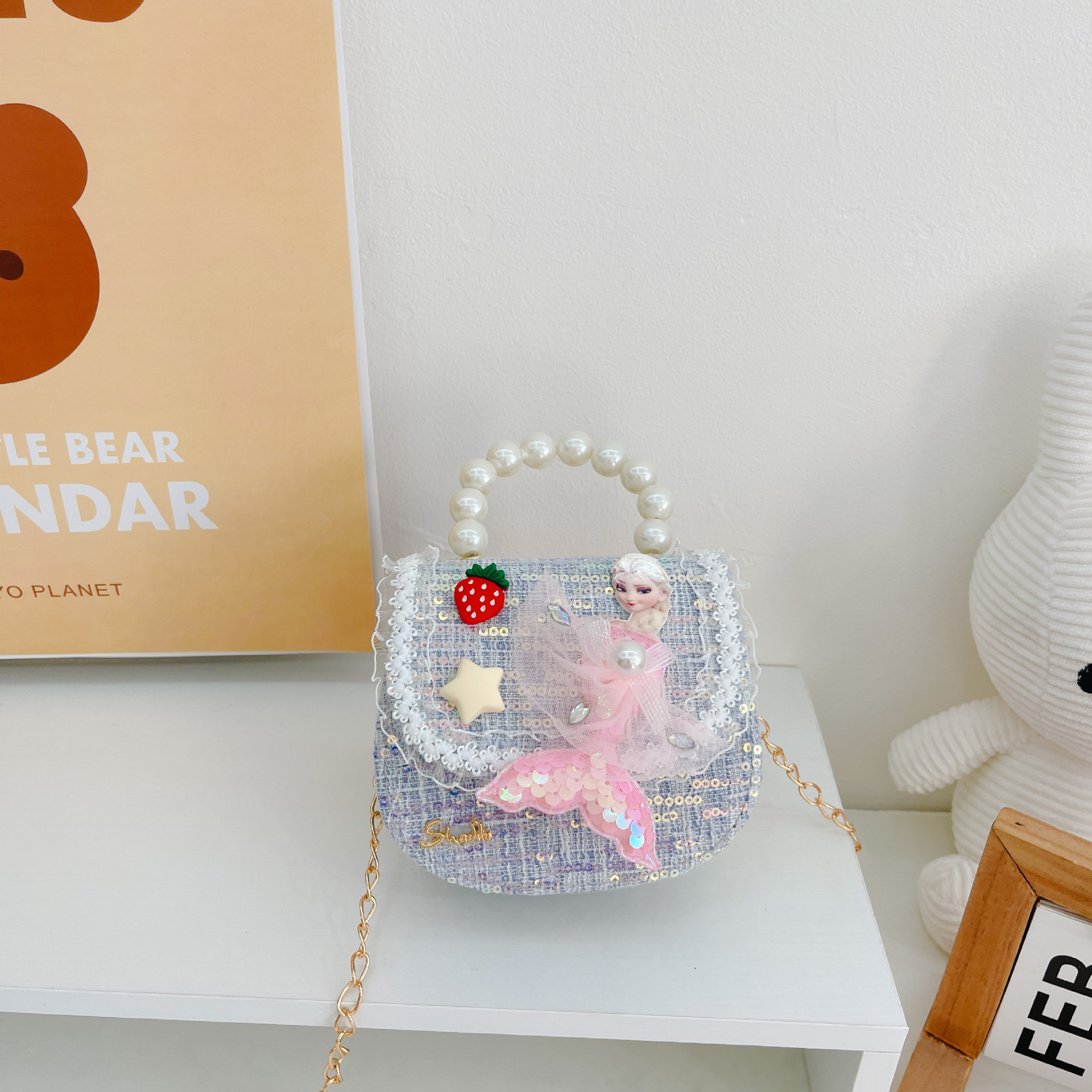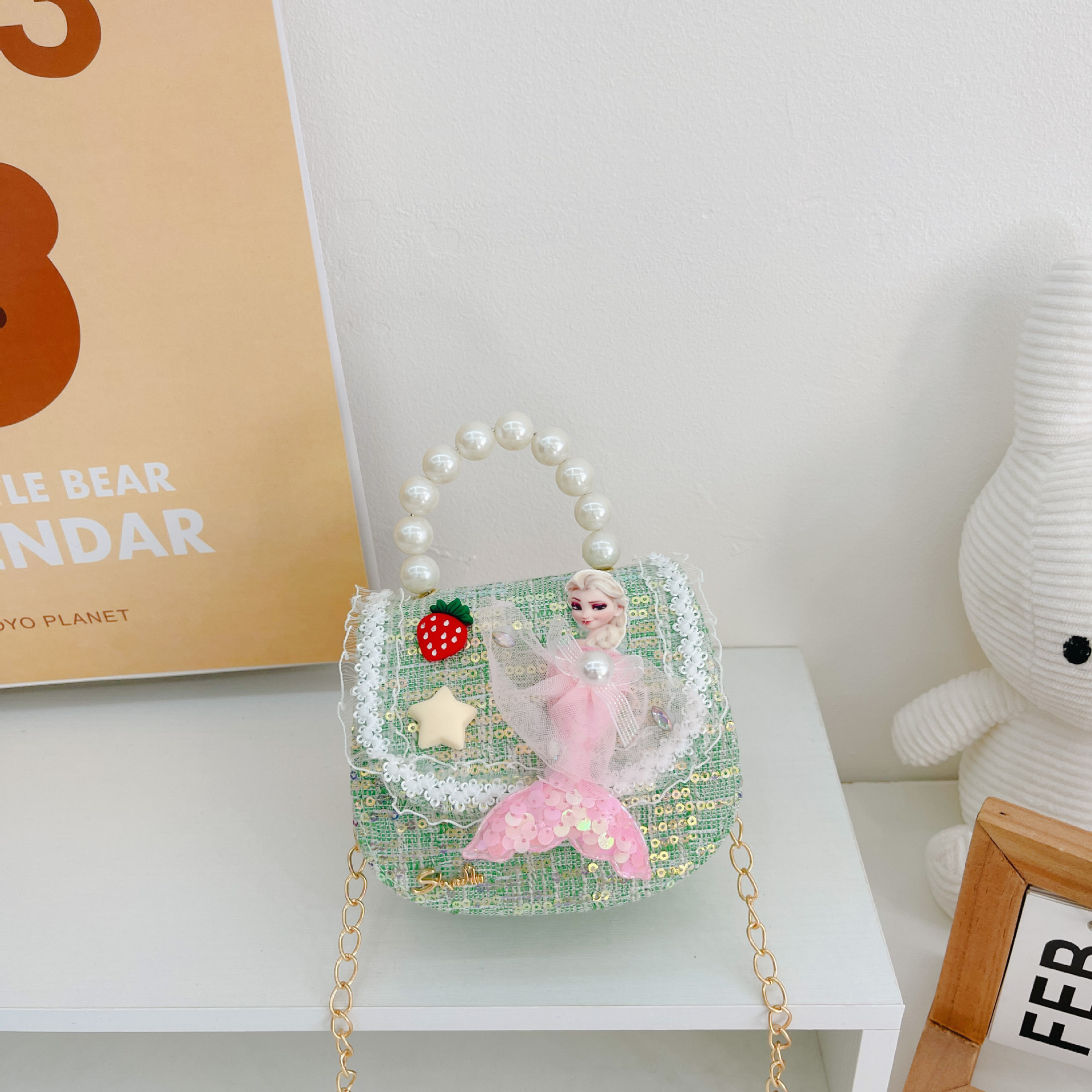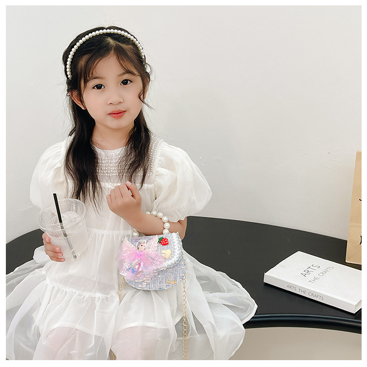 소녀 진주 크로스 가방 2023 새로운 패션 만화 스팽글 미니 동전 지갑 인어 귀여운 소녀 핸드백