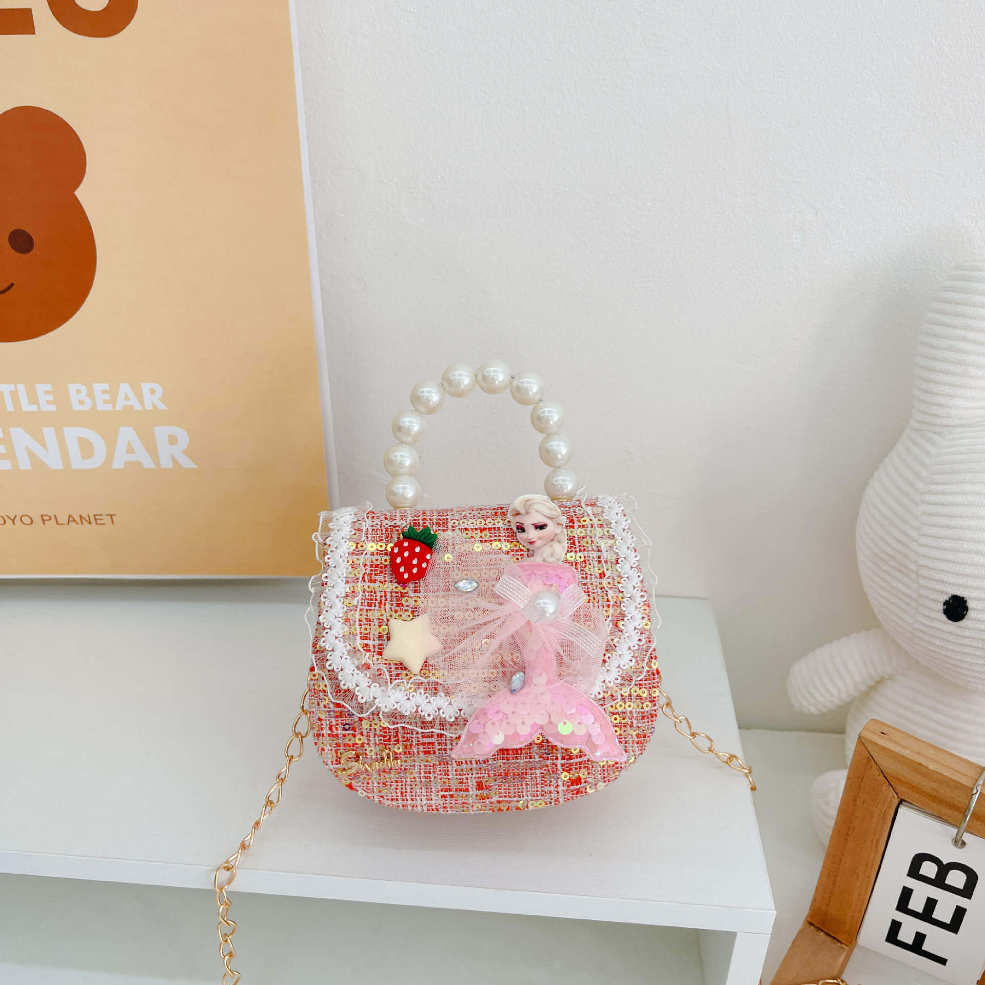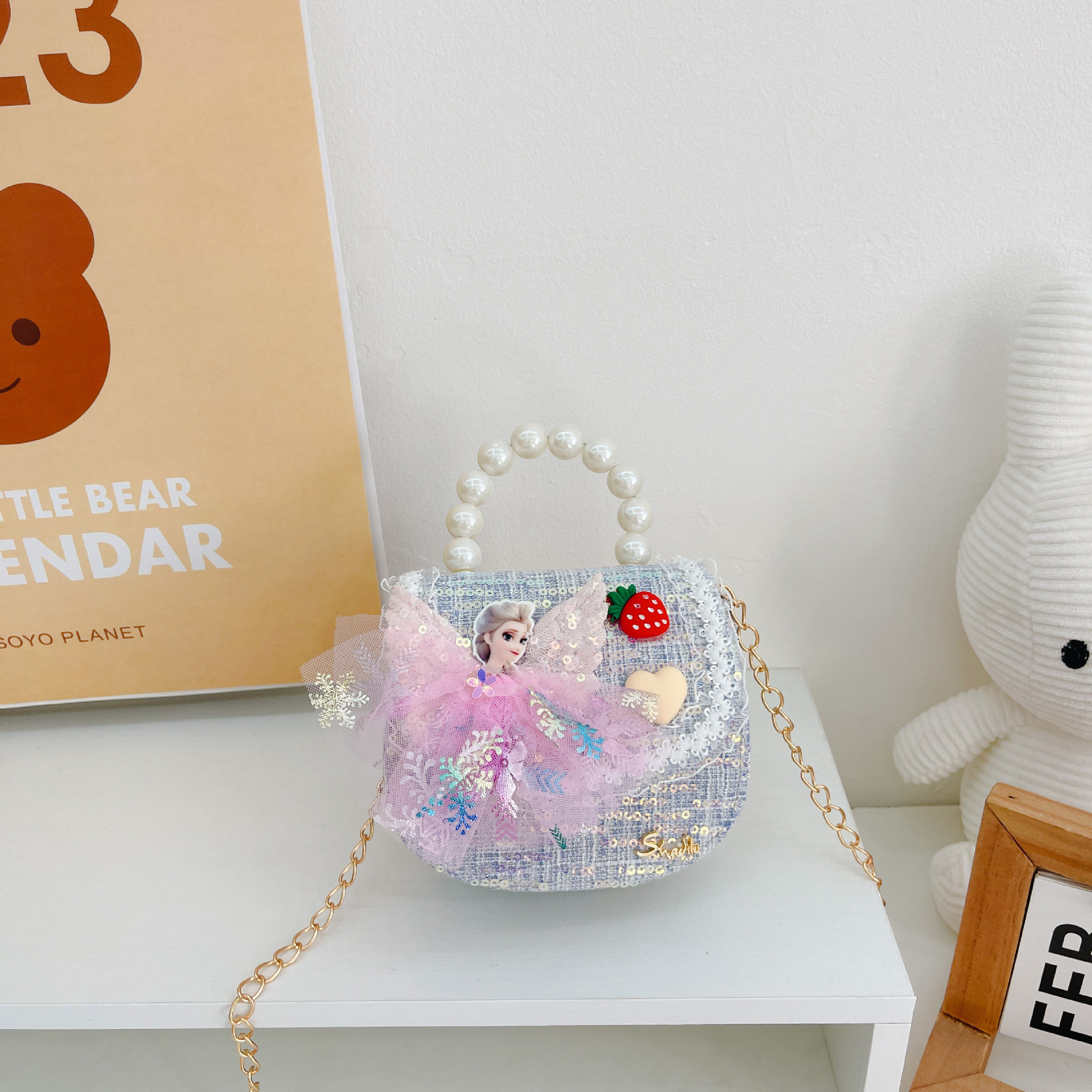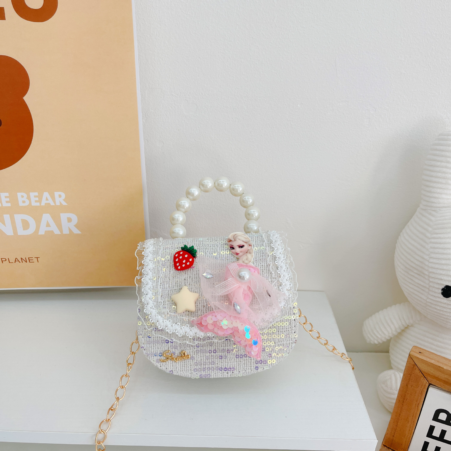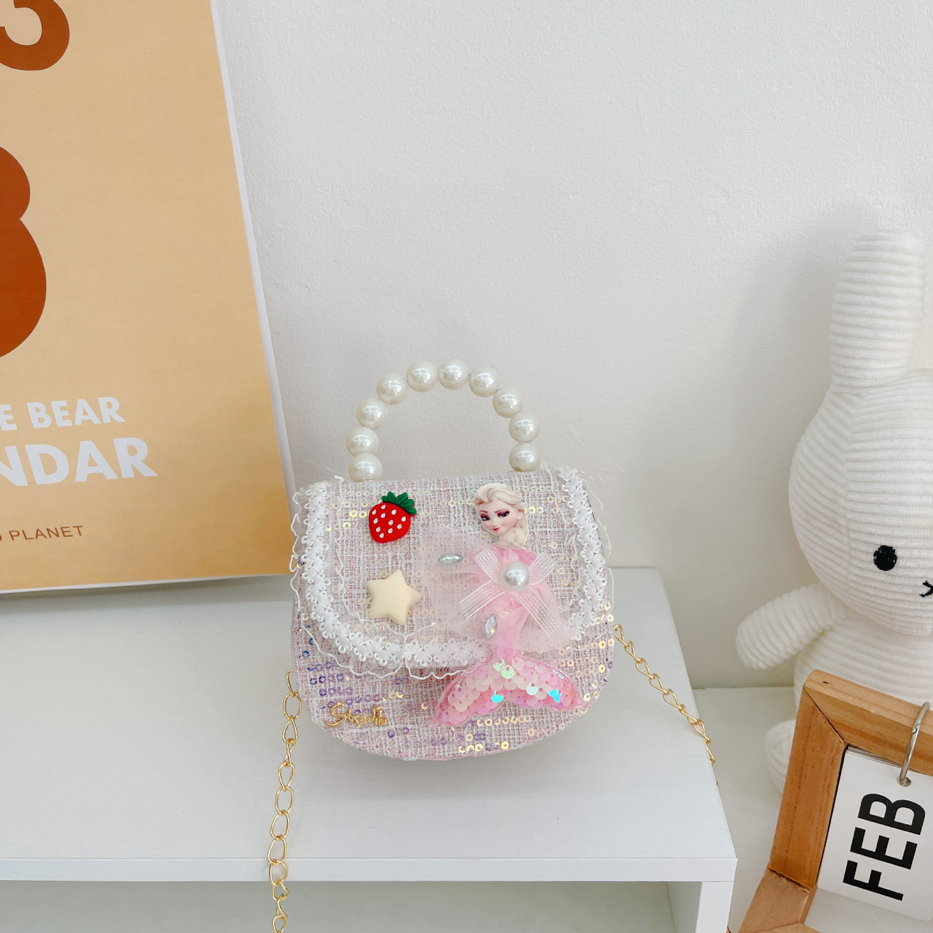 소녀 진주 크로스 가방 2023 새로운 패션 만화 스팽글 미니 동전 지갑 인어 귀여운 소녀 핸드백