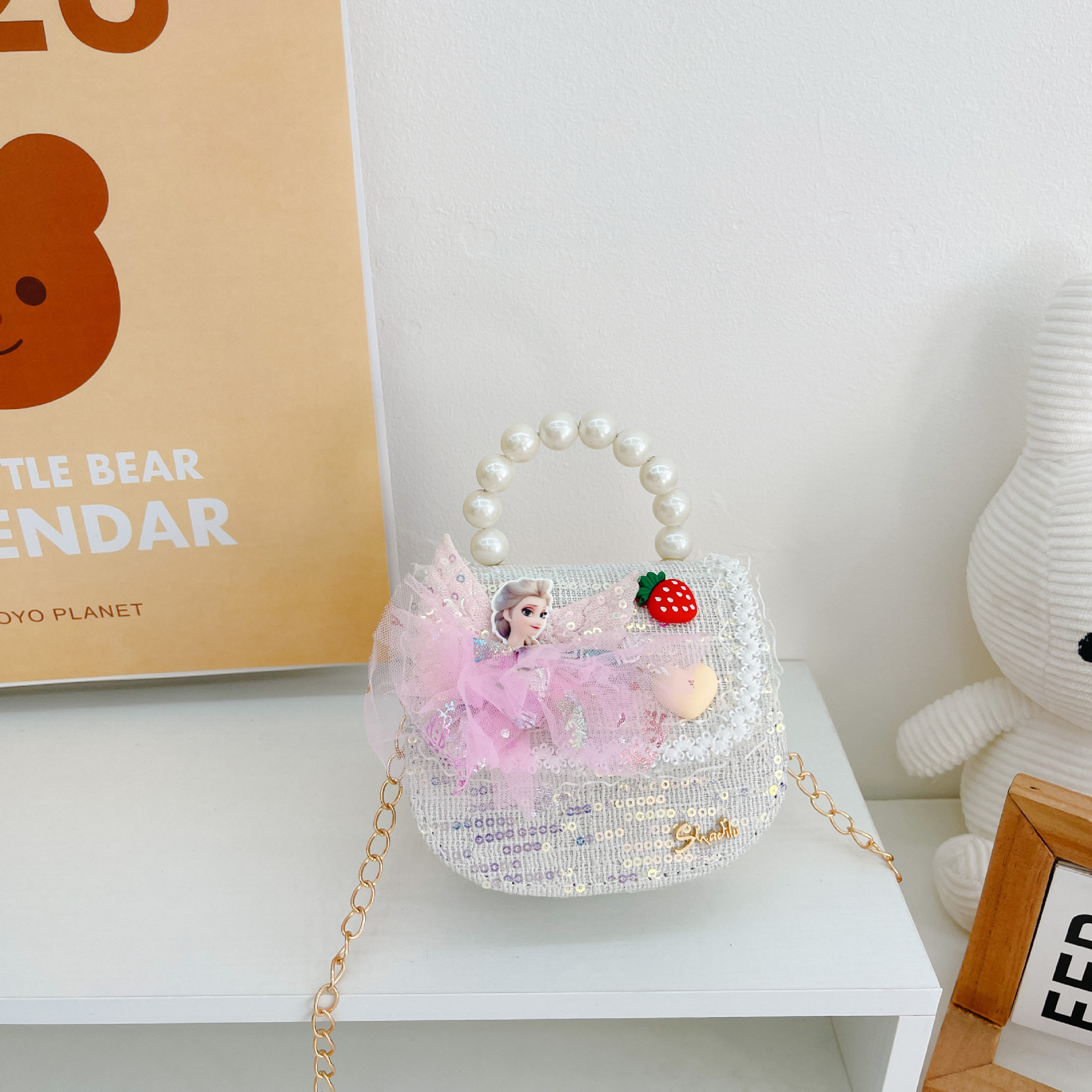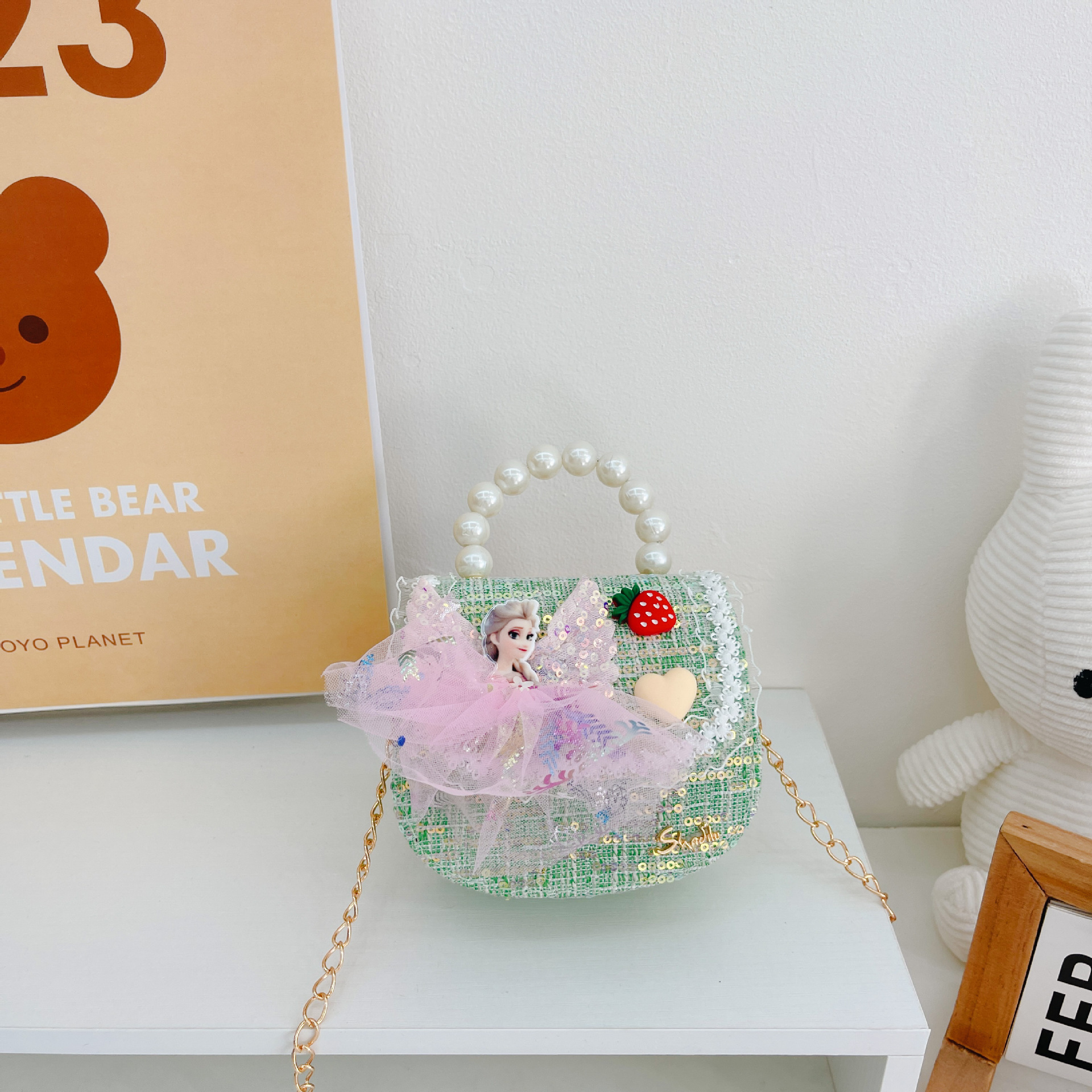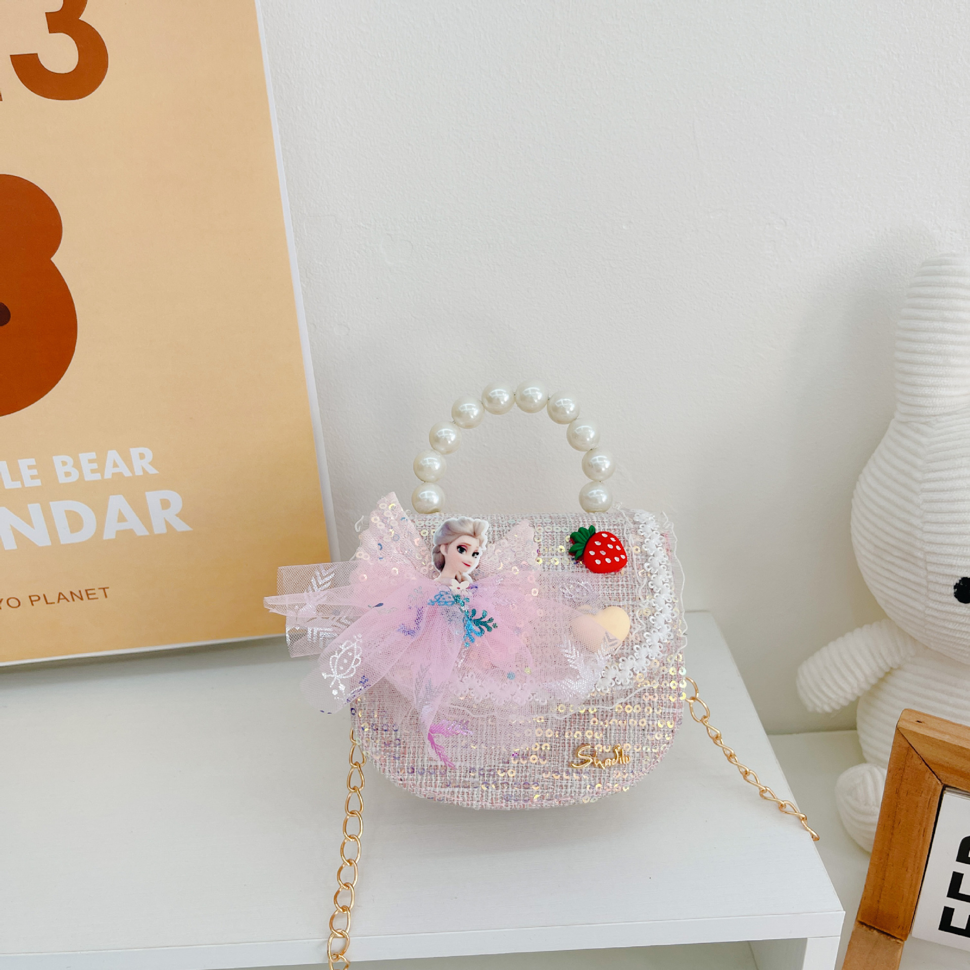 소녀 진주 크로스 가방 2023 새로운 패션 만화 스팽글 미니 동전 지갑 인어 귀여운 소녀 핸드백
