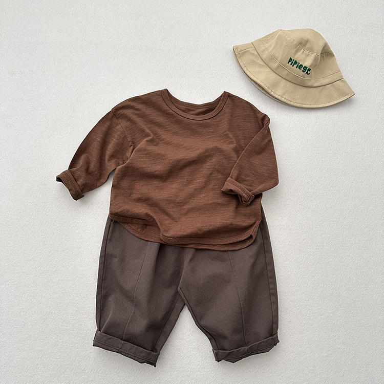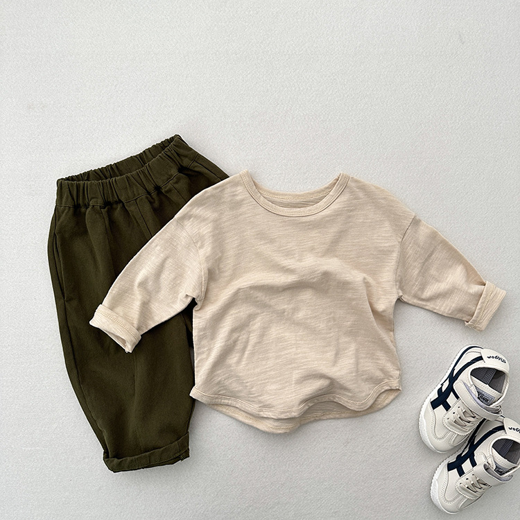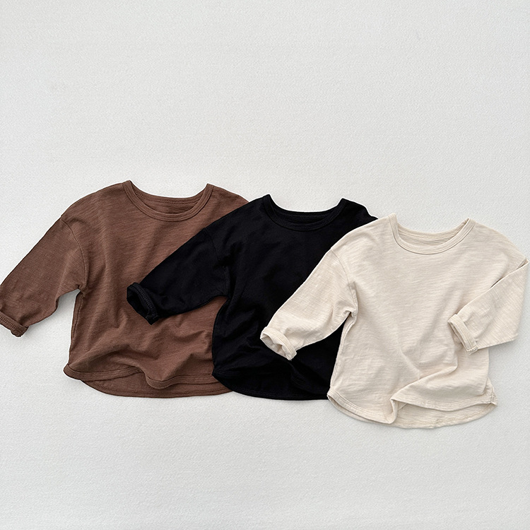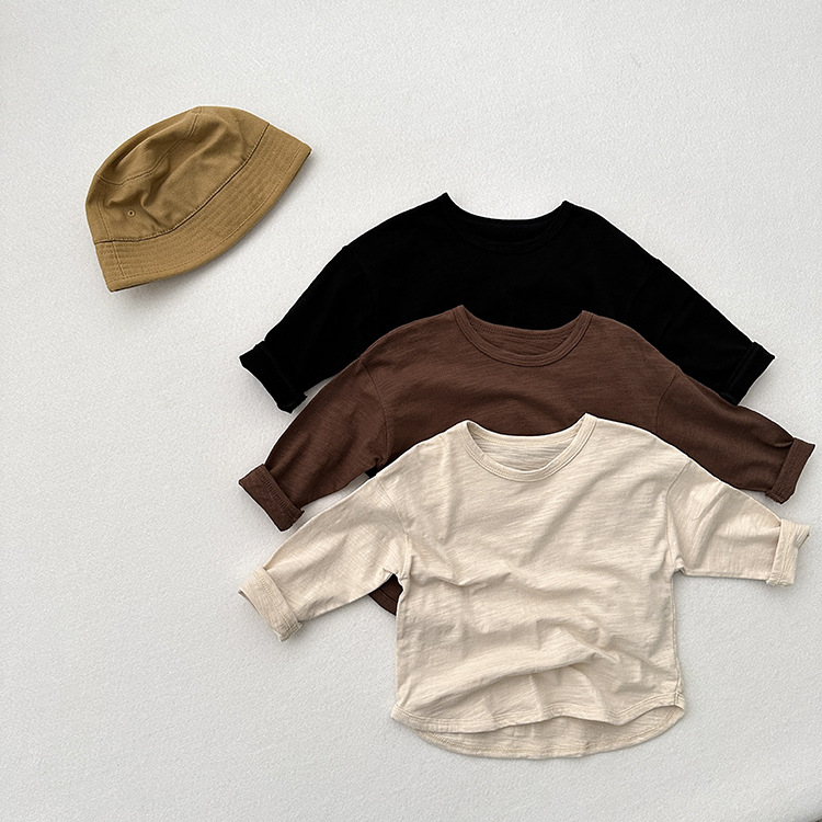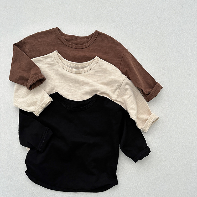 모리 기본 소 티 봄과 가을 새로운 어린이 대나무 면 긴 소매 탑 베이비 바이 좋은 티셔츠 기본 셔츠에스토어 가기