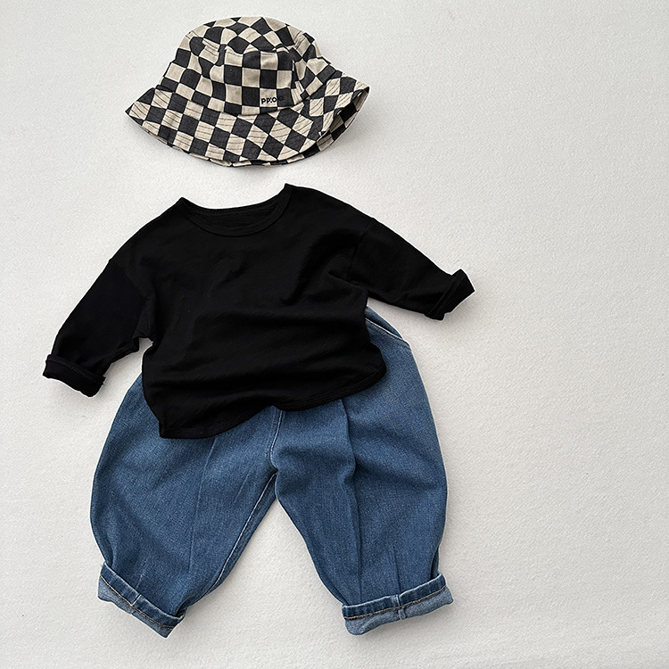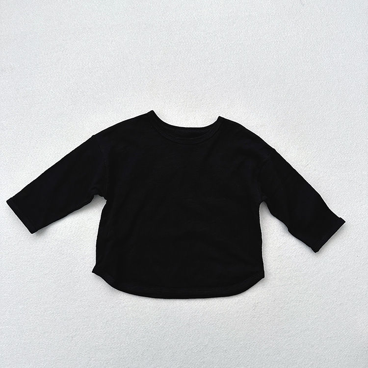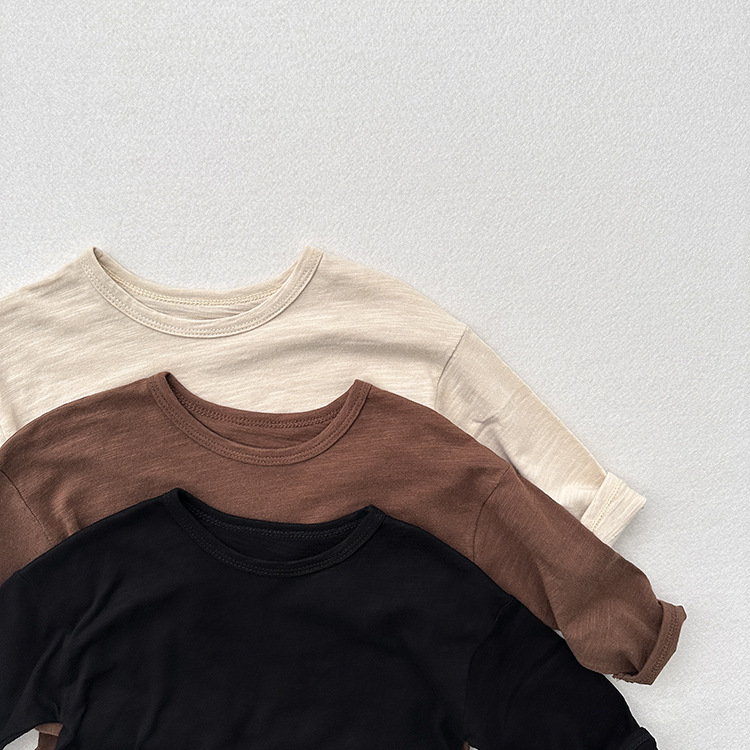 모리 기본 소 티 봄과 가을 새로운 어린이 대나무 면 긴 소매 탑 베이비 바이 좋은 티셔츠 기본 셔츠에