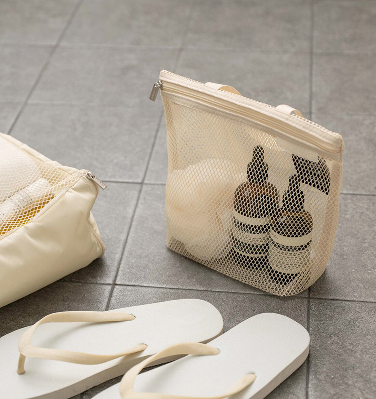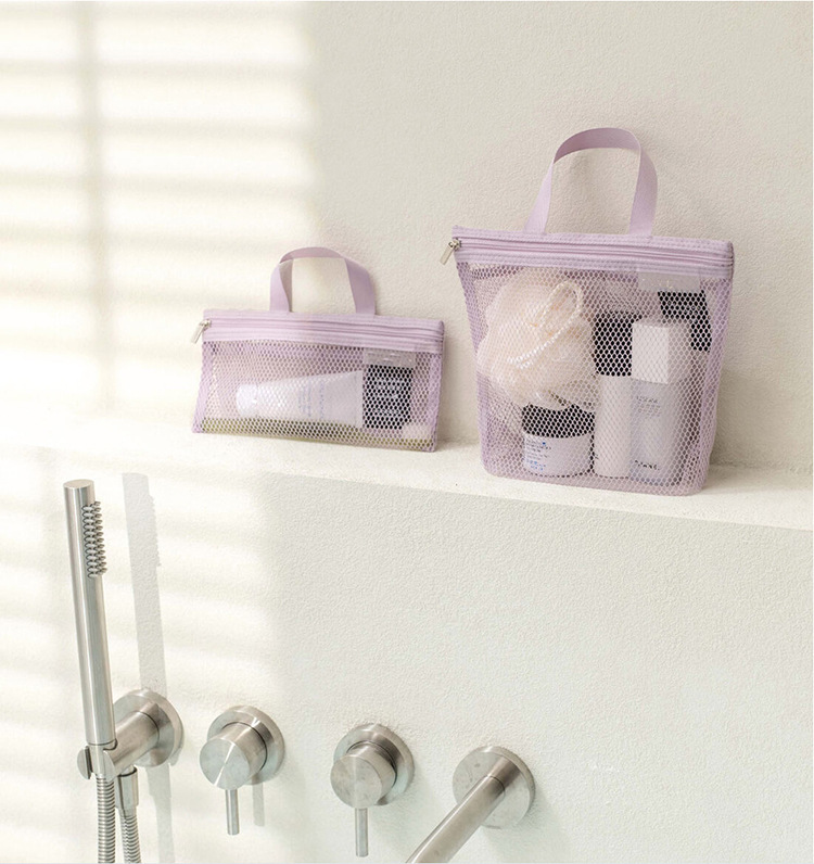 새로운 휴대용 화장품 가방, 메쉬 배수 샤워 가방, 피트니스 가방, 잡다한 보관 가방, 여행용 휴대용 세면 용품 가방