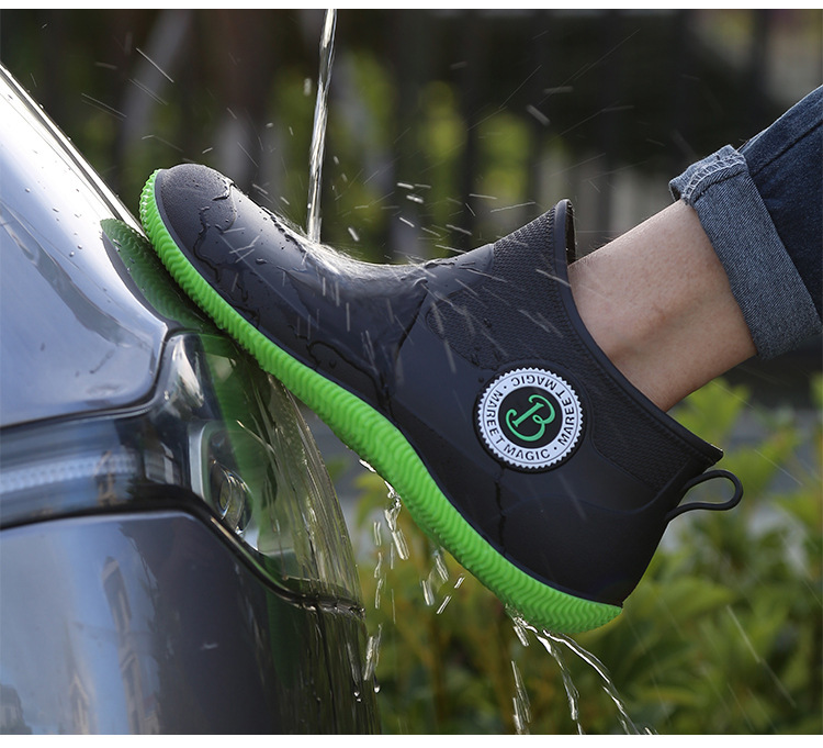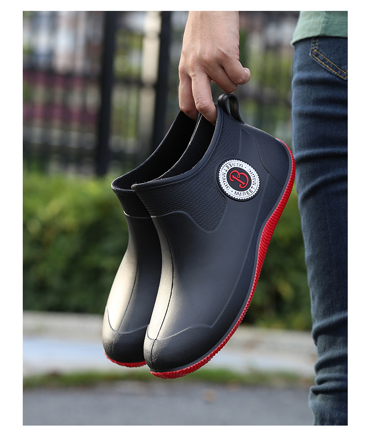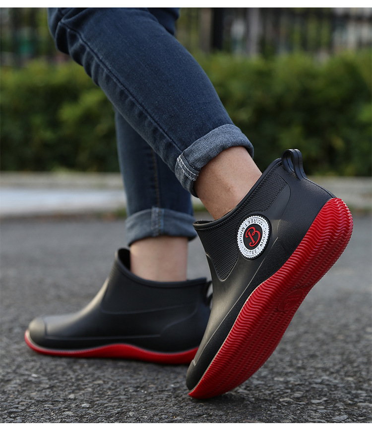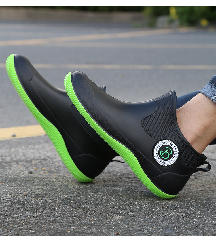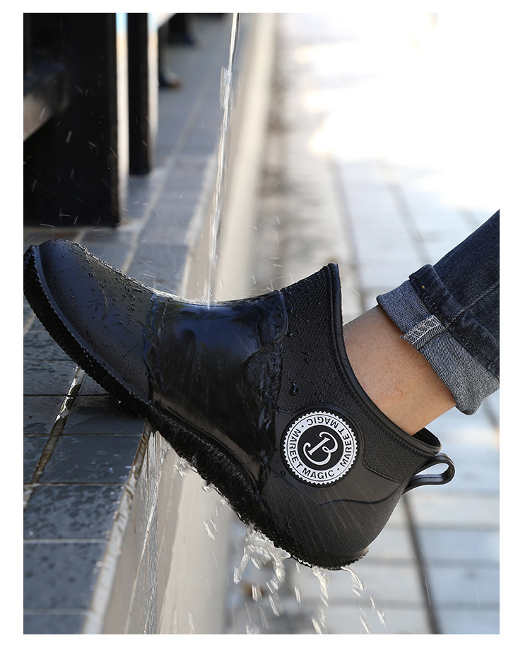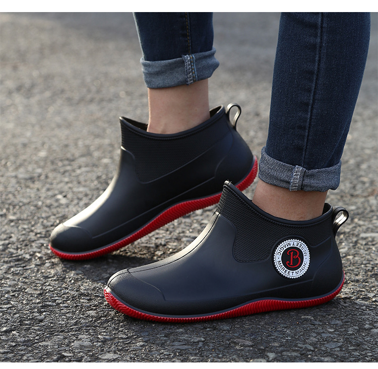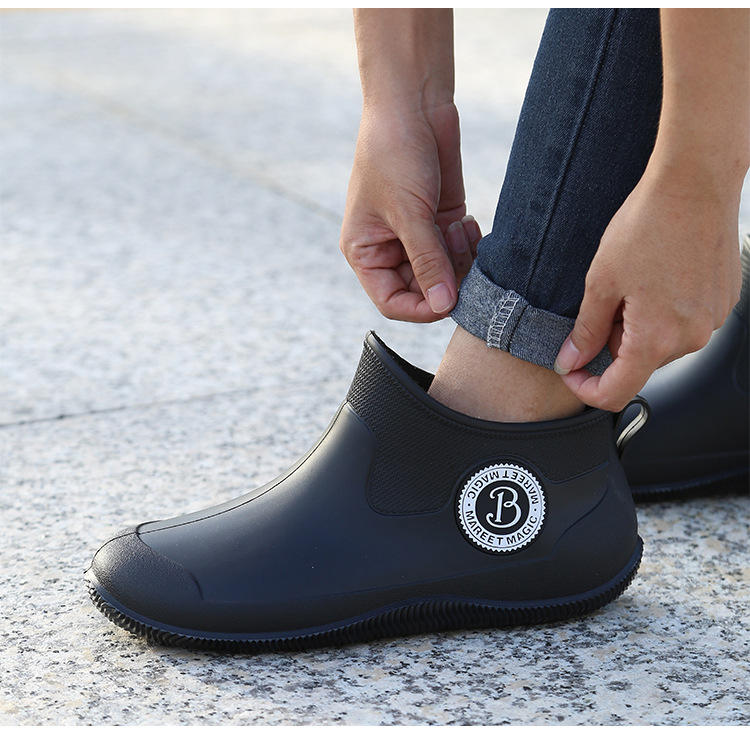 크로스 보더 레인 부츠 남성용 새로운 첼시 패션 짧은 장화 일본식 간단한 미끄럼 방지 소프트 하단 로우 탑 여성용 오버 슈즈