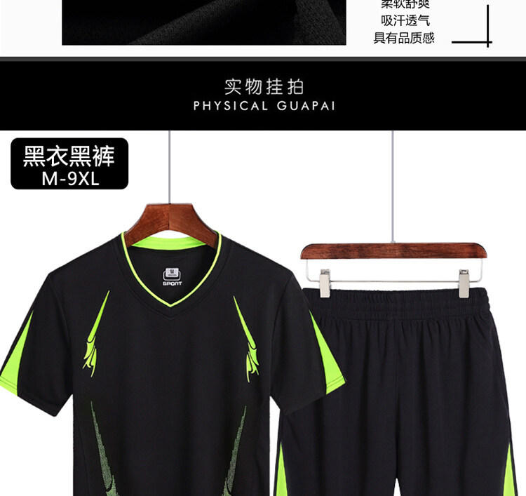 M-9XL 여름 속건 스포츠 세트 트렌디 한 남자의 티셔츠 느슨한 피트니스 실행 레저 세트 플러스 지방 플러스 지방스토어 가기