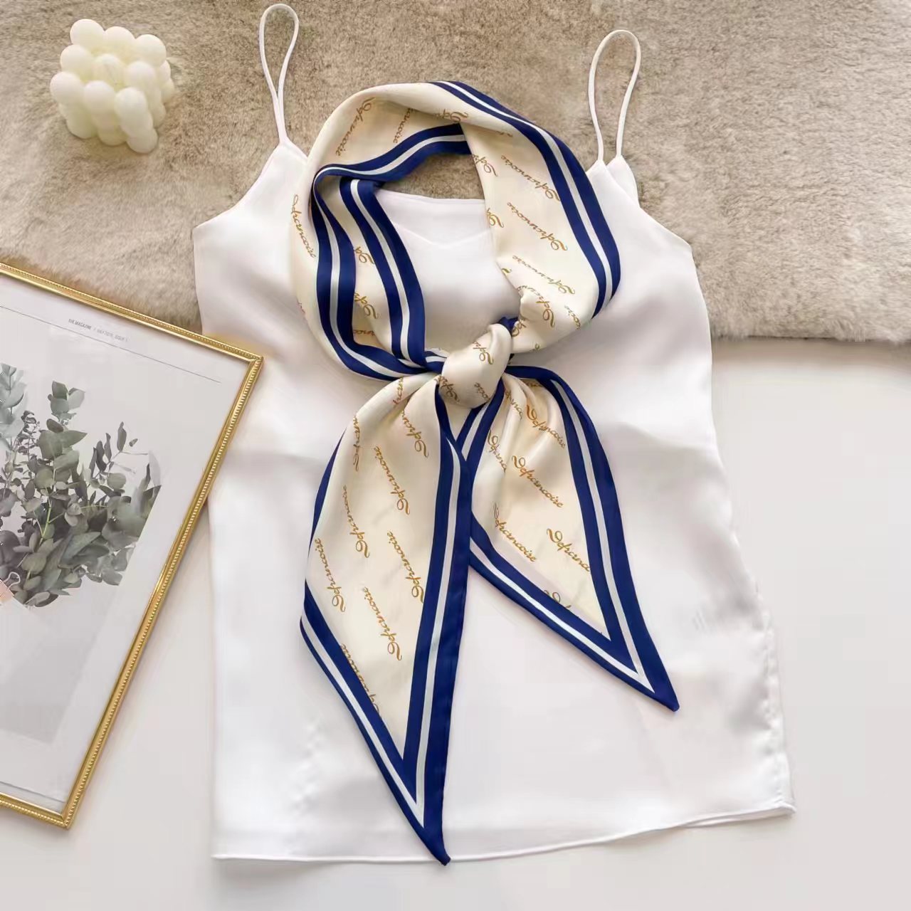 2023 새로운 하이 엔드 센스 모조 실크 작은 긴 스카프 여성용 작은 스카프 인쇄 스트라이프 리본 넥타이 스카프스토어 가기