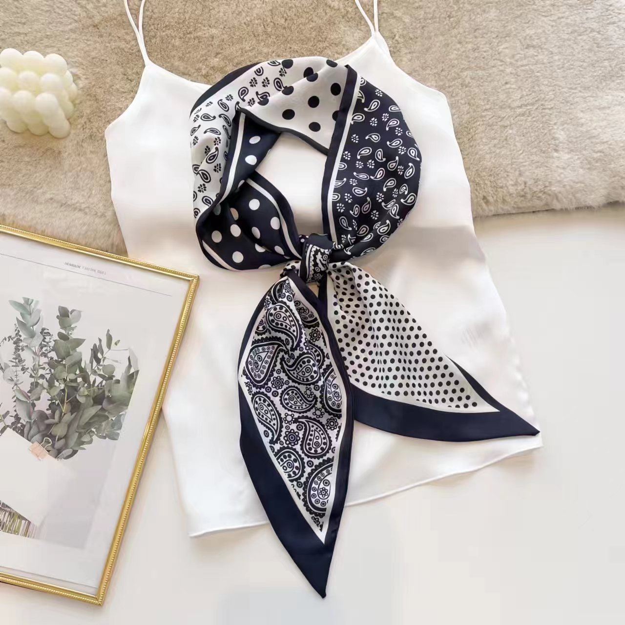 2023 새로운 하이 엔드 센스 모조 실크 작은 긴 스카프 여성용 작은 스카프 인쇄 스트라이프 리본 넥타이 스카프