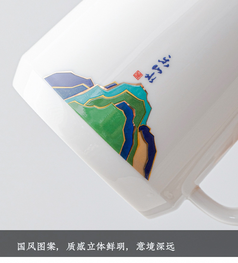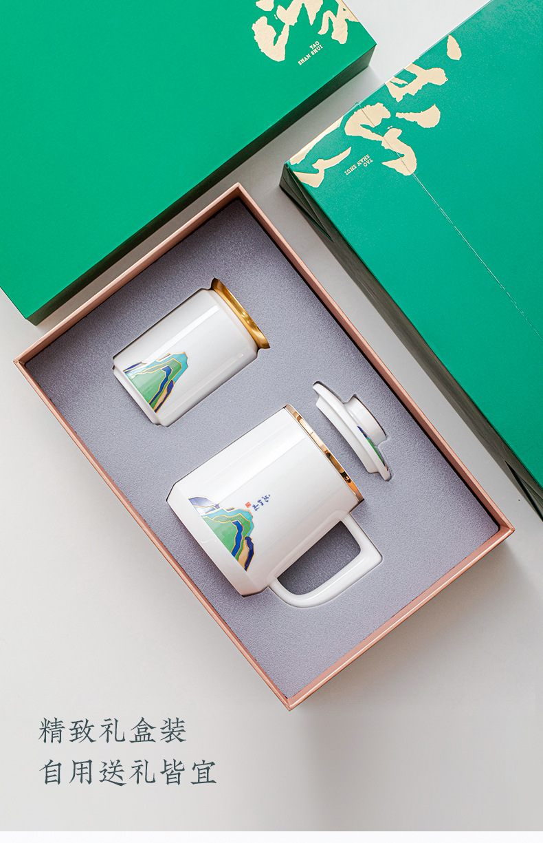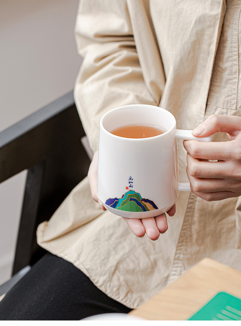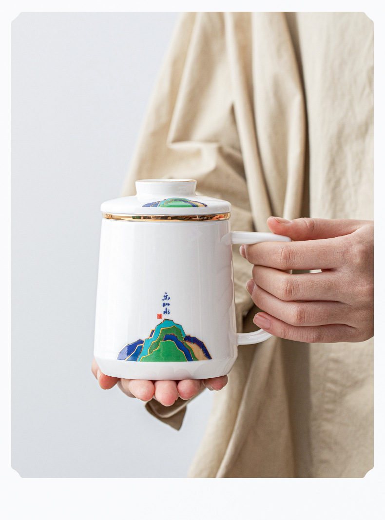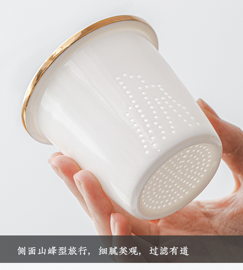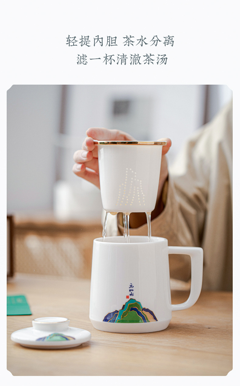 데화아 화이트 도자기 천 마일 장산 찻잔 뚜껑 필터 차 동반 선물 사무실 컵 세라믹 물 컵 세트 로고스토어 가기