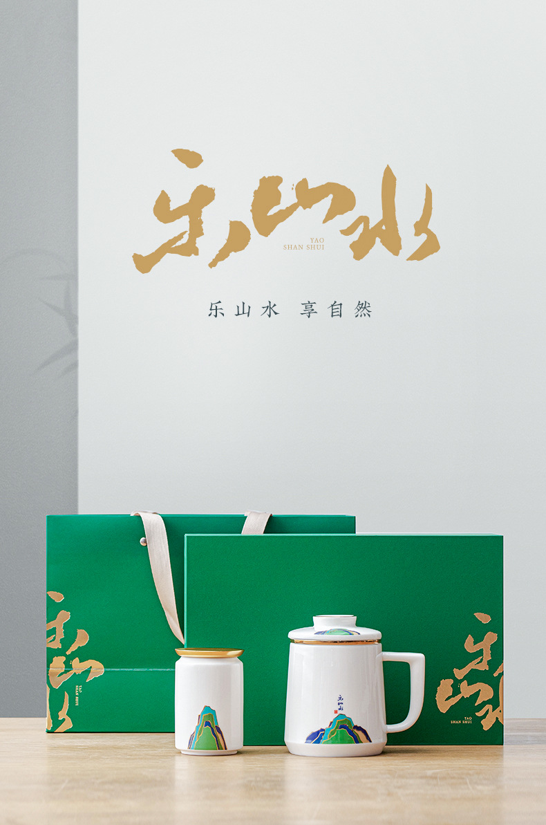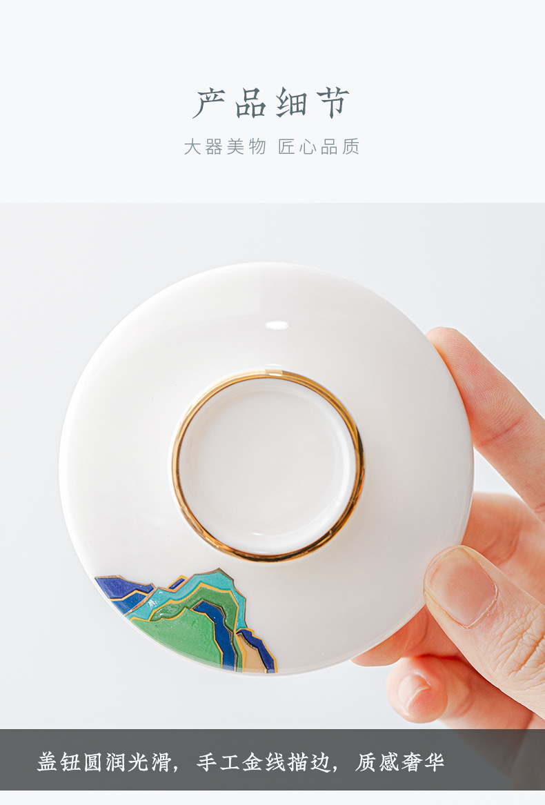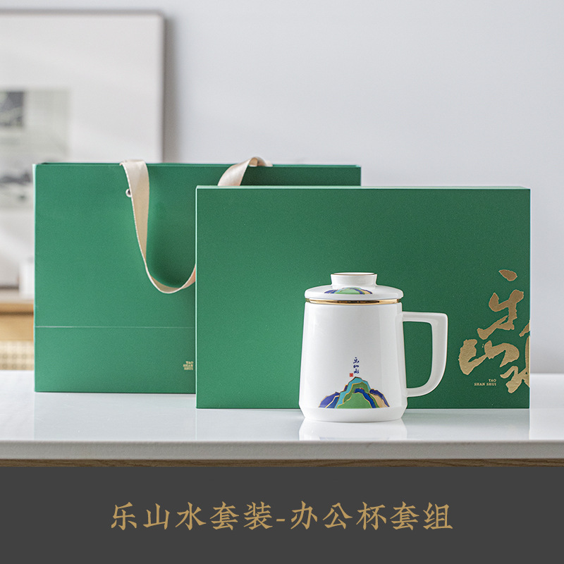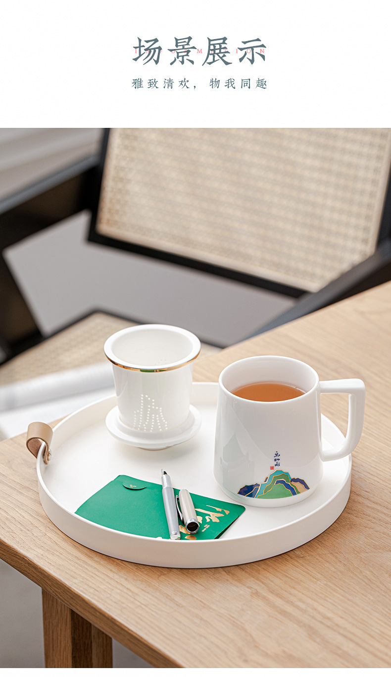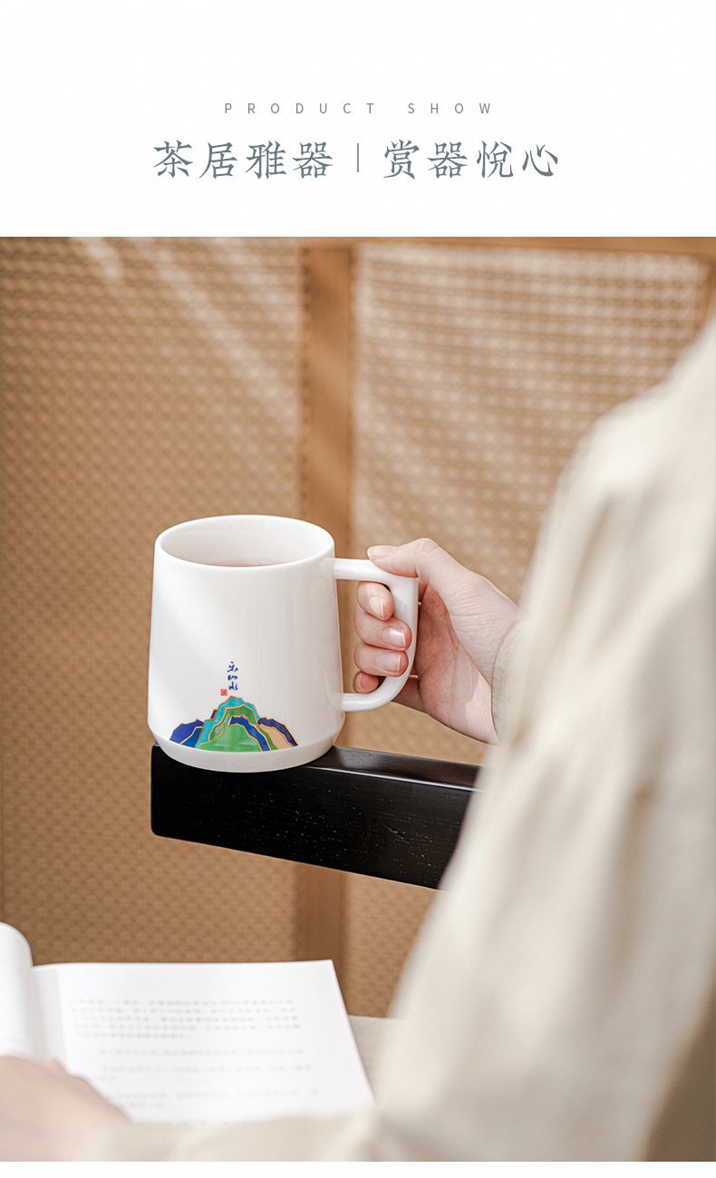 데화아 화이트 도자기 천 마일 장산 찻잔 뚜껑 필터 차 동반 선물 사무실 컵 세라믹 물 컵 세트 로고스토어 가기