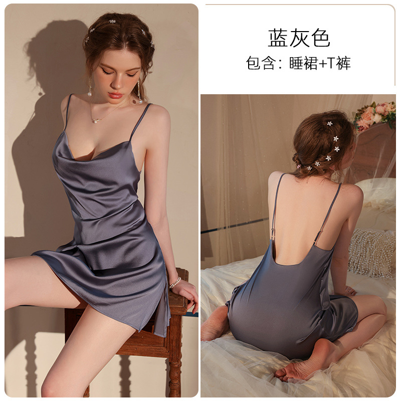 Mesilan 대형 섹시한 잠옷 여성 여름 섹시한 속옷 서스펜더 얼음 실크 잠옷 재미 하이 엔드 255스토어 가기