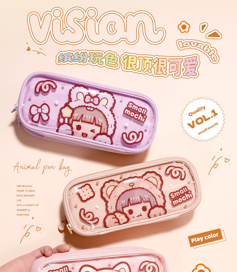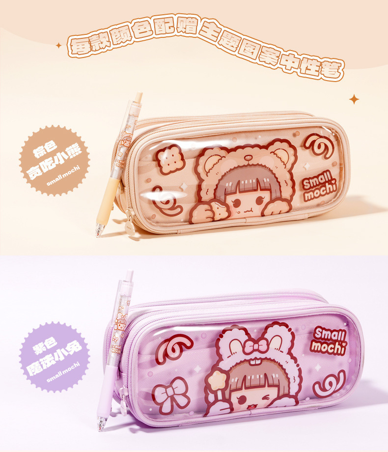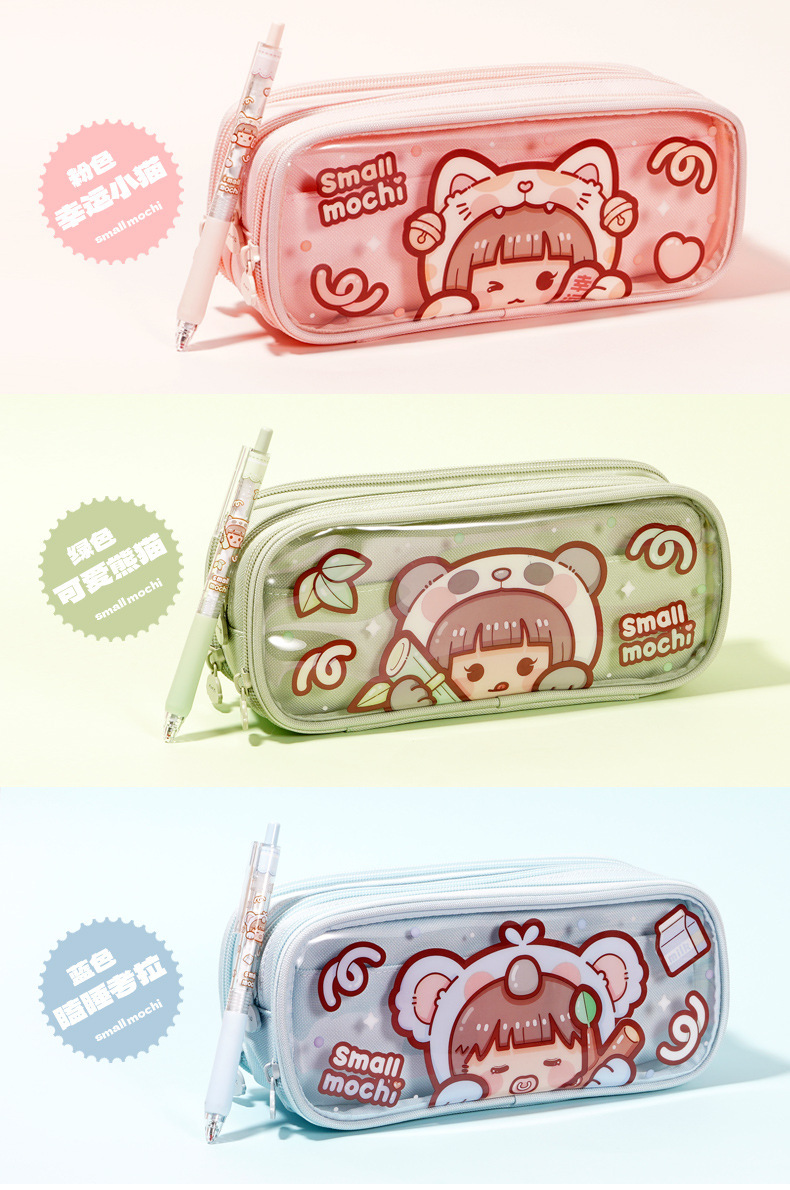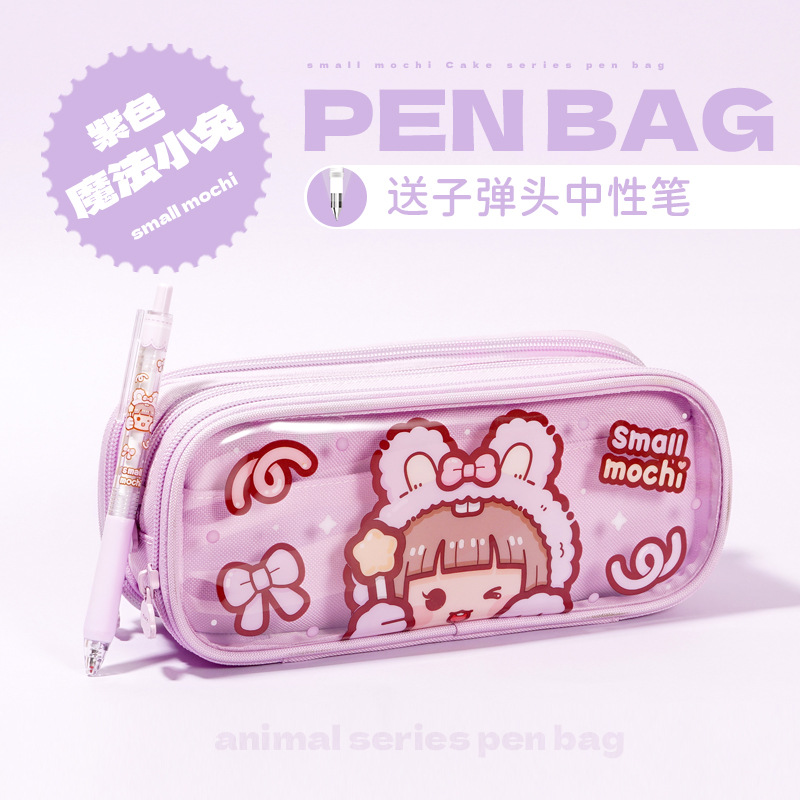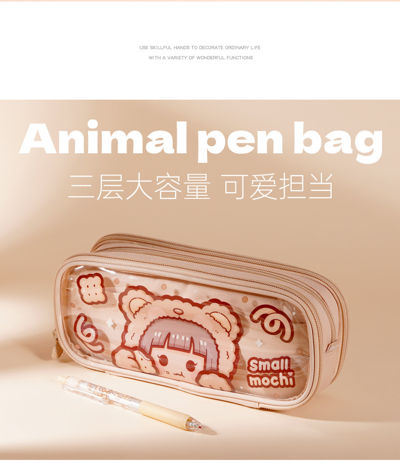 새로운 작은 감자 투명 필통 추가 소년 소녀 용 동물 시리즈 문구 상자 대용량 컬러 값 필통스토어 가기
