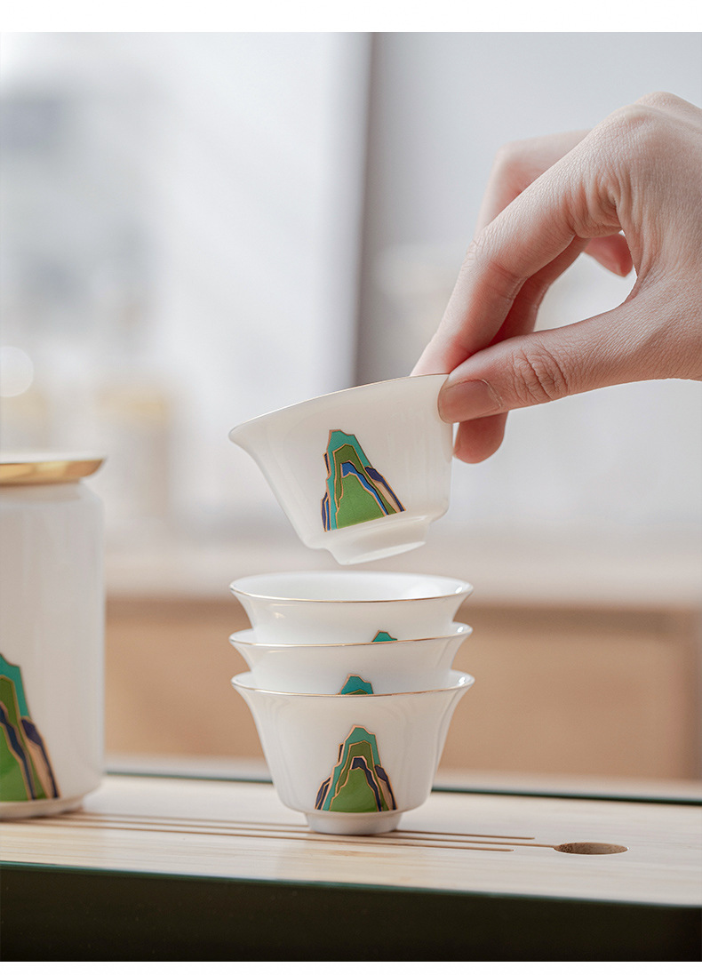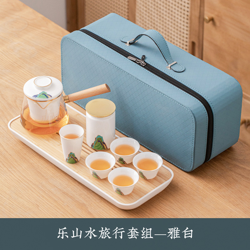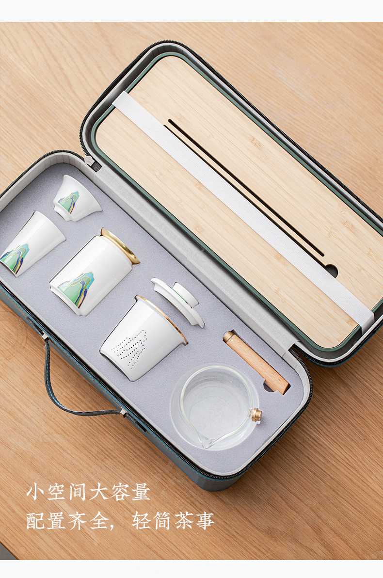 Qianli Jiangshan 여행 차 세트 세트 익스프레스 컵 휴대용 차 세트 찻 주전자 고정 로고 기업 동반 선물 티 트레이스토어 가기