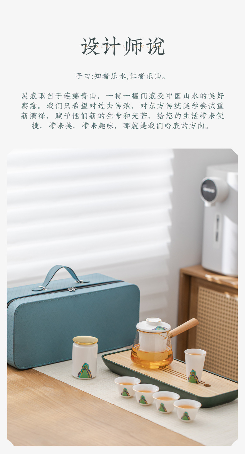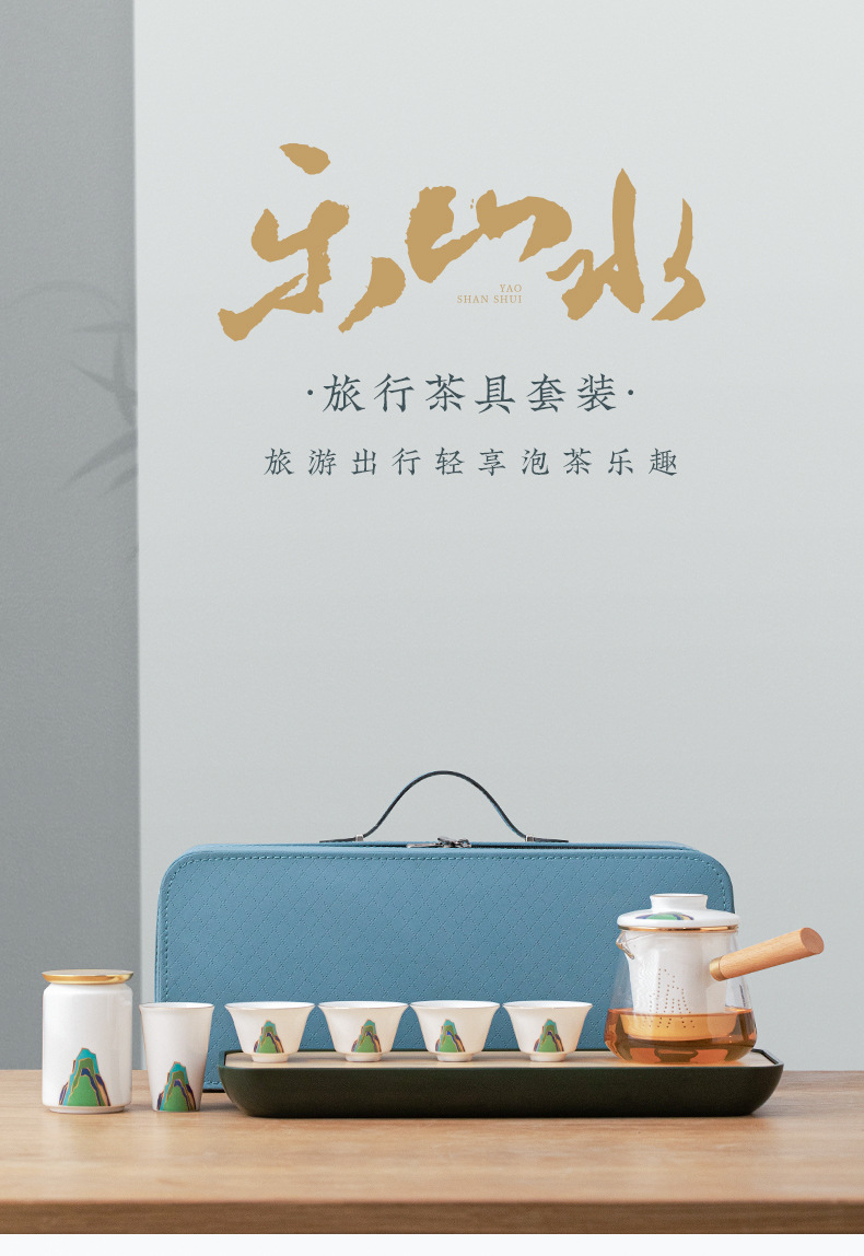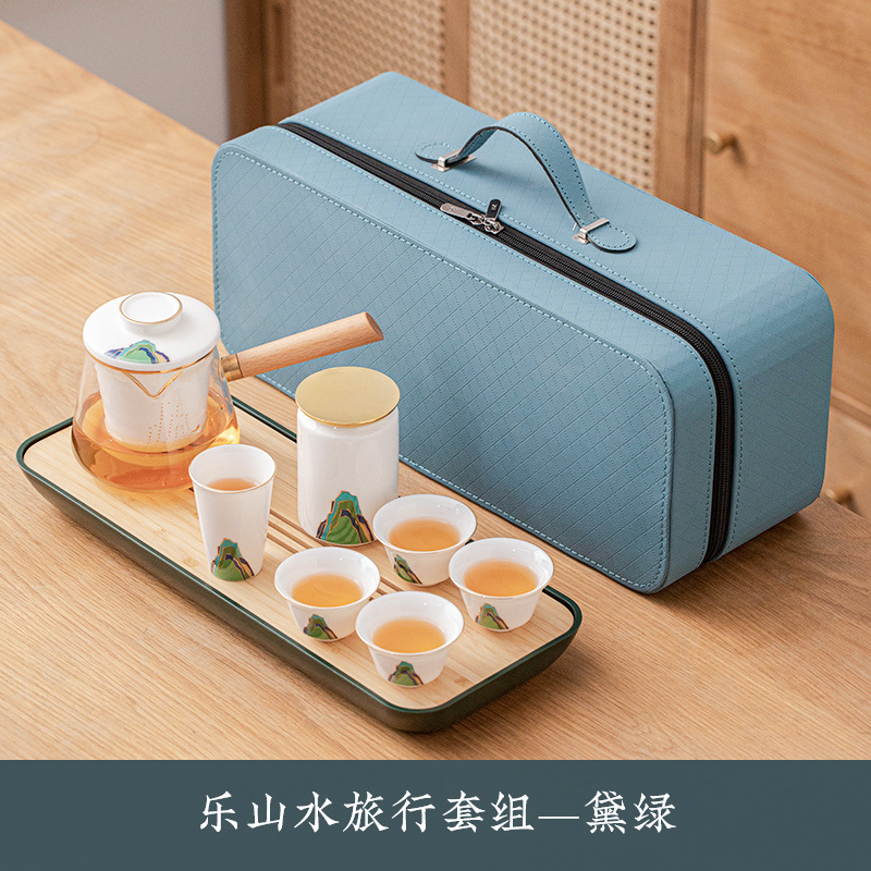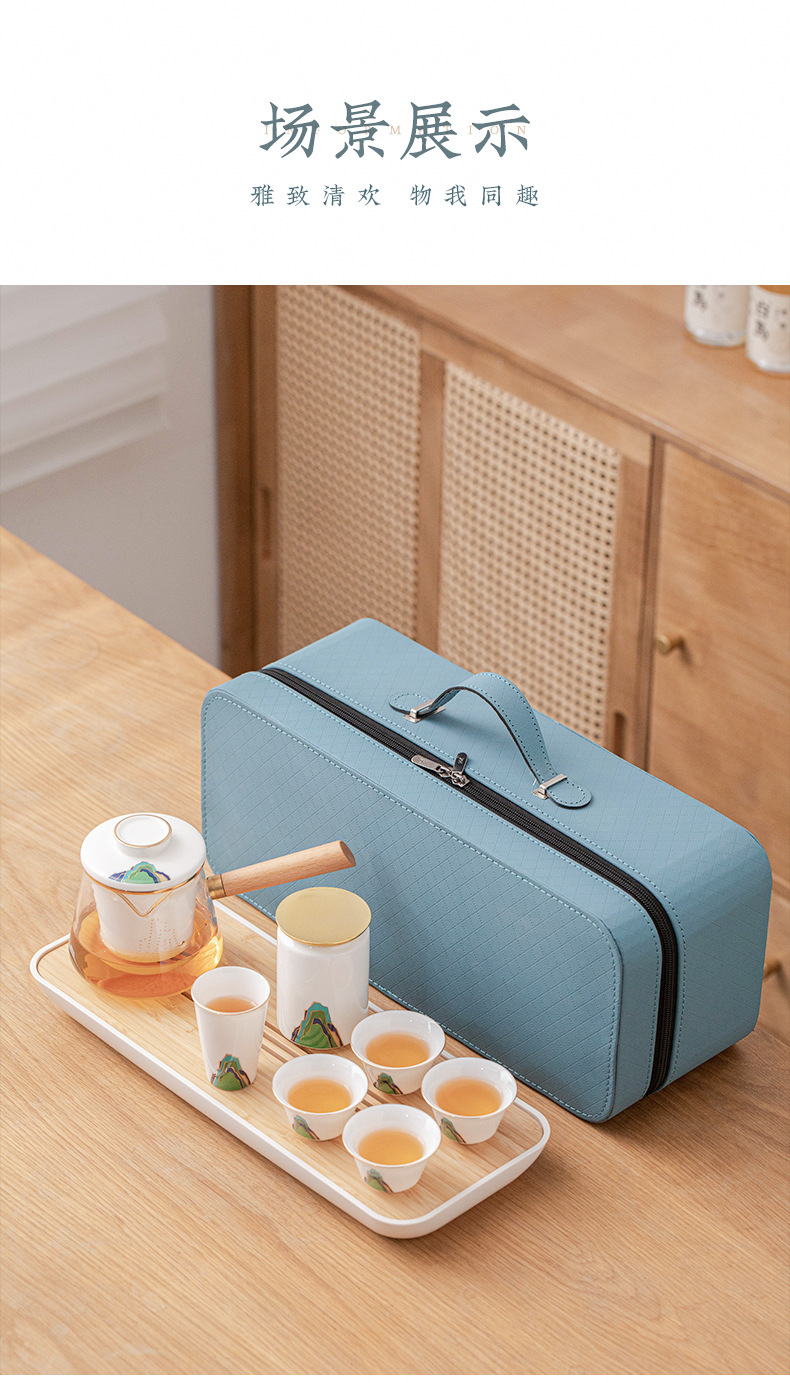Qianli Jiangshan 여행 차 세트 세트 익스프레스 컵 휴대용 차 세트 찻 주전자 고정 로고 기업 동반 선물 티 트레이