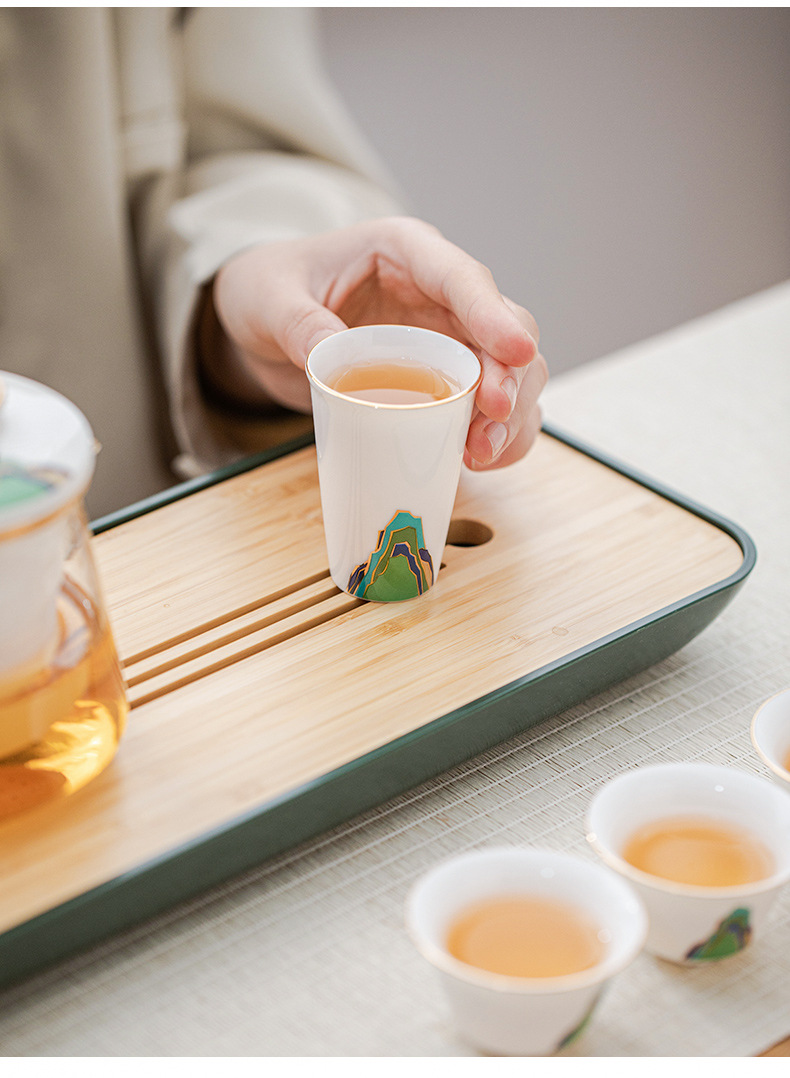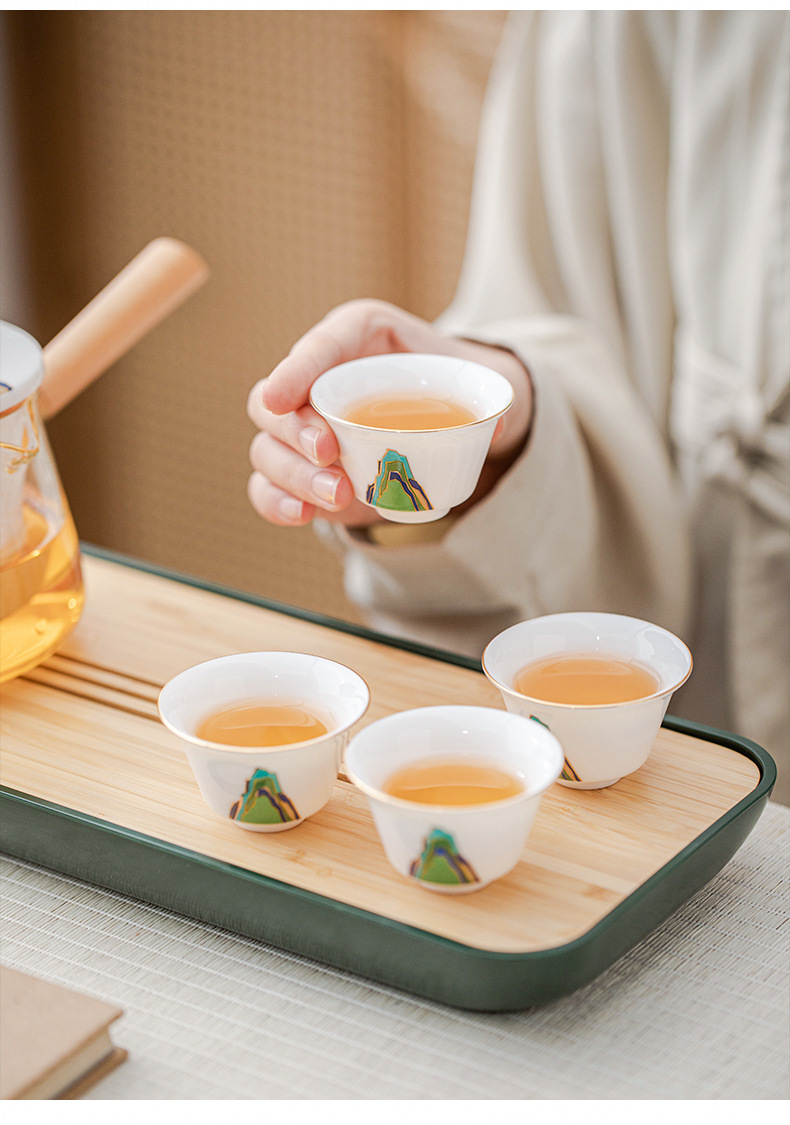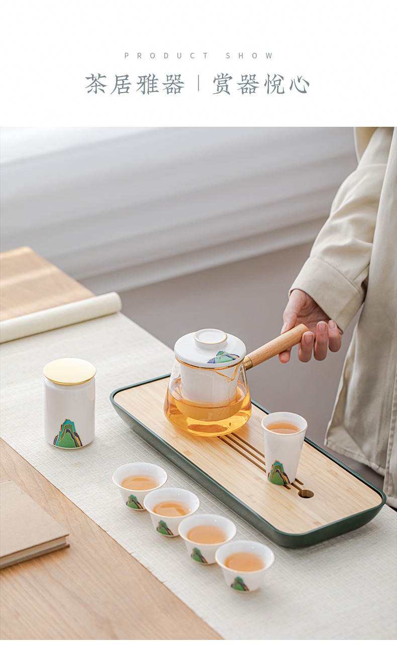 Qianli Jiangshan 여행 차 세트 세트 익스프레스 컵 휴대용 차 세트 찻 주전자 고정 로고 기업 동반 선물 티 트레이