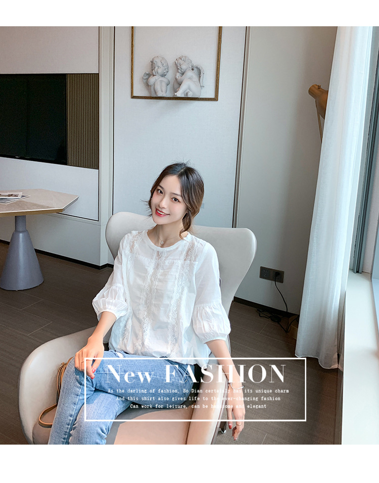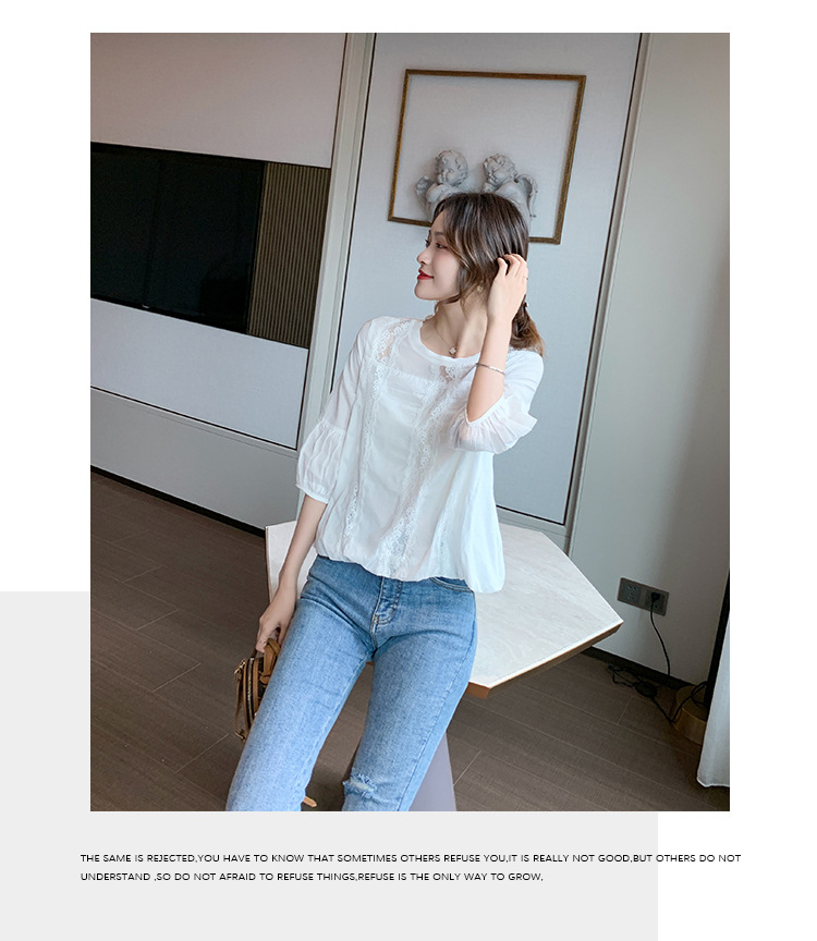 리얼 샷 레이스 셔츠 여성 2022 새로운 꽃 랜턴 소매 봄과 여름 쉬폰 셔츠 중공 탑 쉬폰 셔츠스토어 가기