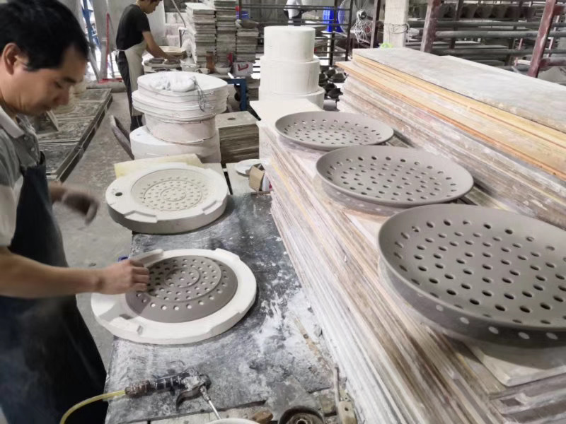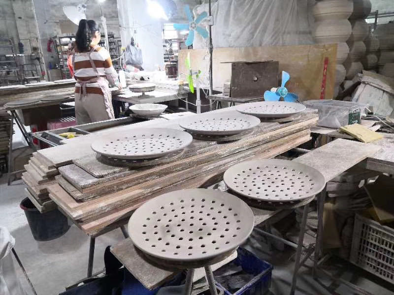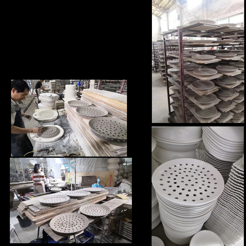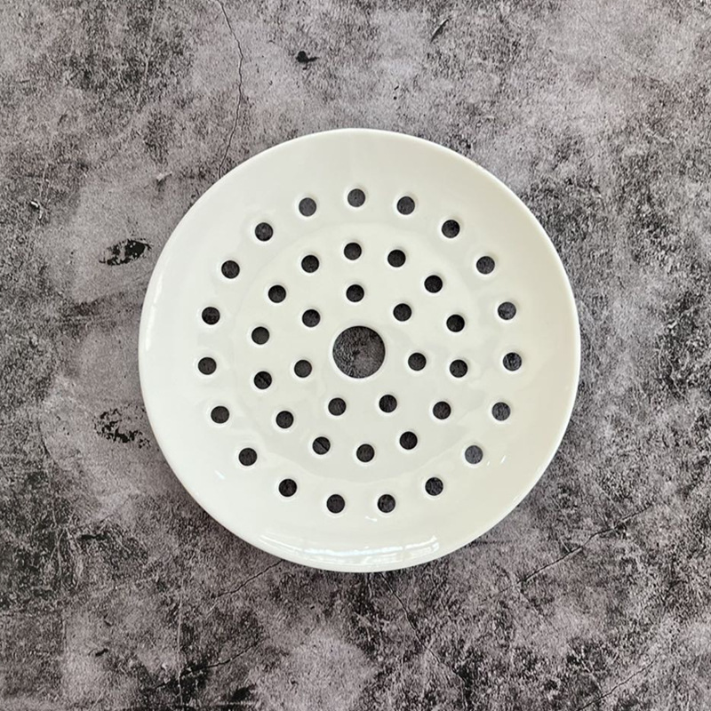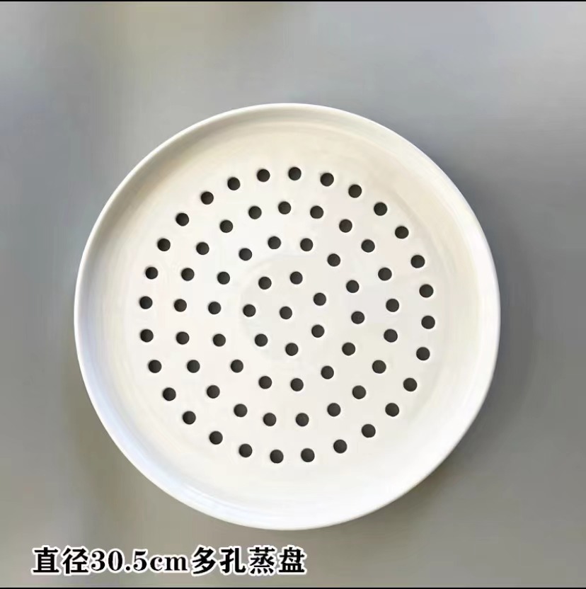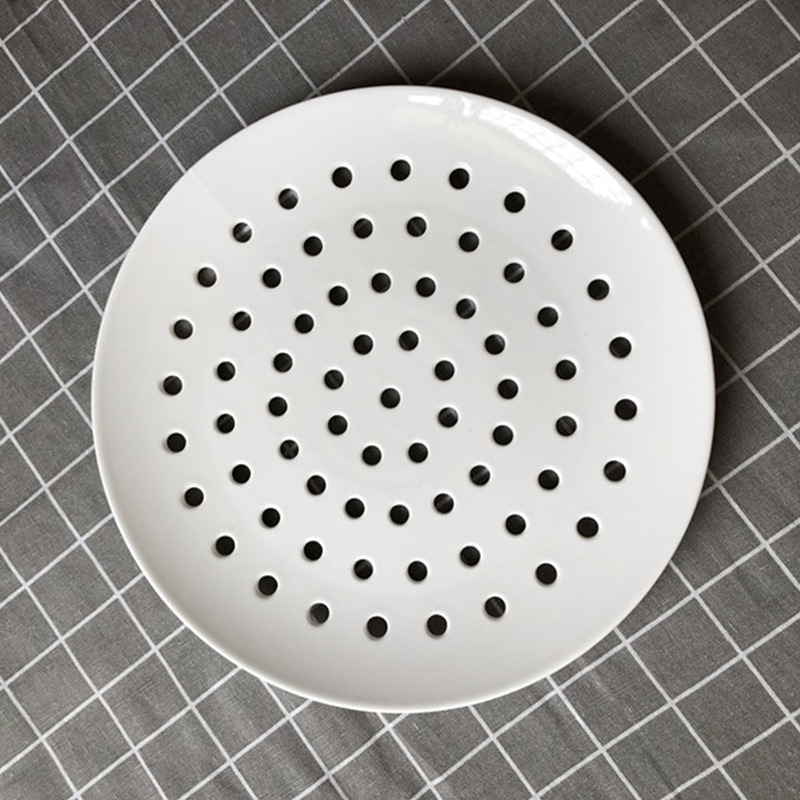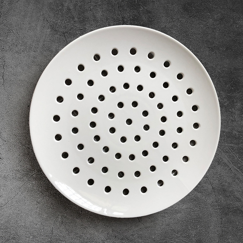 해산물 김을위한 세라믹 다공성 스팀 플레이트 창조적 인 상업용 만두 플레이트 생선 찜 빵 배수 플레이트 라운드 스팀 플레이트