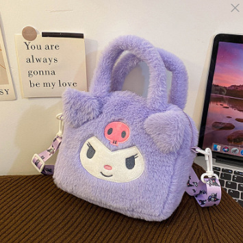 毛绒包包女毛毛卡通双肩包2021新款时尚潮紫色库洛米小狐狸手