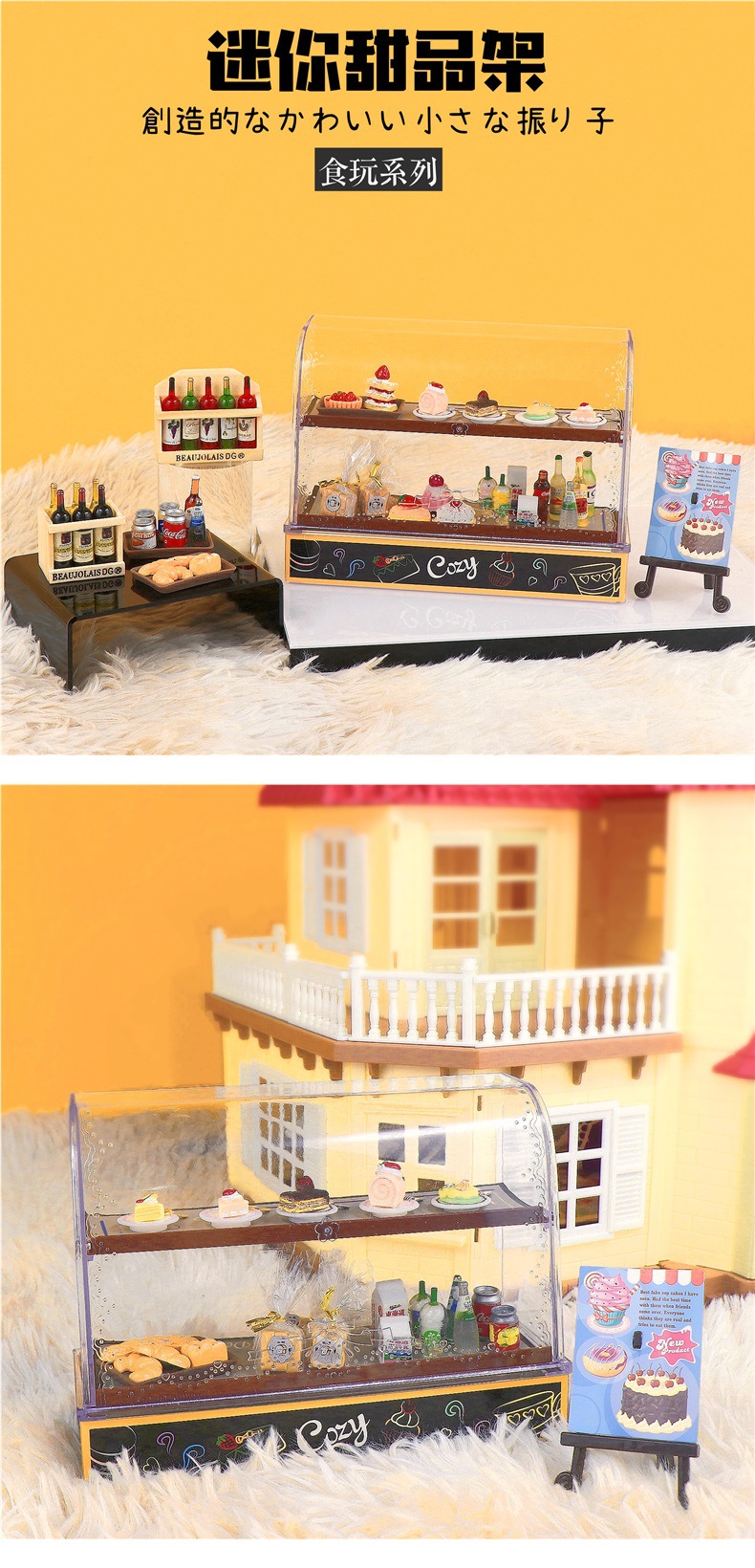 미니 케이크 캐비닛 편의점 제품 캐비닛 디저트 랙 다이닝 카 DIY 미니어처 음식 및 놀이 모델 장식품