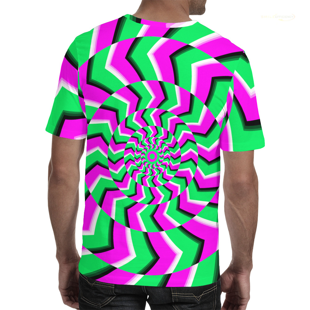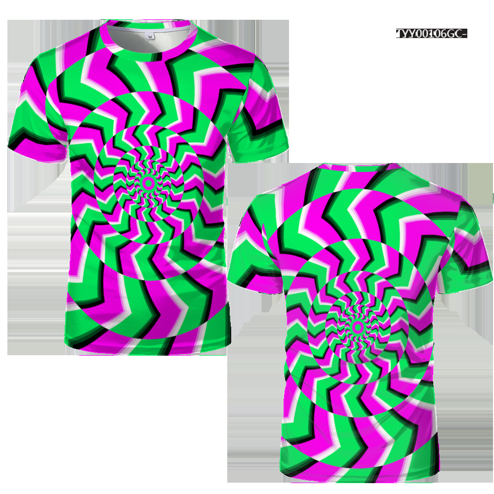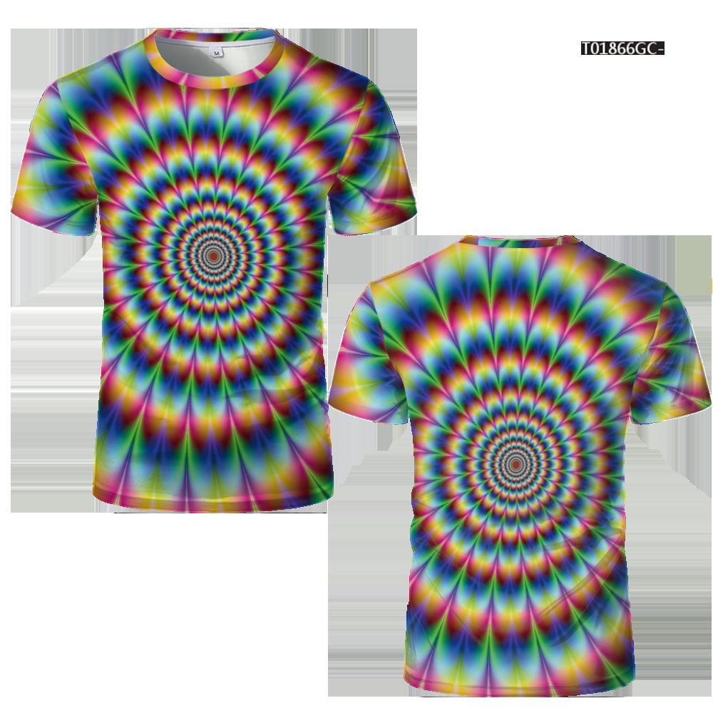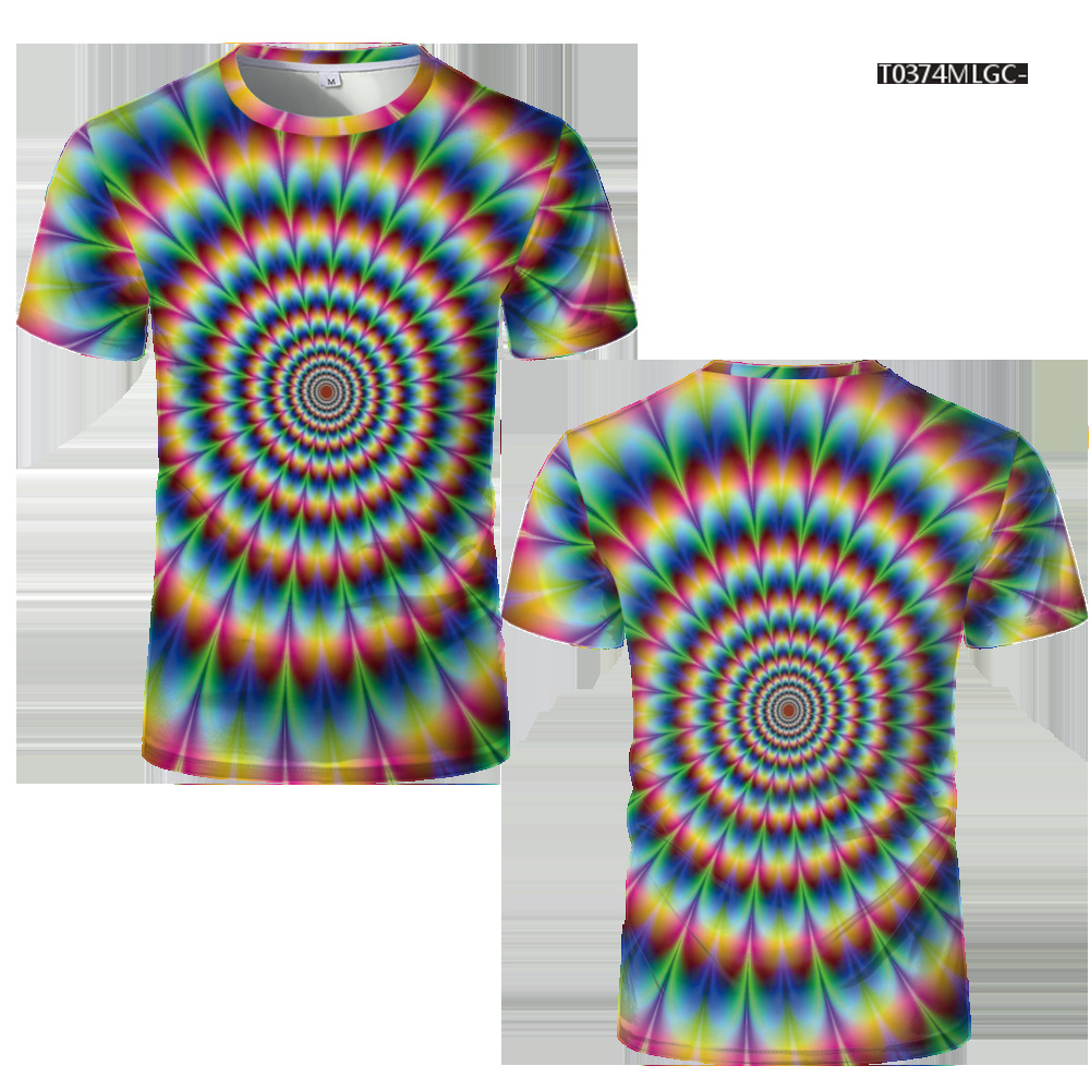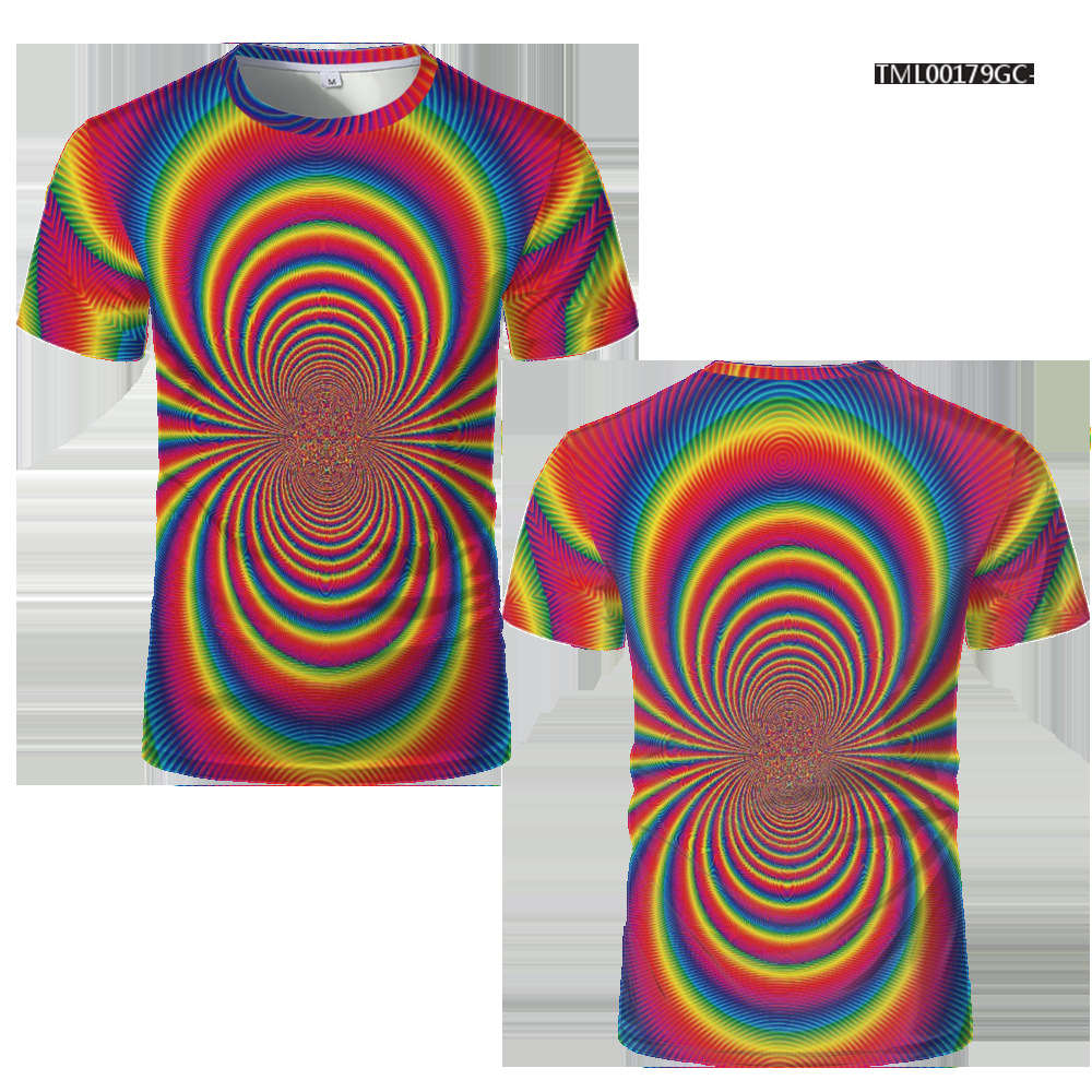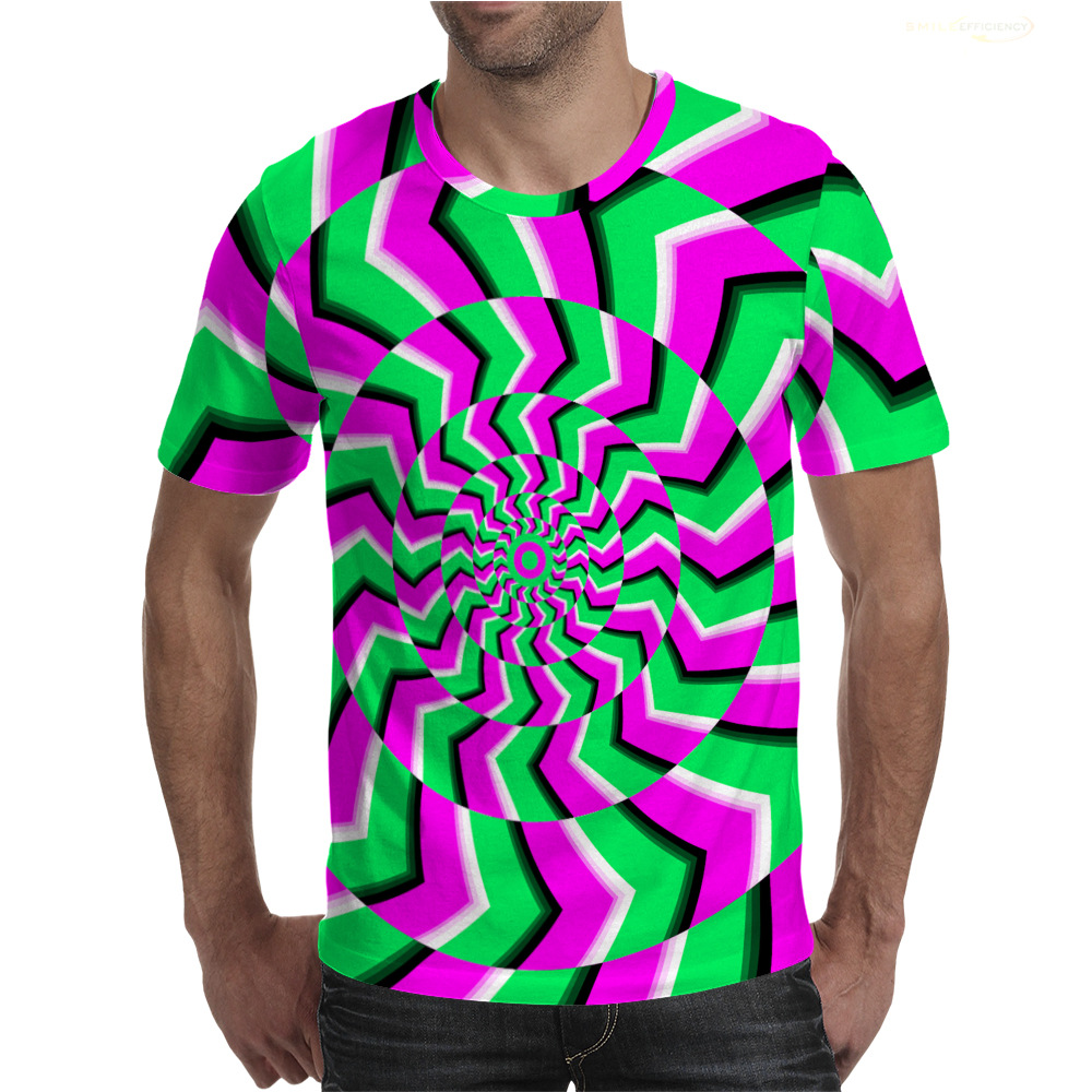 여름 패션 새로운 티셔츠 비주얼 환상 3D 디지털 인쇄 남성 라운드 넥 스포츠 캐주얼 짧은 소매 레인보우 레이저스토어 가기