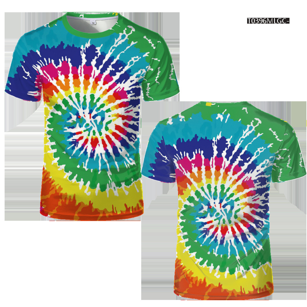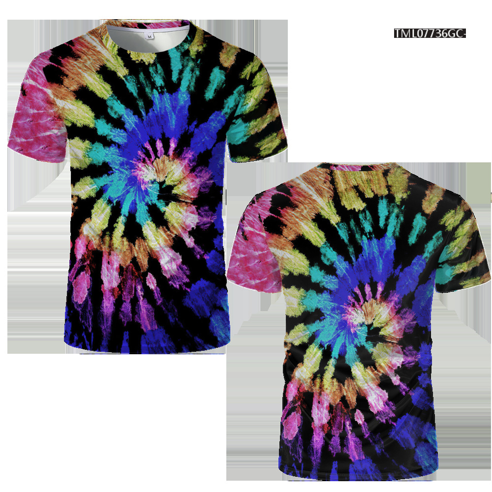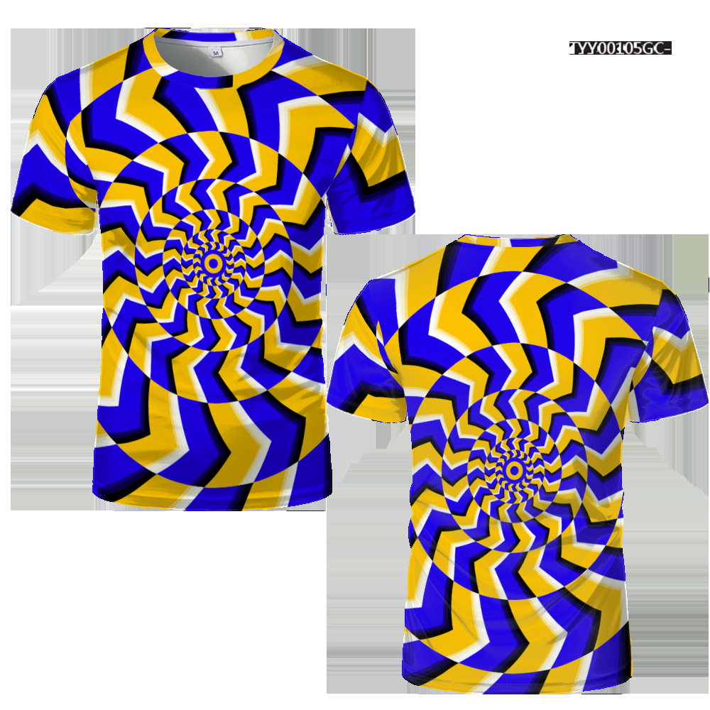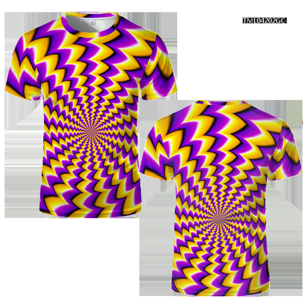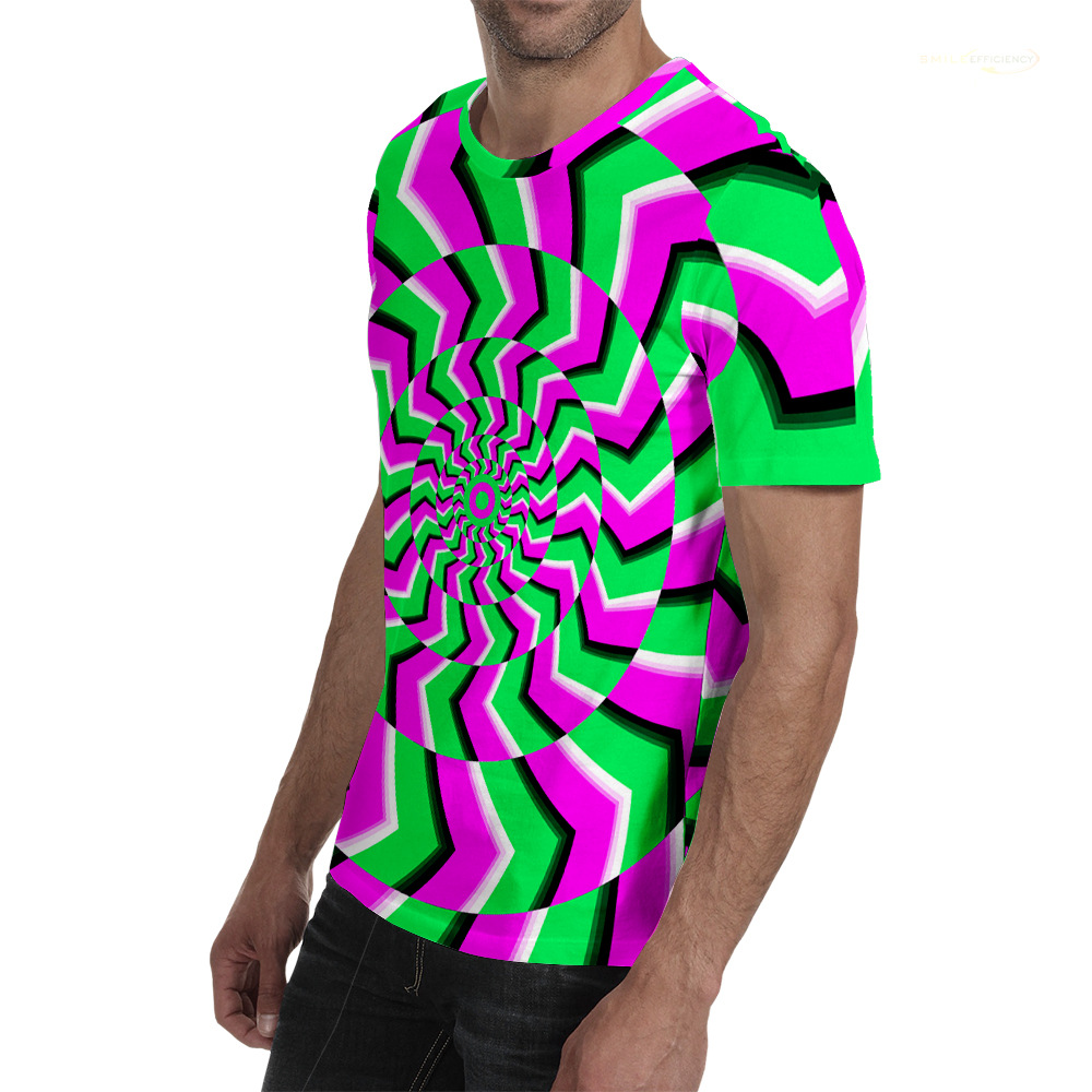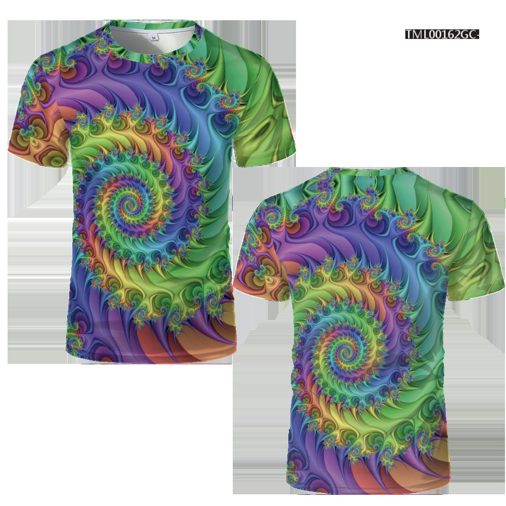 여름 패션 새로운 티셔츠 비주얼 환상 3D 디지털 인쇄 남성 라운드 넥 스포츠 캐주얼 짧은 소매 레인보우 레이저스토어 가기