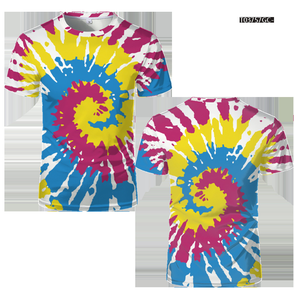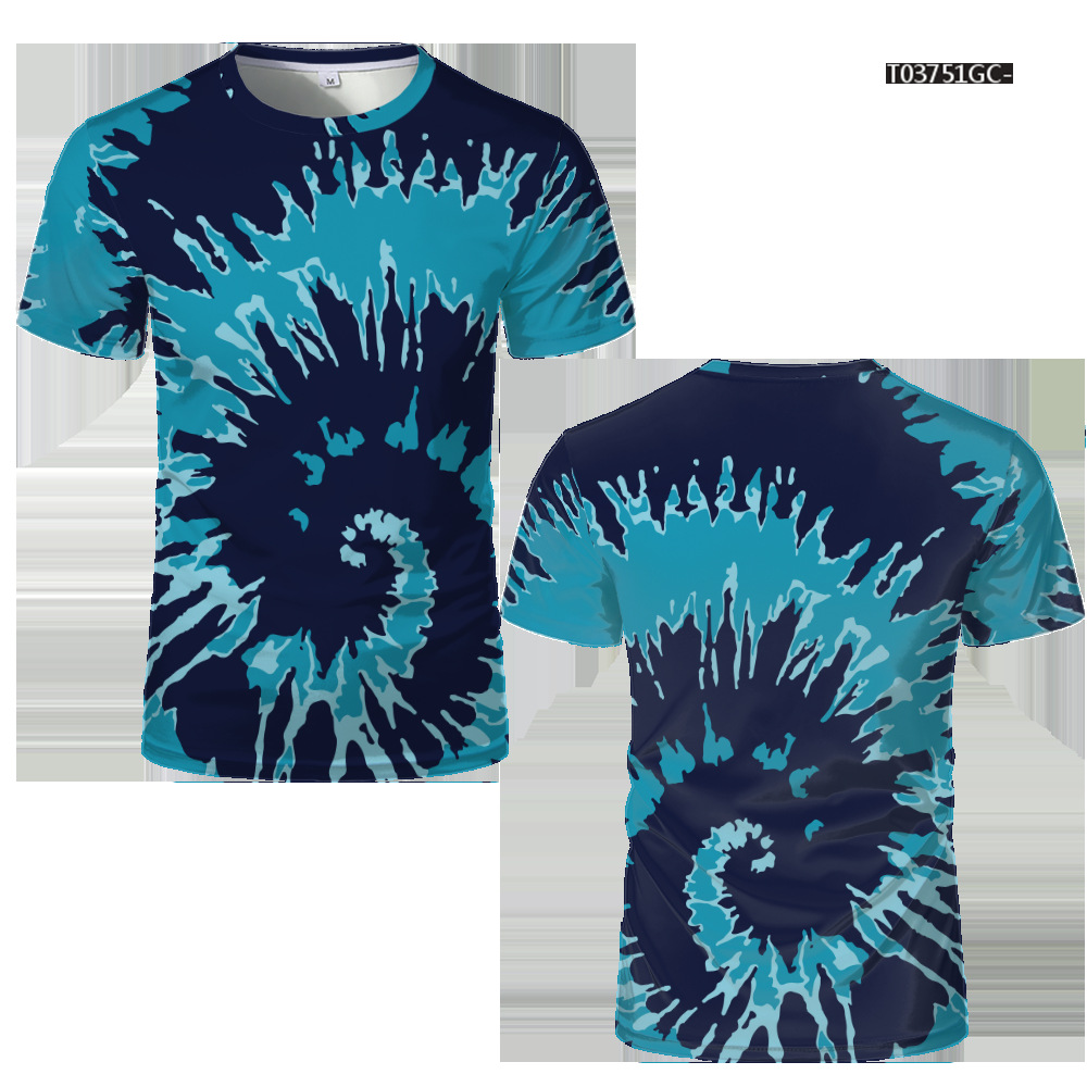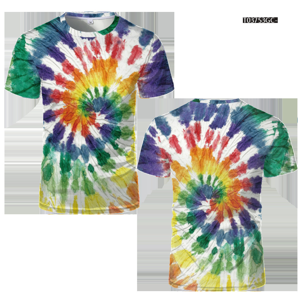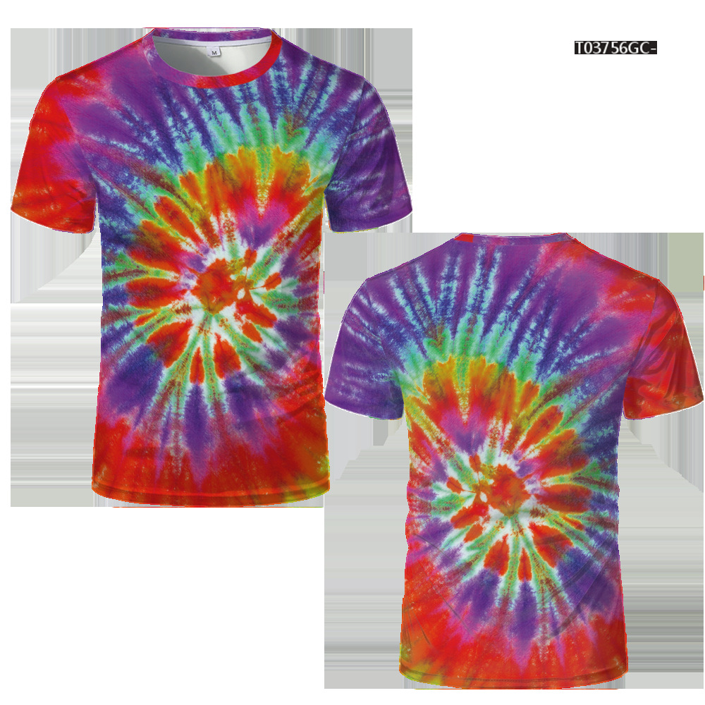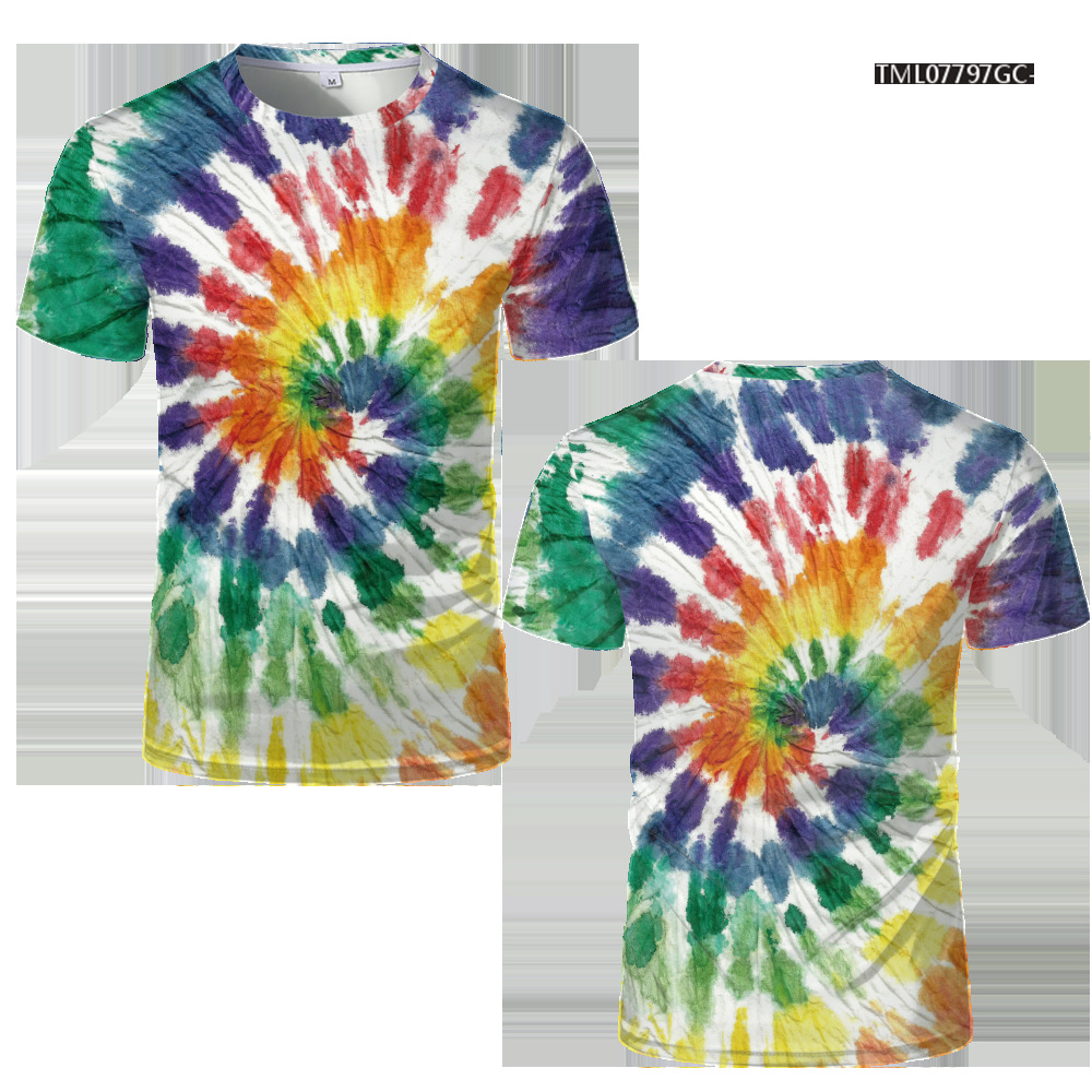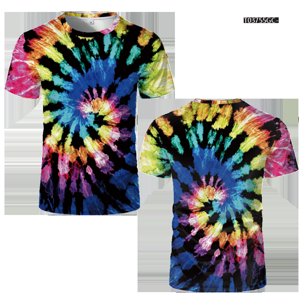 여름 패션 새로운 티셔츠 비주얼 환상 3D 디지털 인쇄 남성 라운드 넥 스포츠 캐주얼 짧은 소매 레인보우 레이저스토어 가기