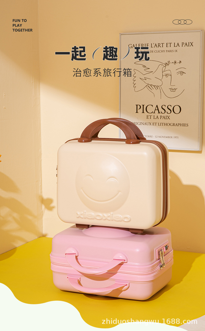 귀여운 만화 핸드 케이스 작은 수하물 14 인치 화장품 케이스 선물 상자 마카롱 컬러 보관 가방 미니 여행
