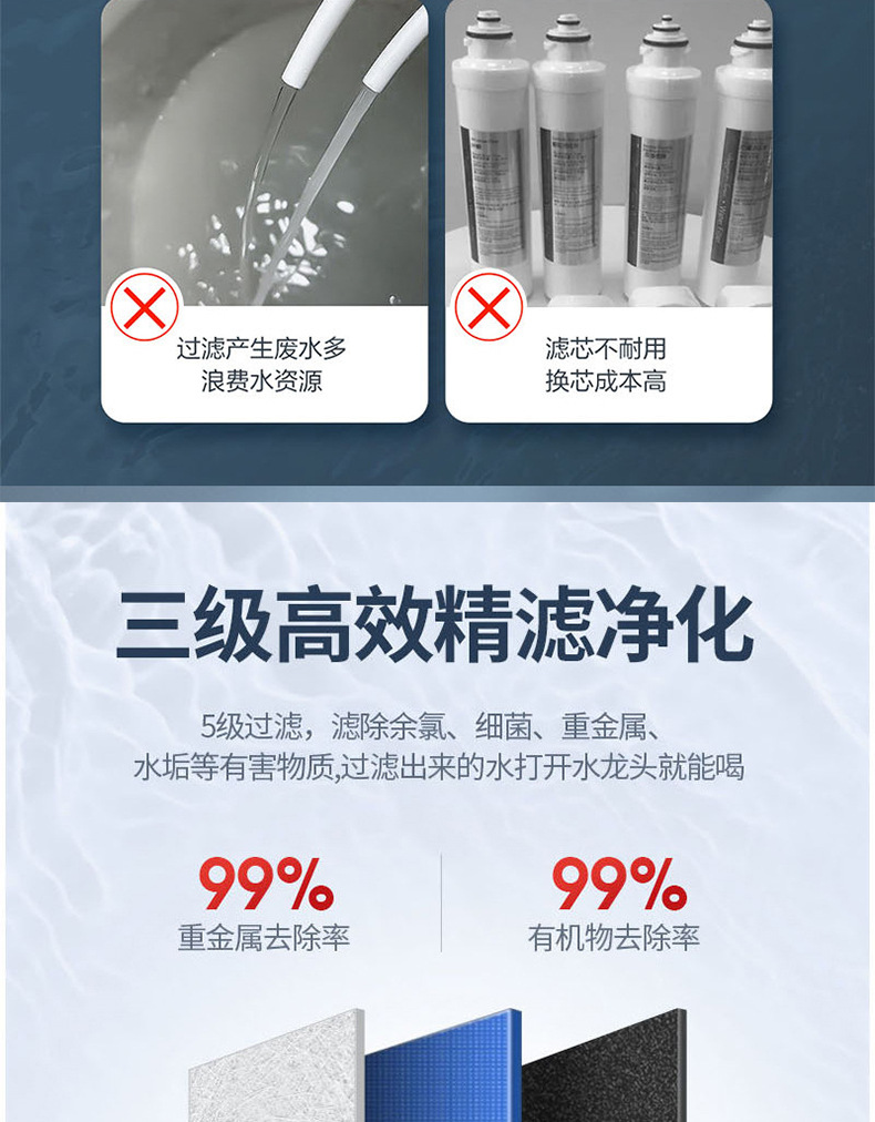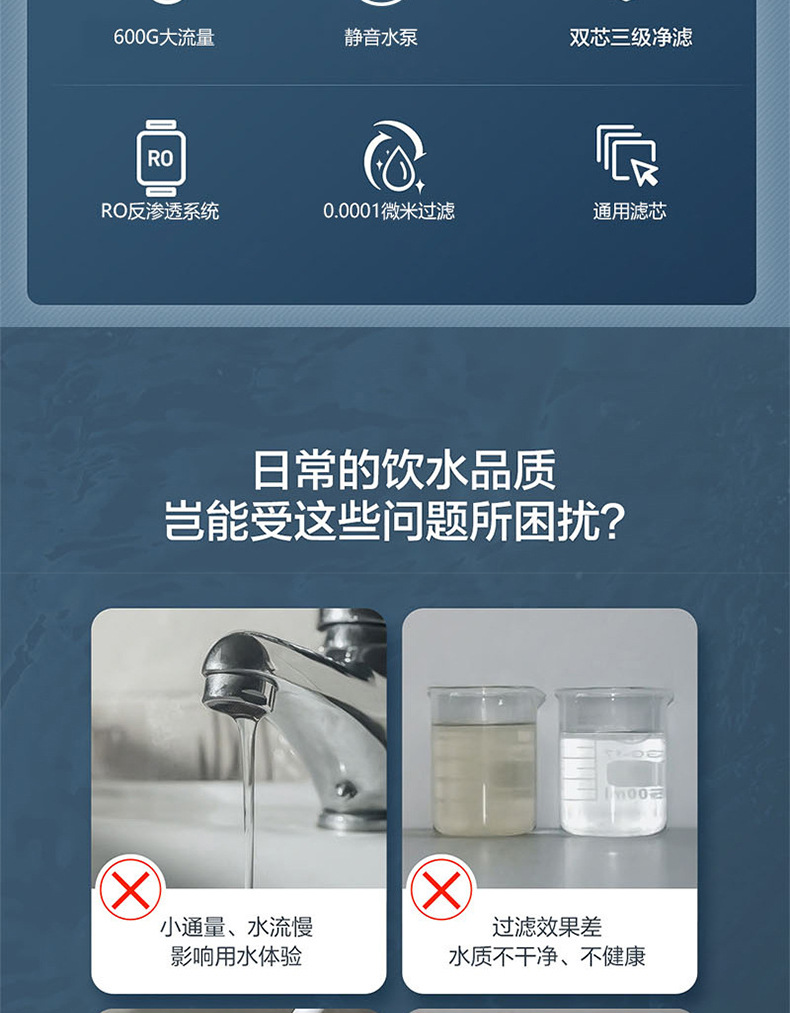 净水器家用600G直饮反渗透过滤厨下净水机纯水机大流量过滤器