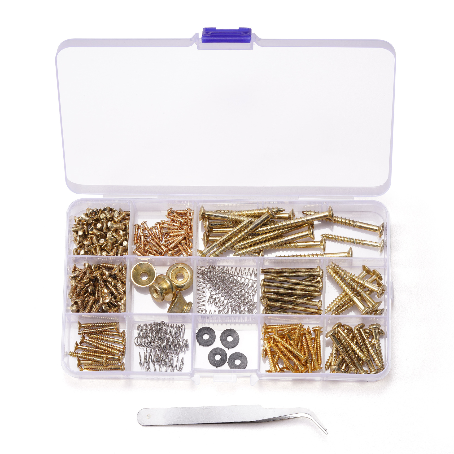 1. The whole kit includes 9 types of screws and 2 types guitar strap buttons, a tweezers for electric guitar, total 254 pieces, all store in a plastic box, convenient to carry and keep. Package quantity: show as the picture and product description.