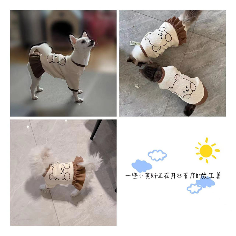 테디독 중소형견 애완견 베이스 셔츠 연인 고양이 스커트 티셔츠 쓴 곰 옷 용품