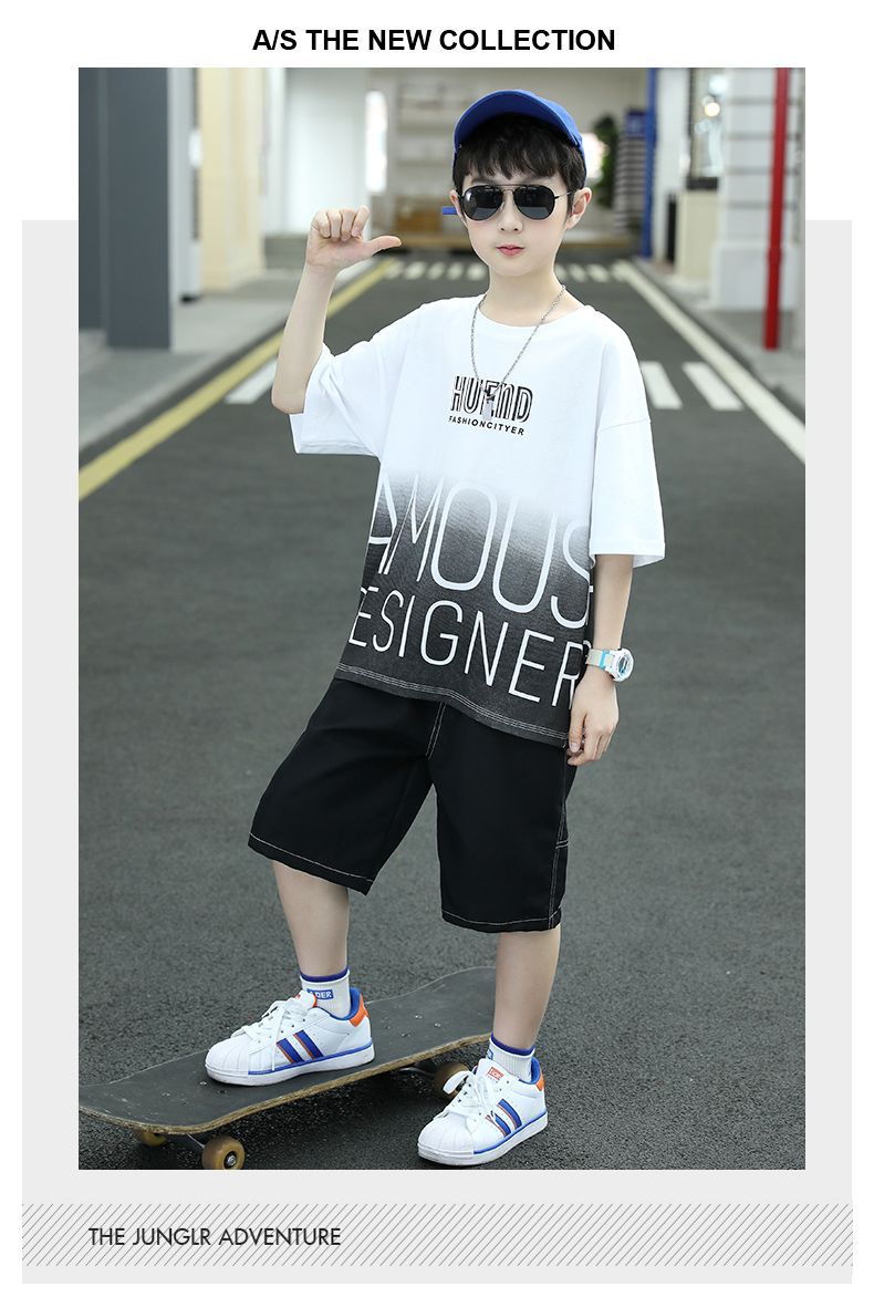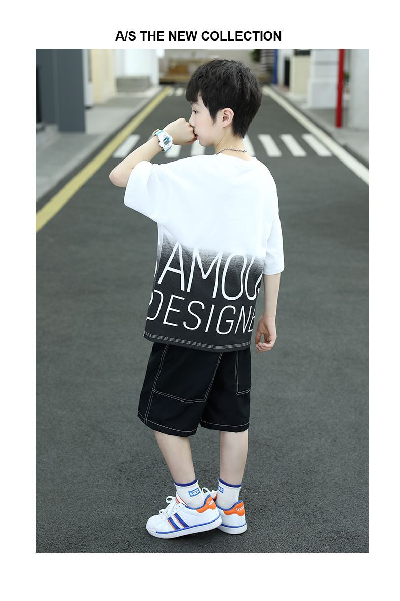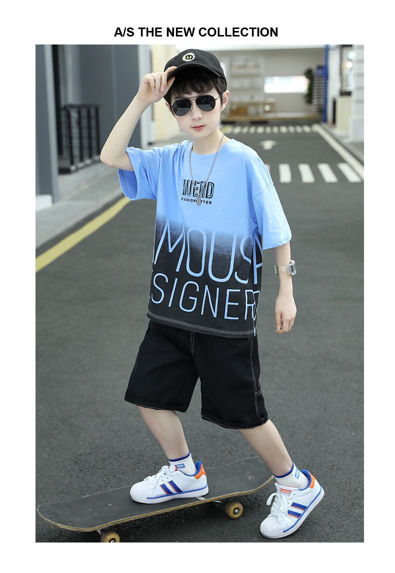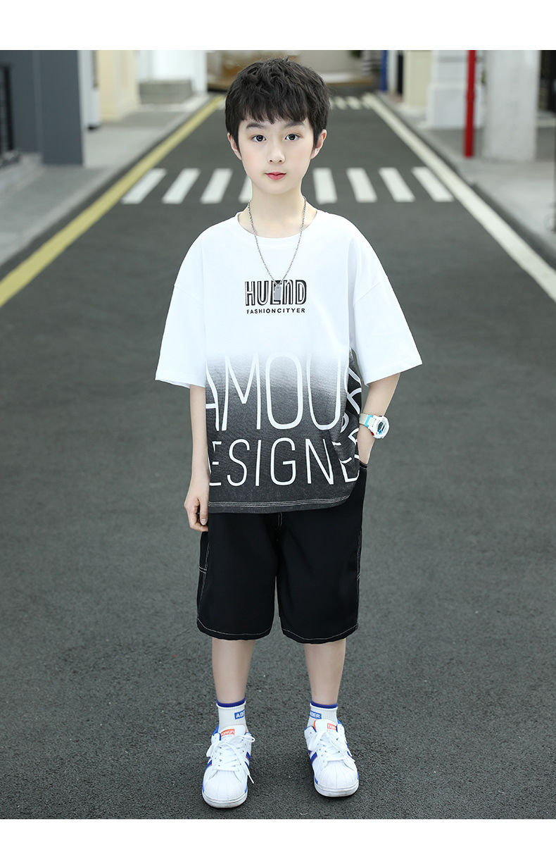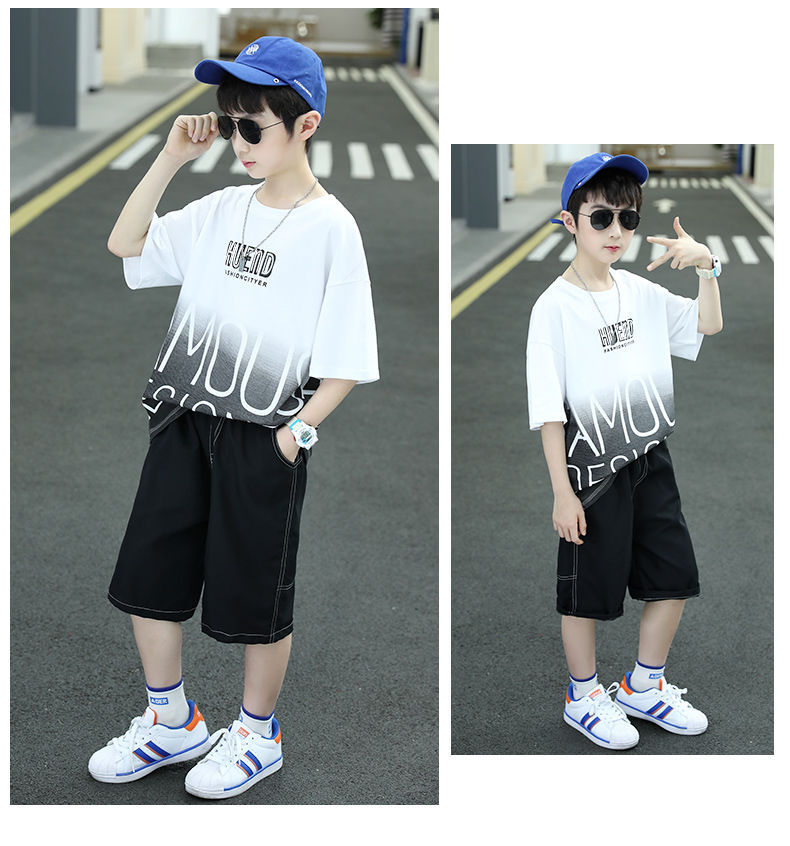여름 소년 잘 생긴 느슨한 캐주얼 스포츠 세트 트렌디한 반팔 블랙 반바지 투피스 세트