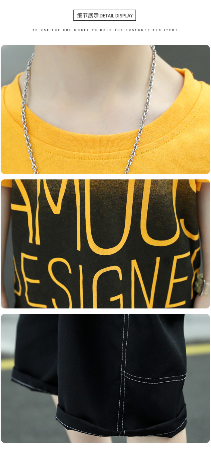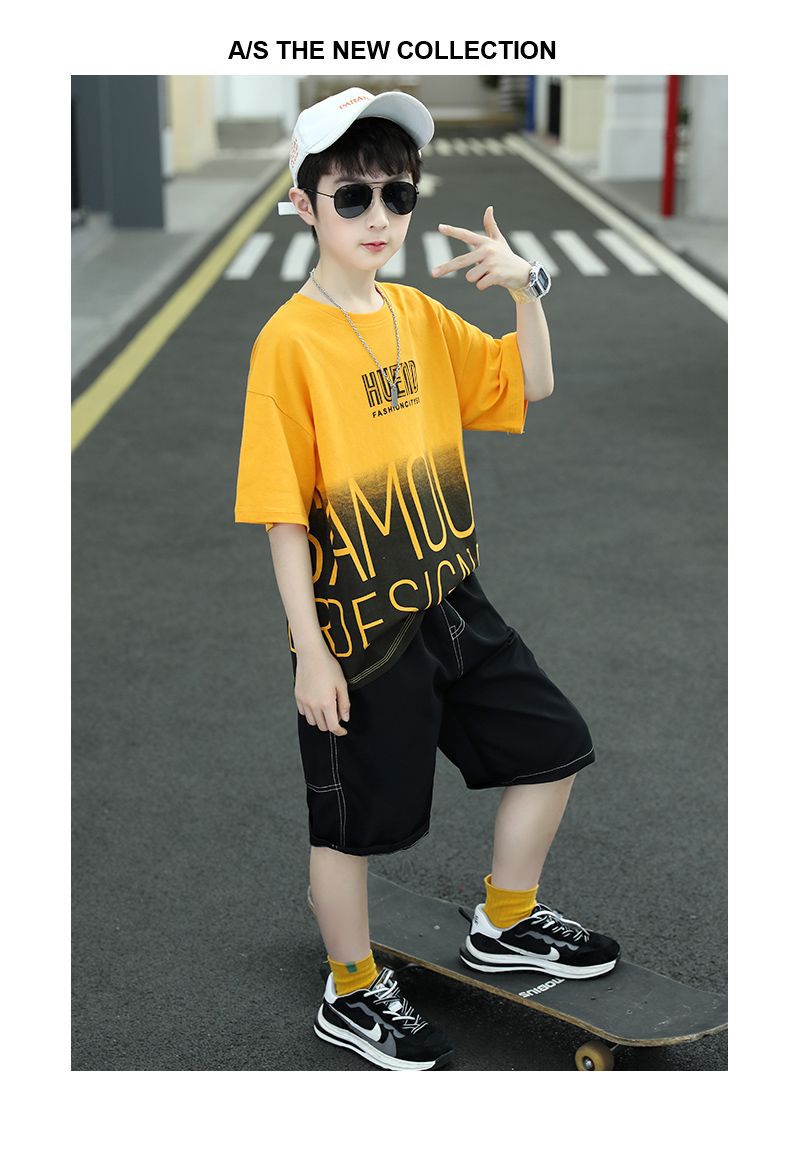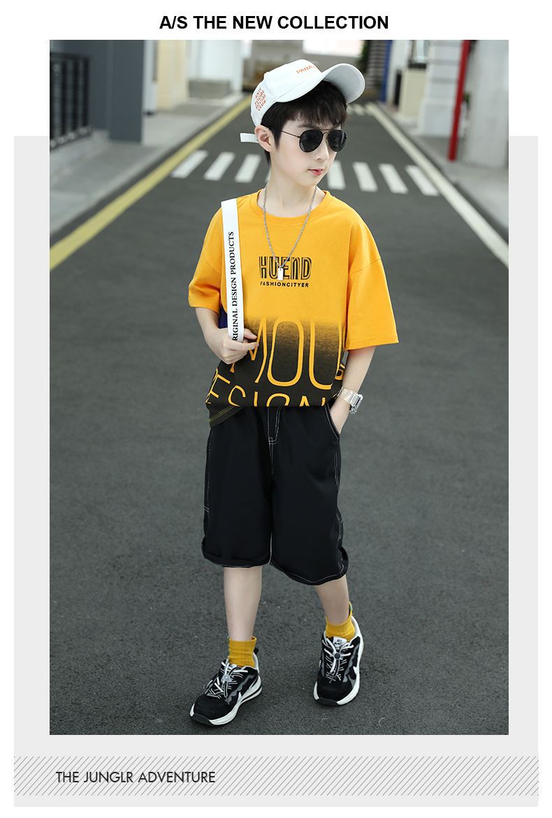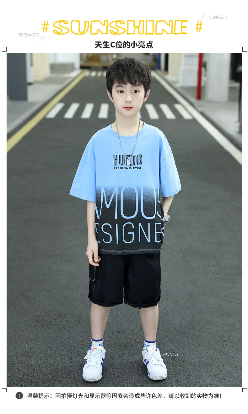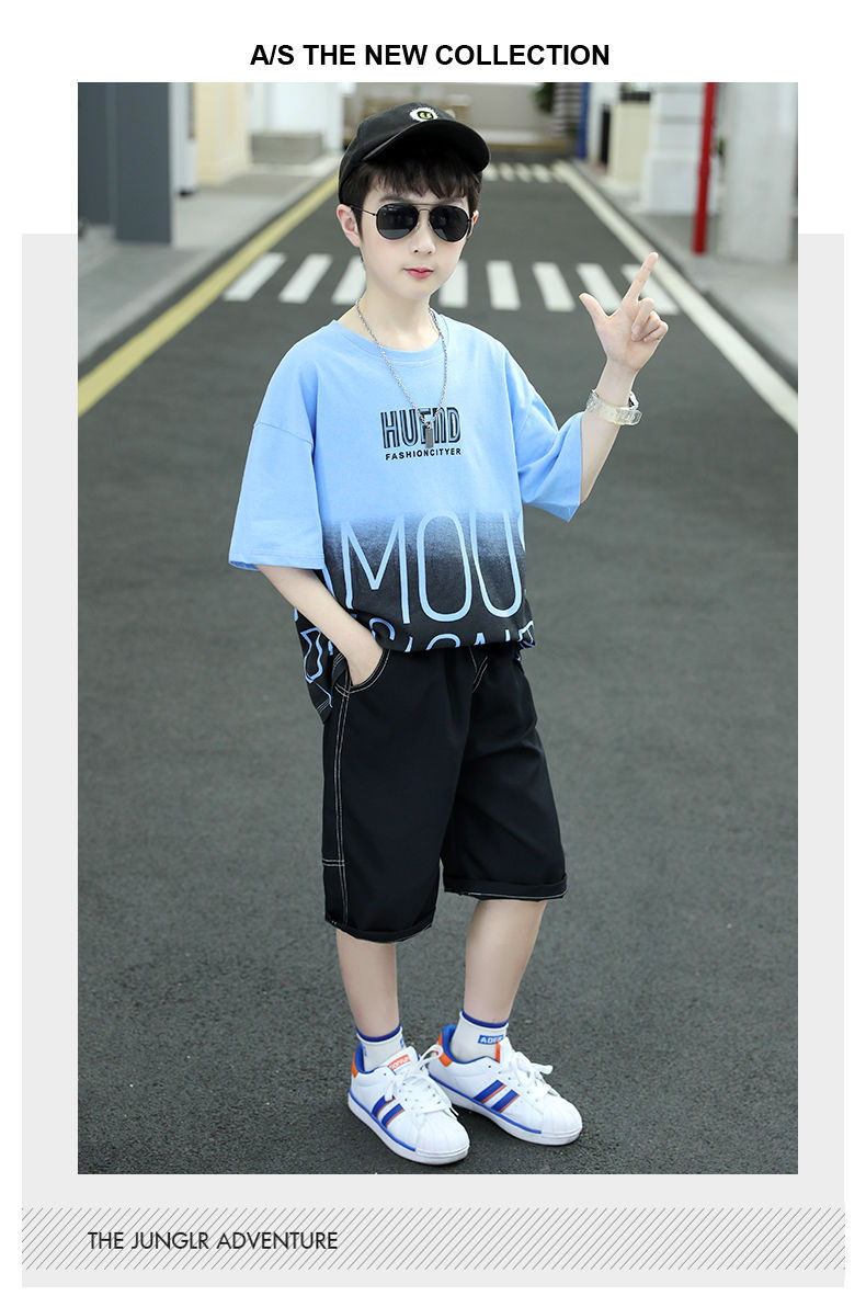 여름 소년 잘 생긴 느슨한 캐주얼 스포츠 세트 트렌디한 반팔 블랙 반바지 투피스 세트