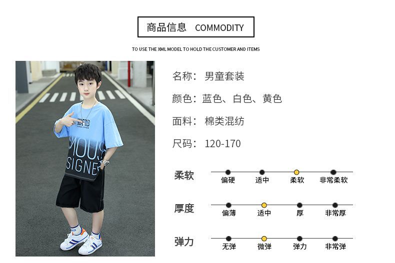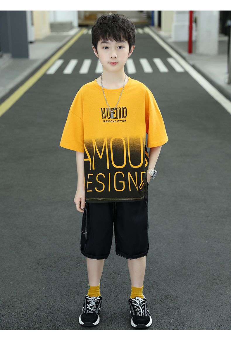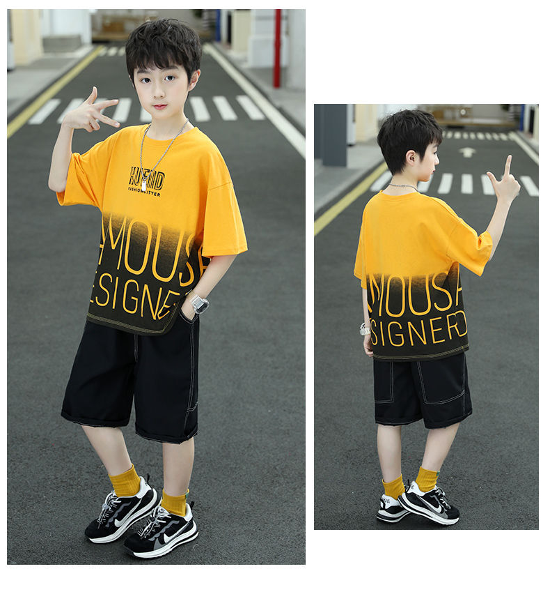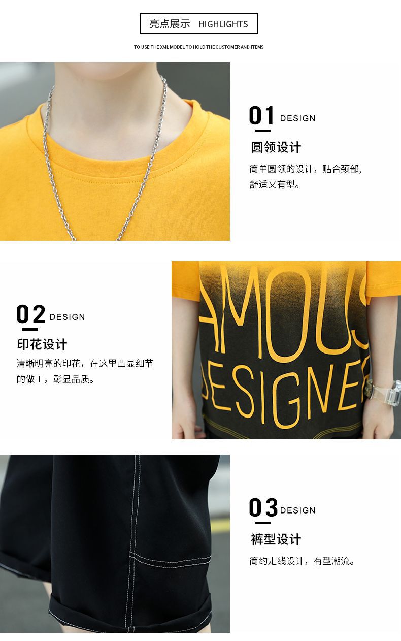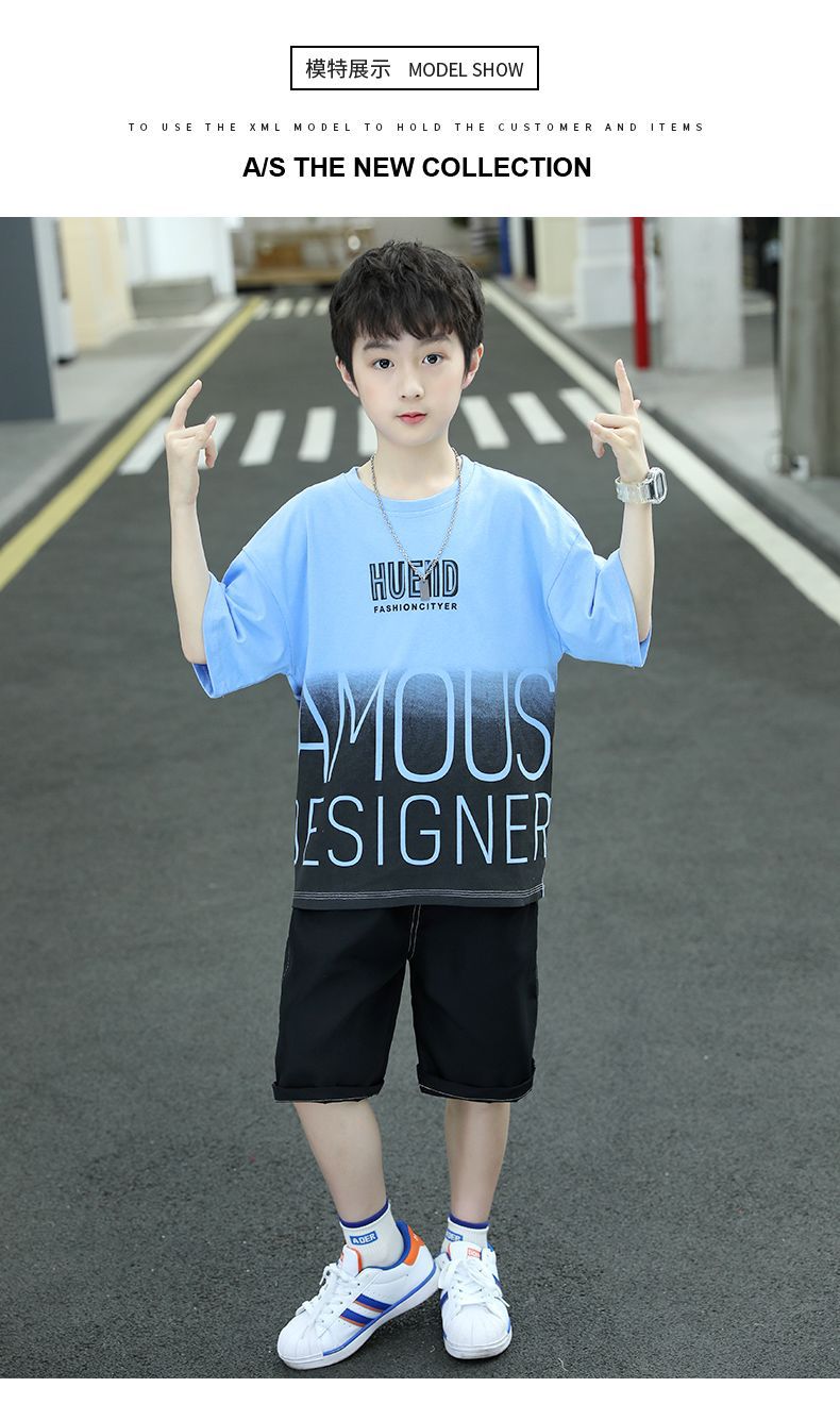 여름 소년 잘 생긴 느슨한 캐주얼 스포츠 세트 트렌디한 반팔 블랙 반바지 투피스 세트