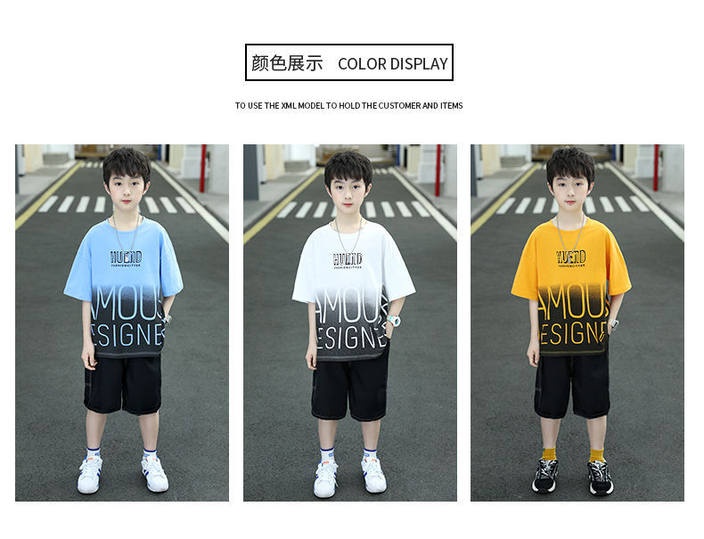 여름 소년 잘 생긴 느슨한 캐주얼 스포츠 세트 트렌디한 반팔 블랙 반바지 투피스 세트스토어 가기