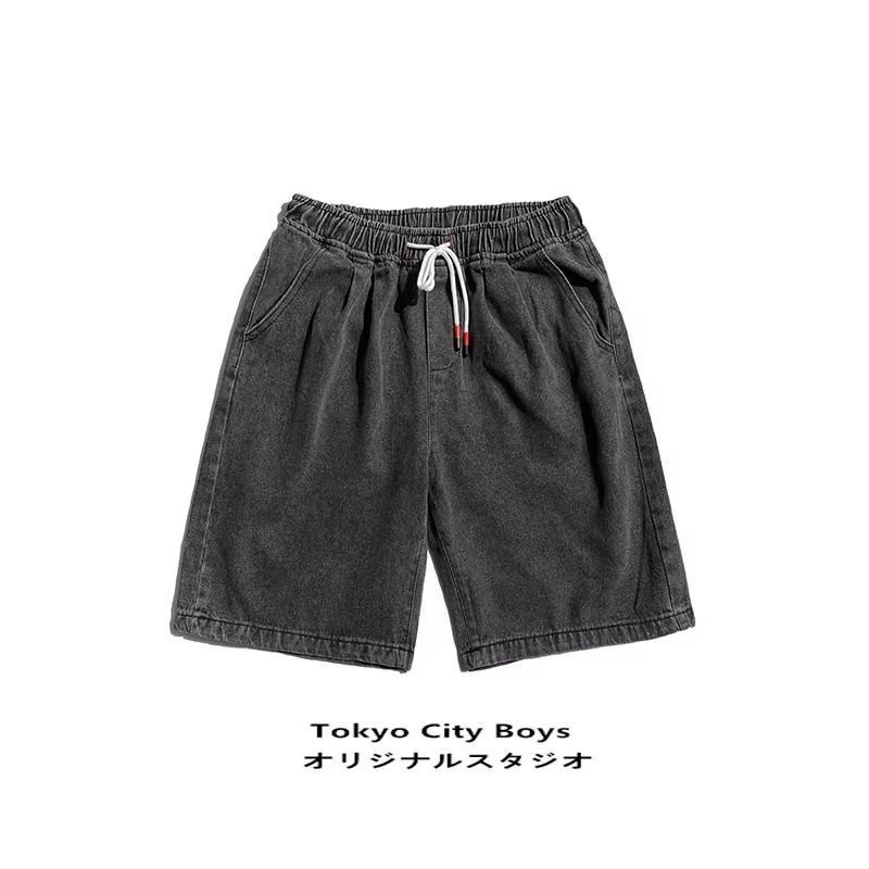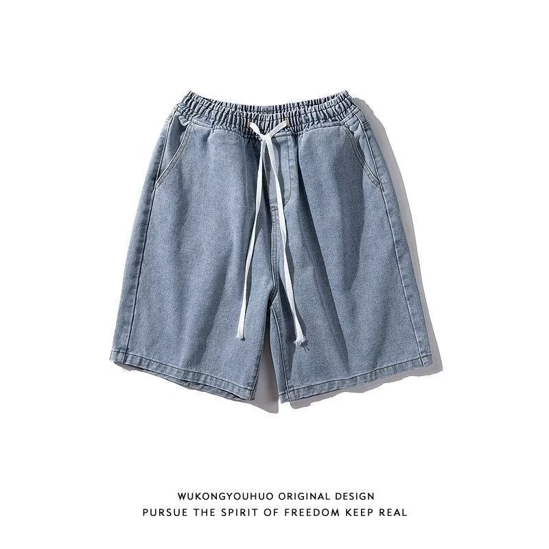 데님 플러스 사이즈 반바지 남성용 여름 얇은 탄성 허리 느슨한 다섯 번째 바지 패션 브랜드 인 미들 팬츠 올 매치 다섯 번째 바지