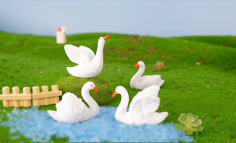 백조 수지 공예 마이크로 풍경 장식품 시뮬레이션 동물 흰 거위 DIY 조경 다육 질 보석 zakka 행사