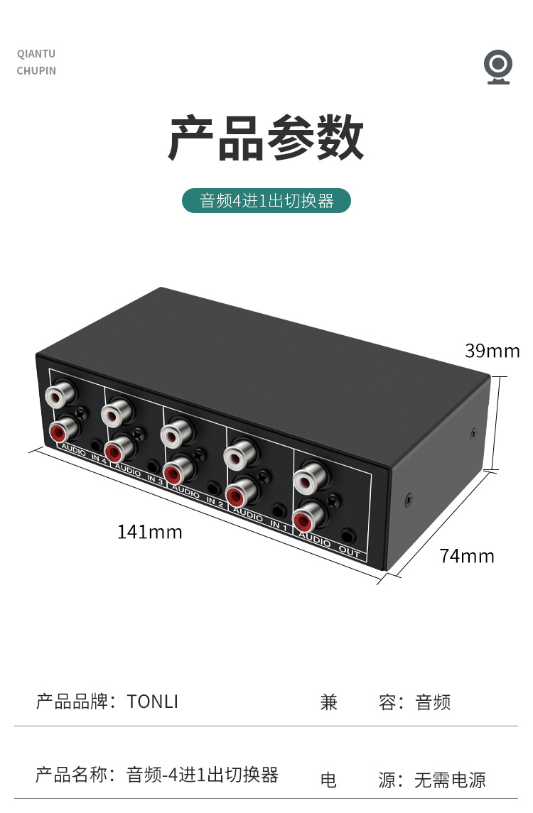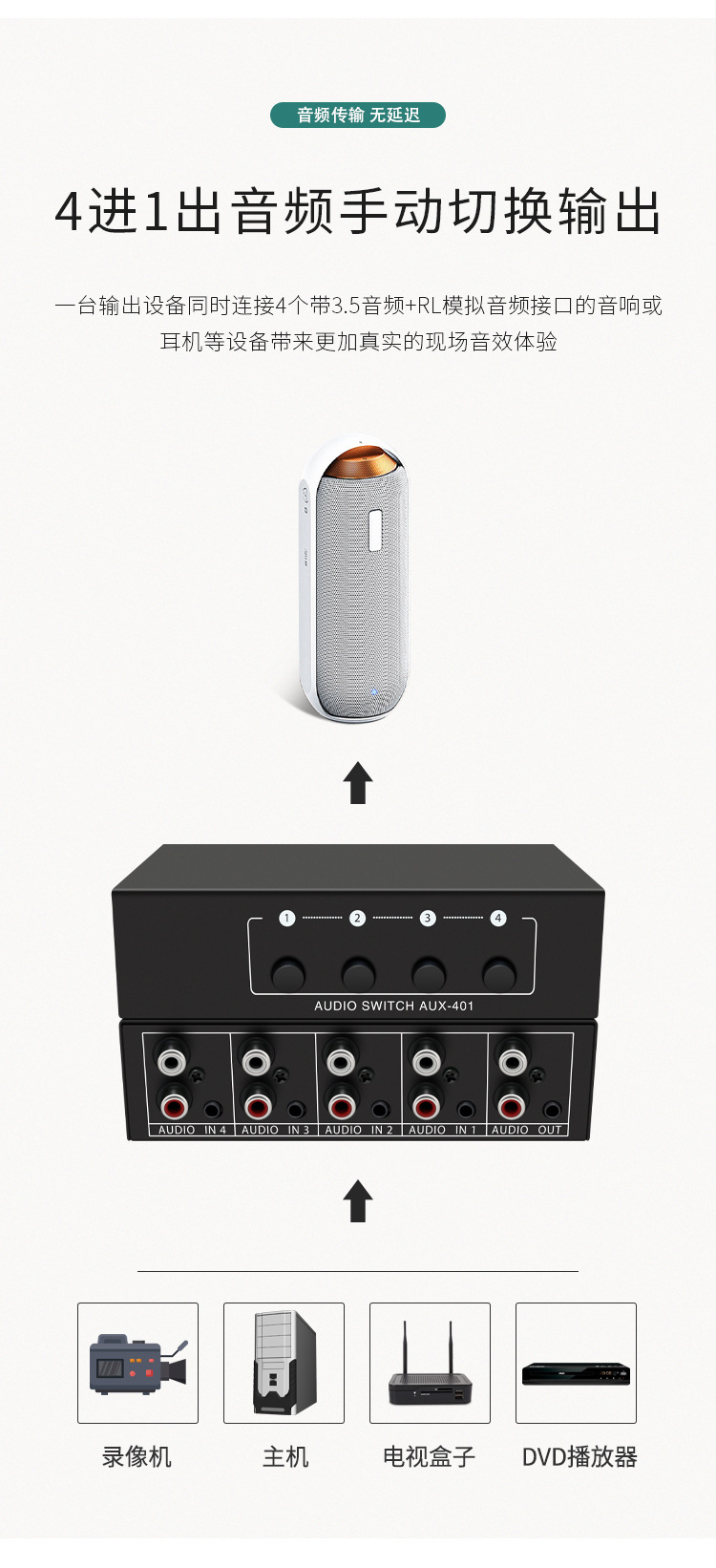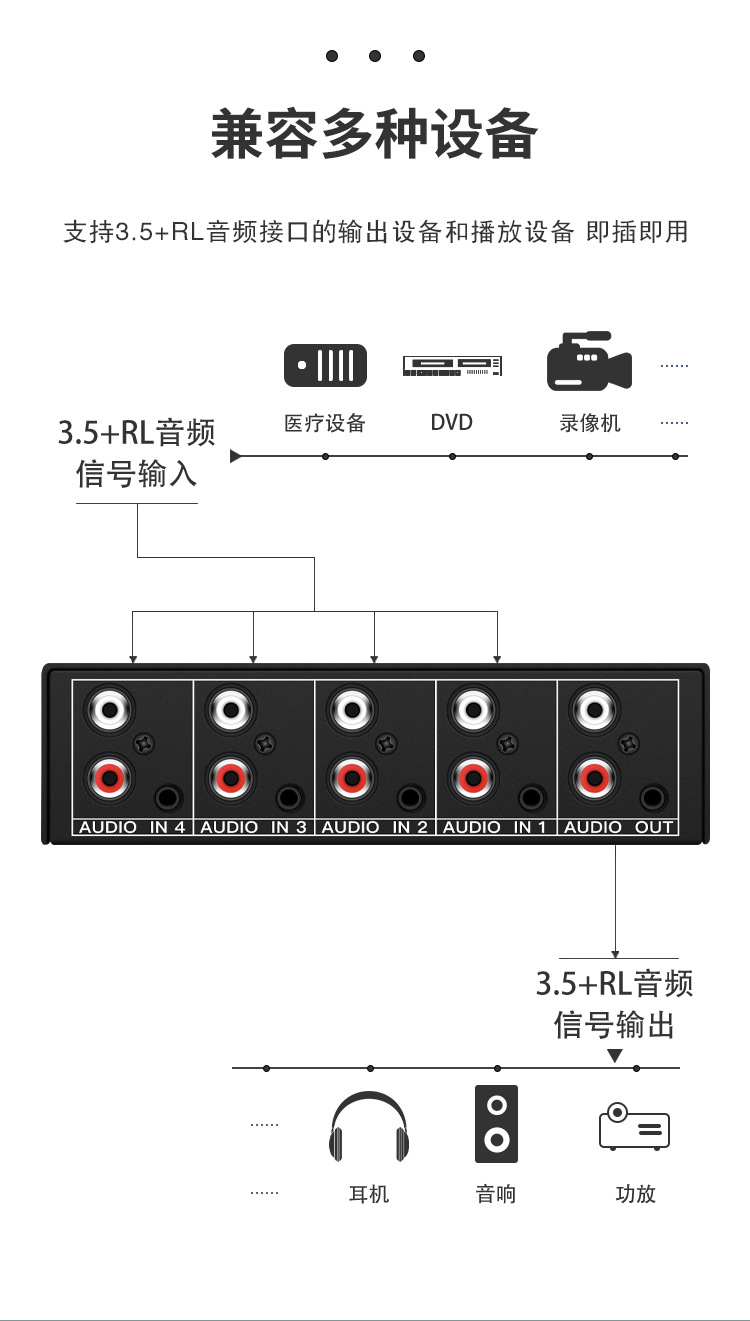 Xiaoli Audio Switcher 4-in-1 4 포트 4 포트 공유 장치 Lotus RCA 및 3.5 인터페이스 스테레오
