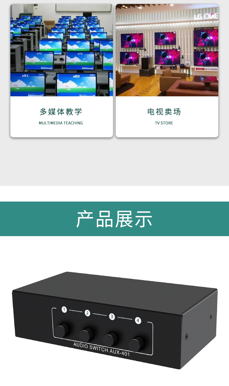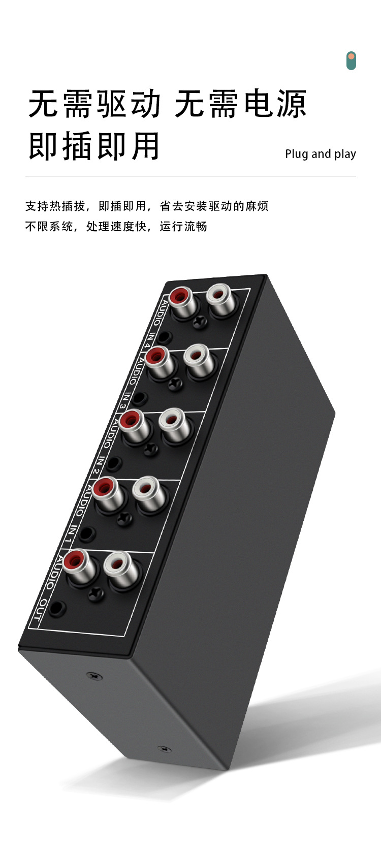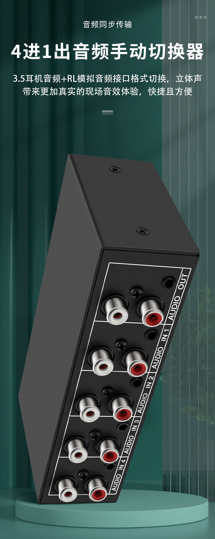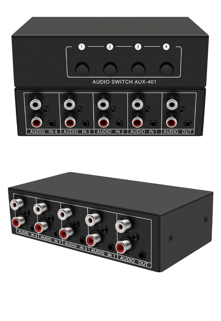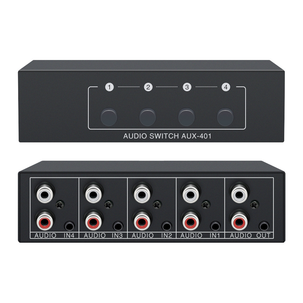 Xiaoli Audio Switcher 4-in-1 4 포트 4 포트 공유 장치 Lotus RCA 및 3.5 인터페이스 스테레오스토어 가기