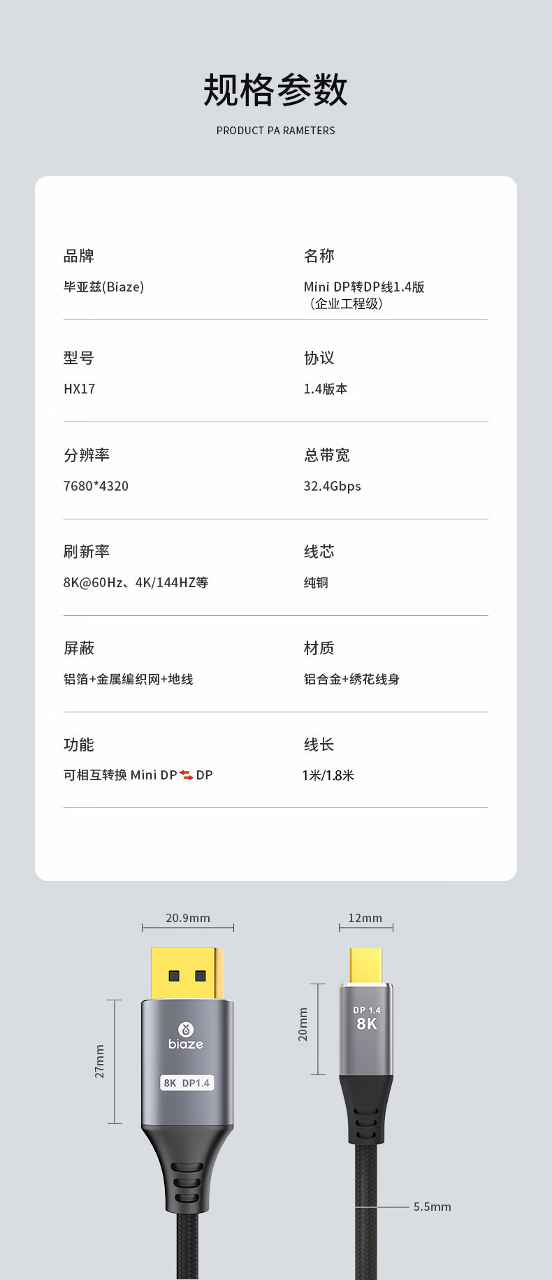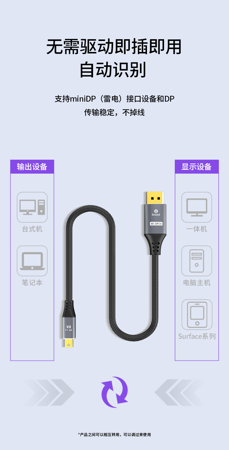 Biaz 미니 DP에서 DP1.4 버전의 어댑터 전기 경쟁 수준 8K60hz 번개 포트 HD 비디오 변환