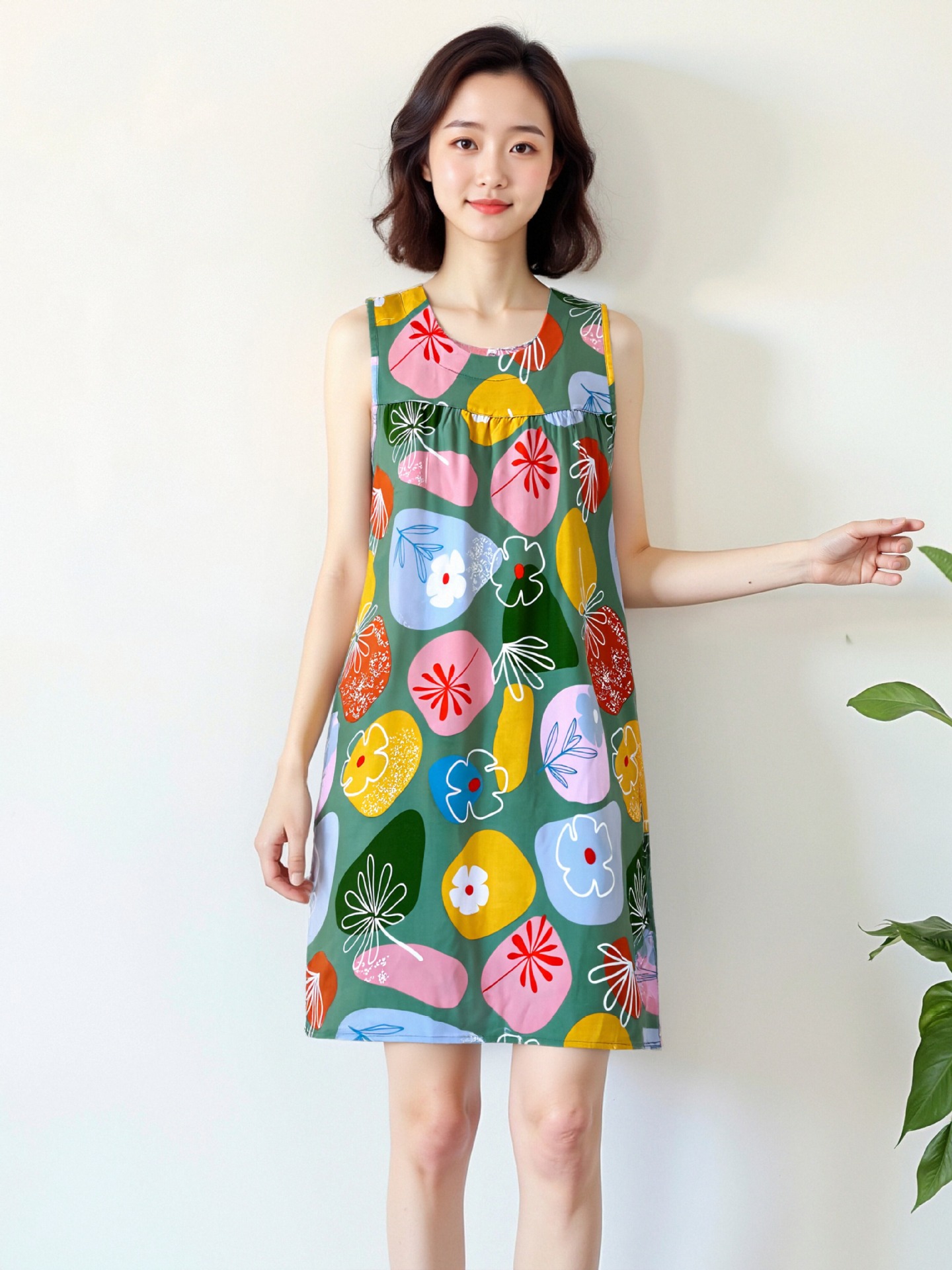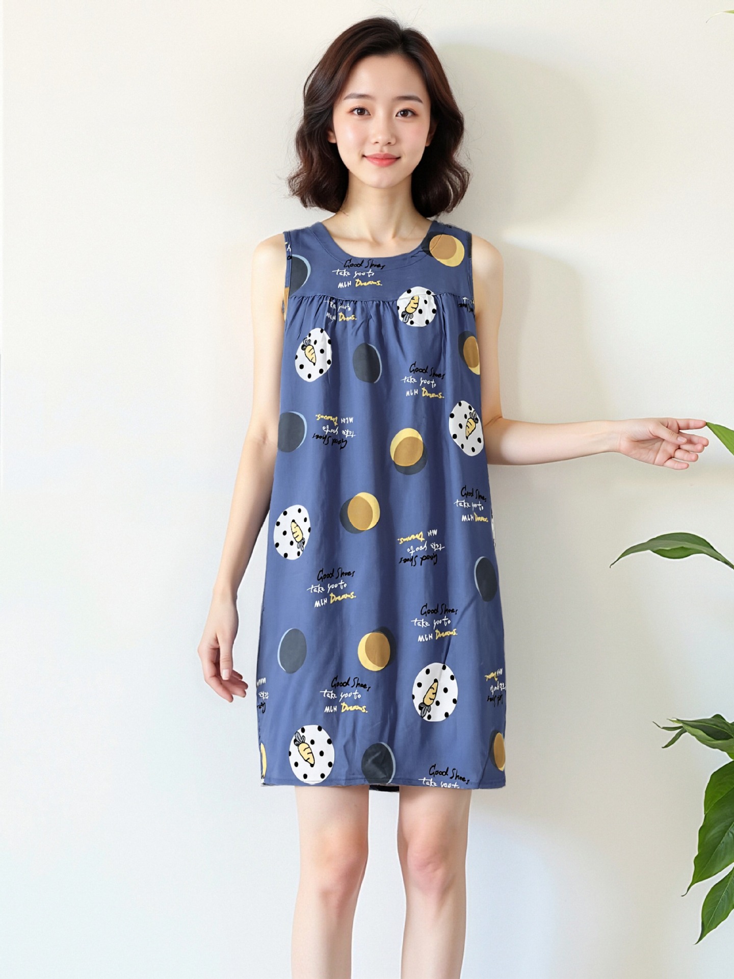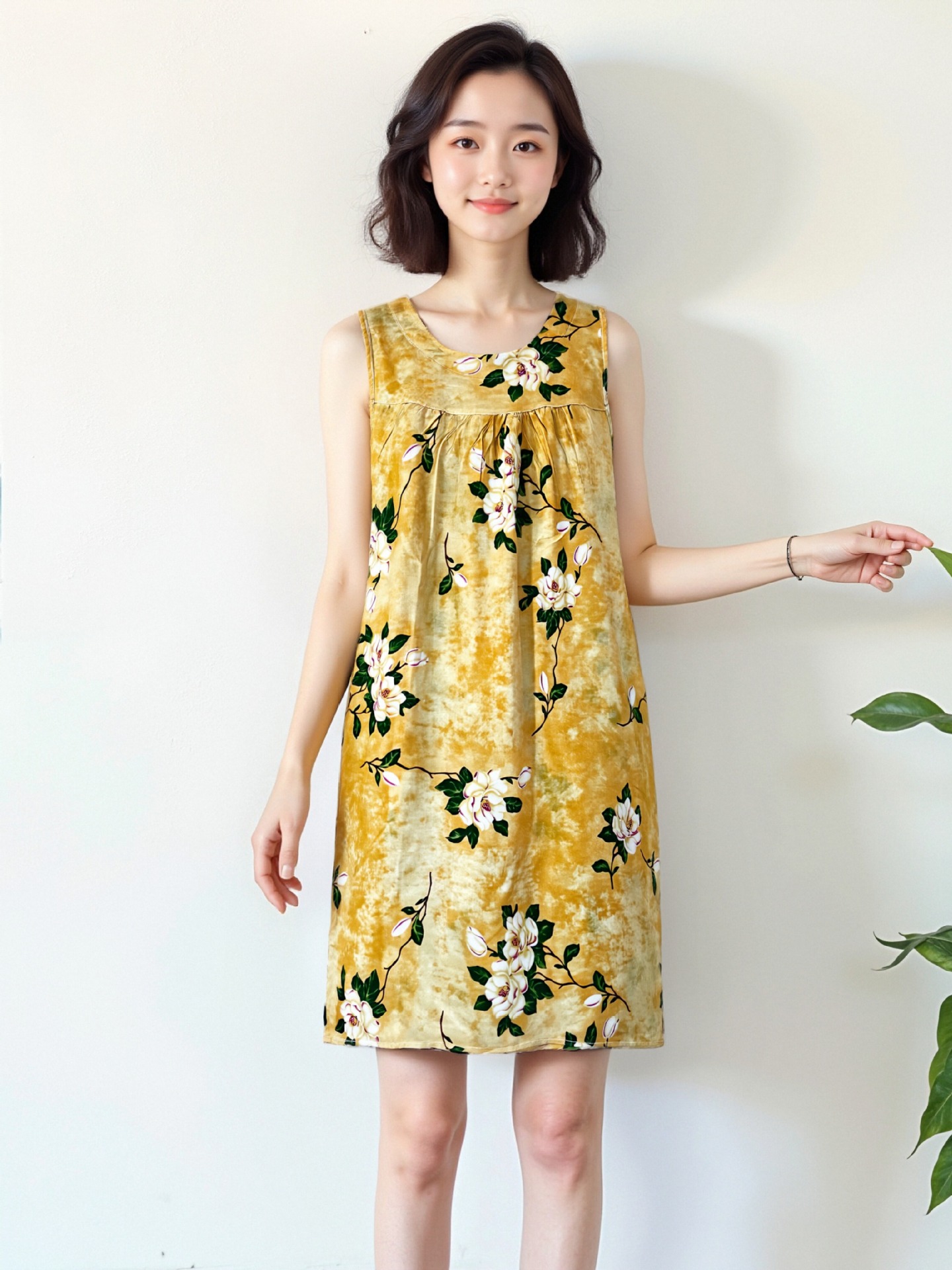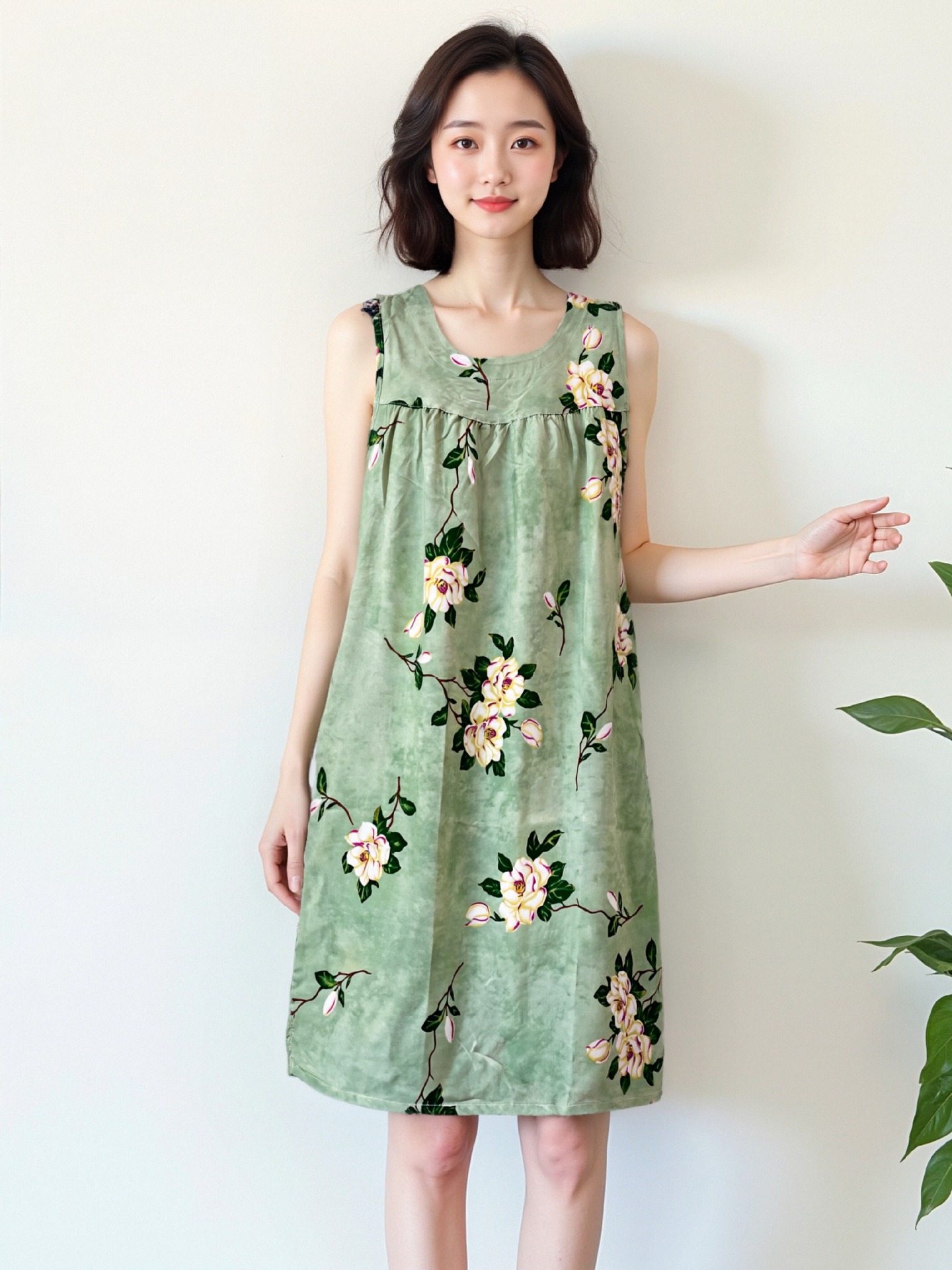 잠옷 여자의 여름 플러스 사이즈 민소매 면 실크 중간 길이 인공 면 느슨한 원피스 잠옷 노인 가정 의류스토어 가기