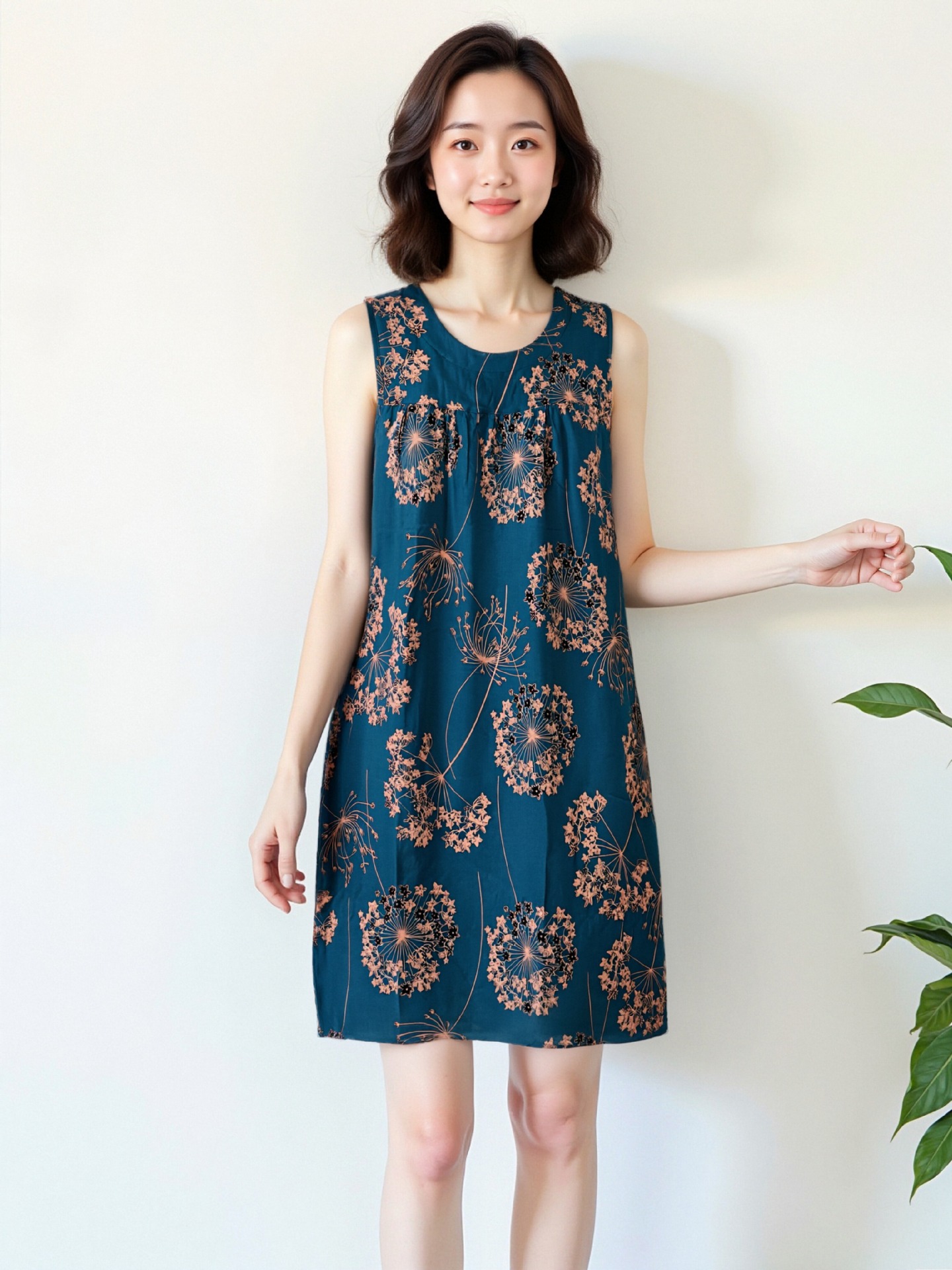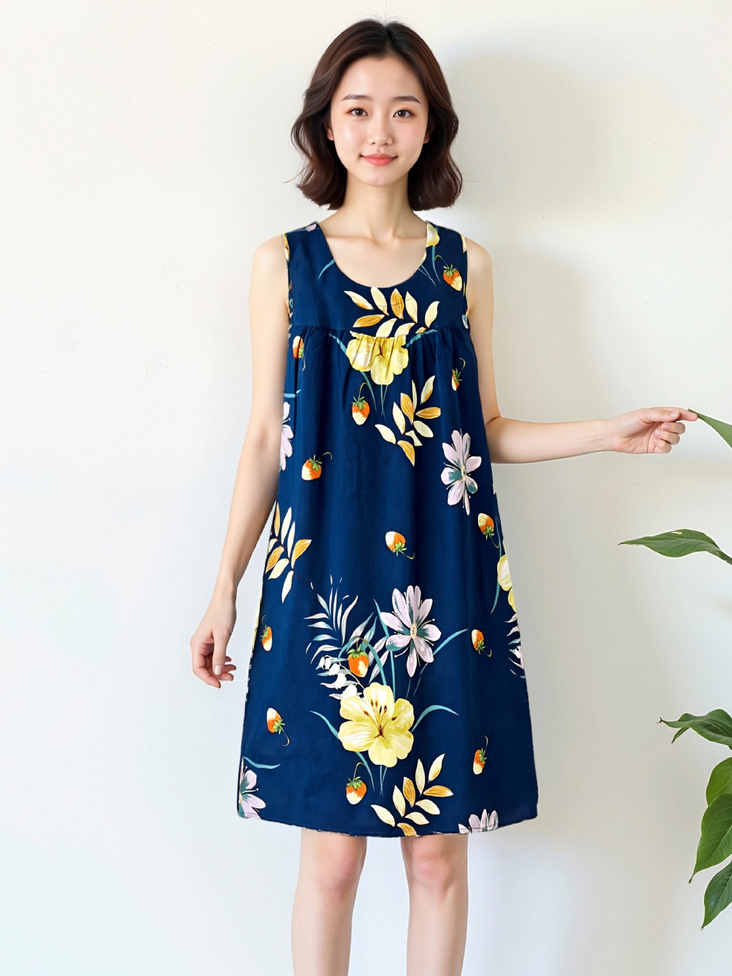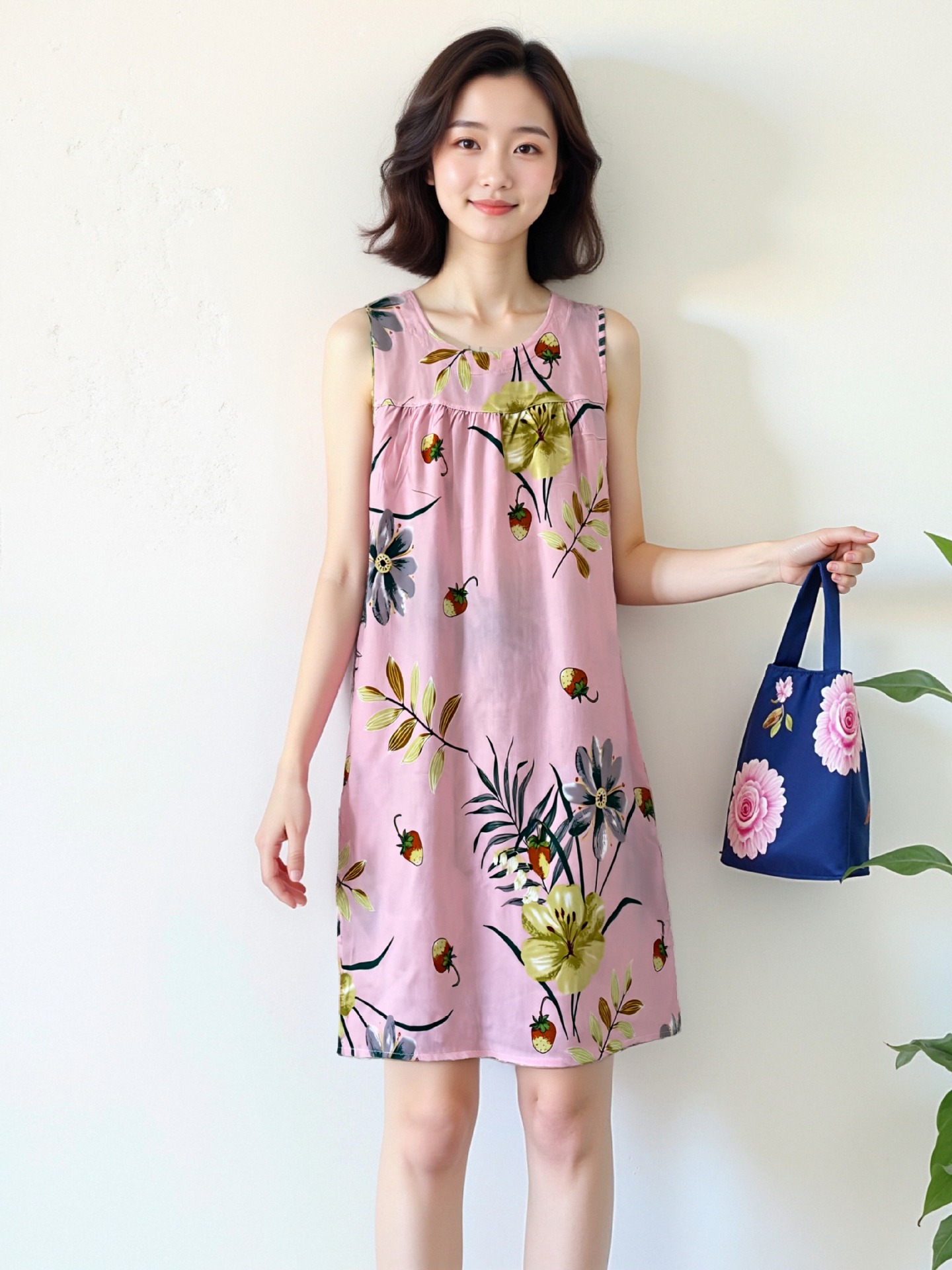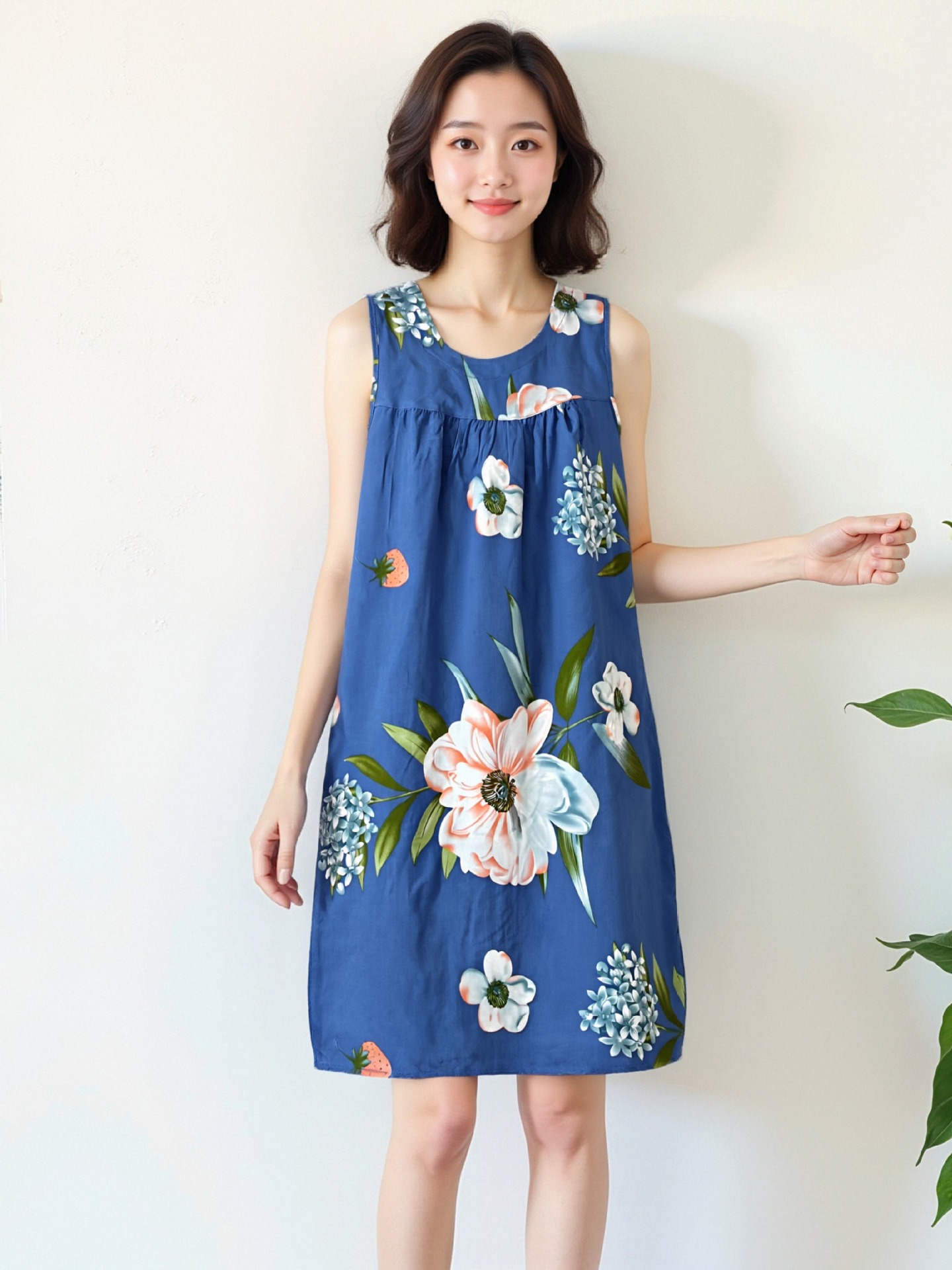 잠옷 여자의 여름 플러스 사이즈 민소매 면 실크 중간 길이 인공 면 느슨한 원피스 잠옷 노인 가정 의류스토어 가기